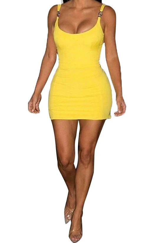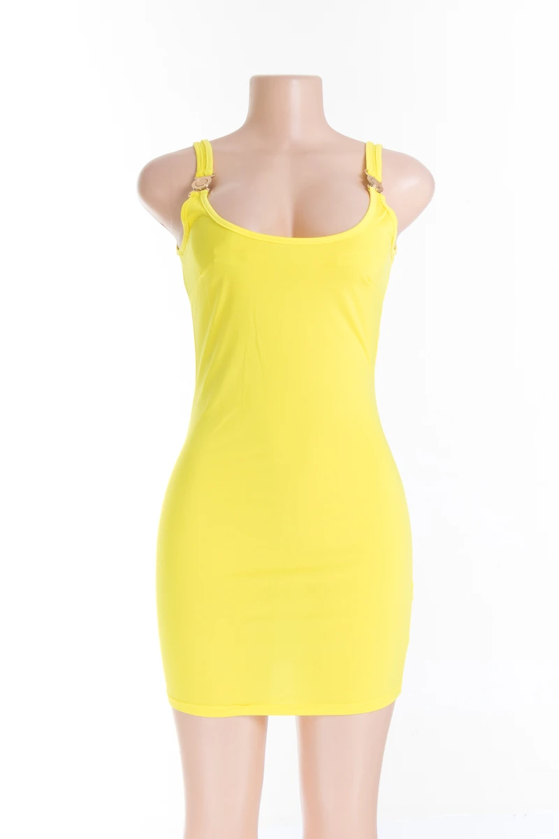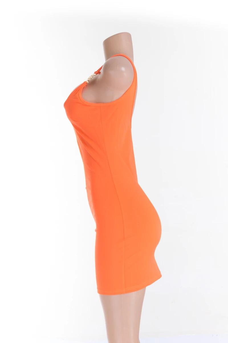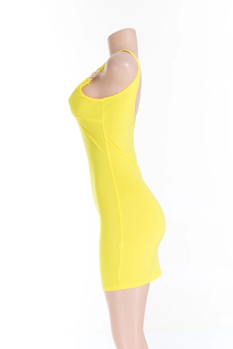 New 3 colors plus size metal button slim fit open back sleeveless dress