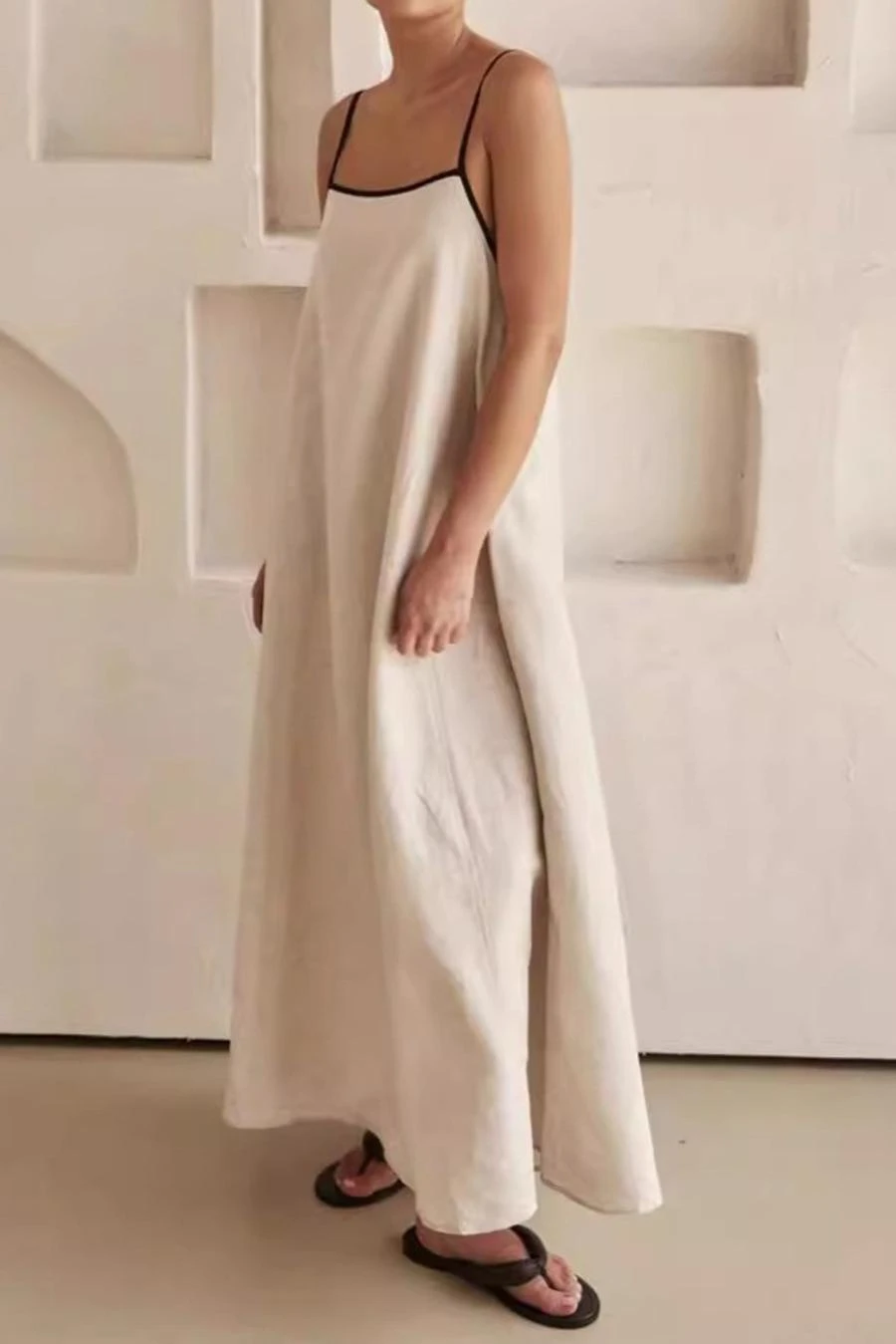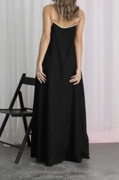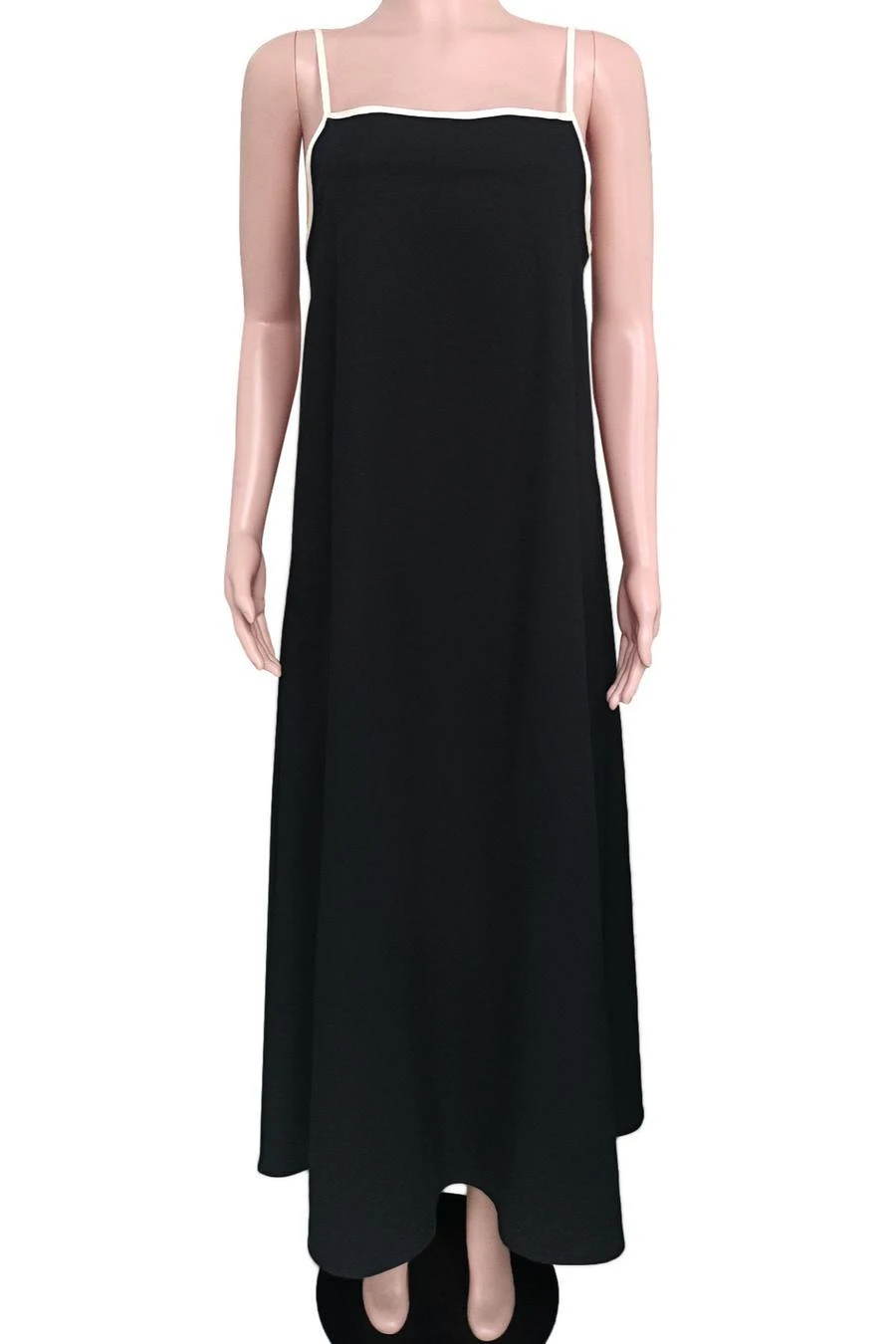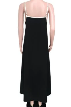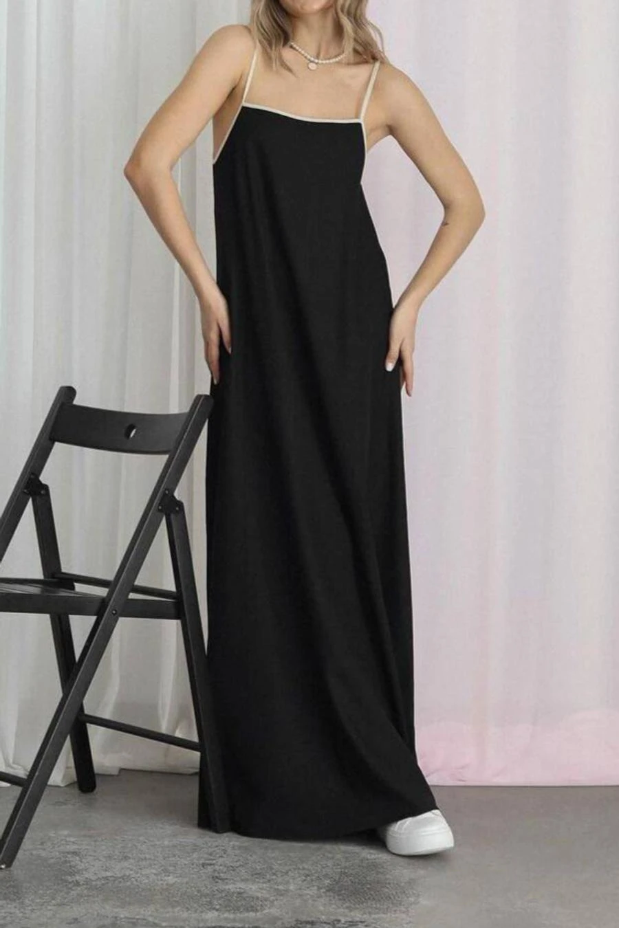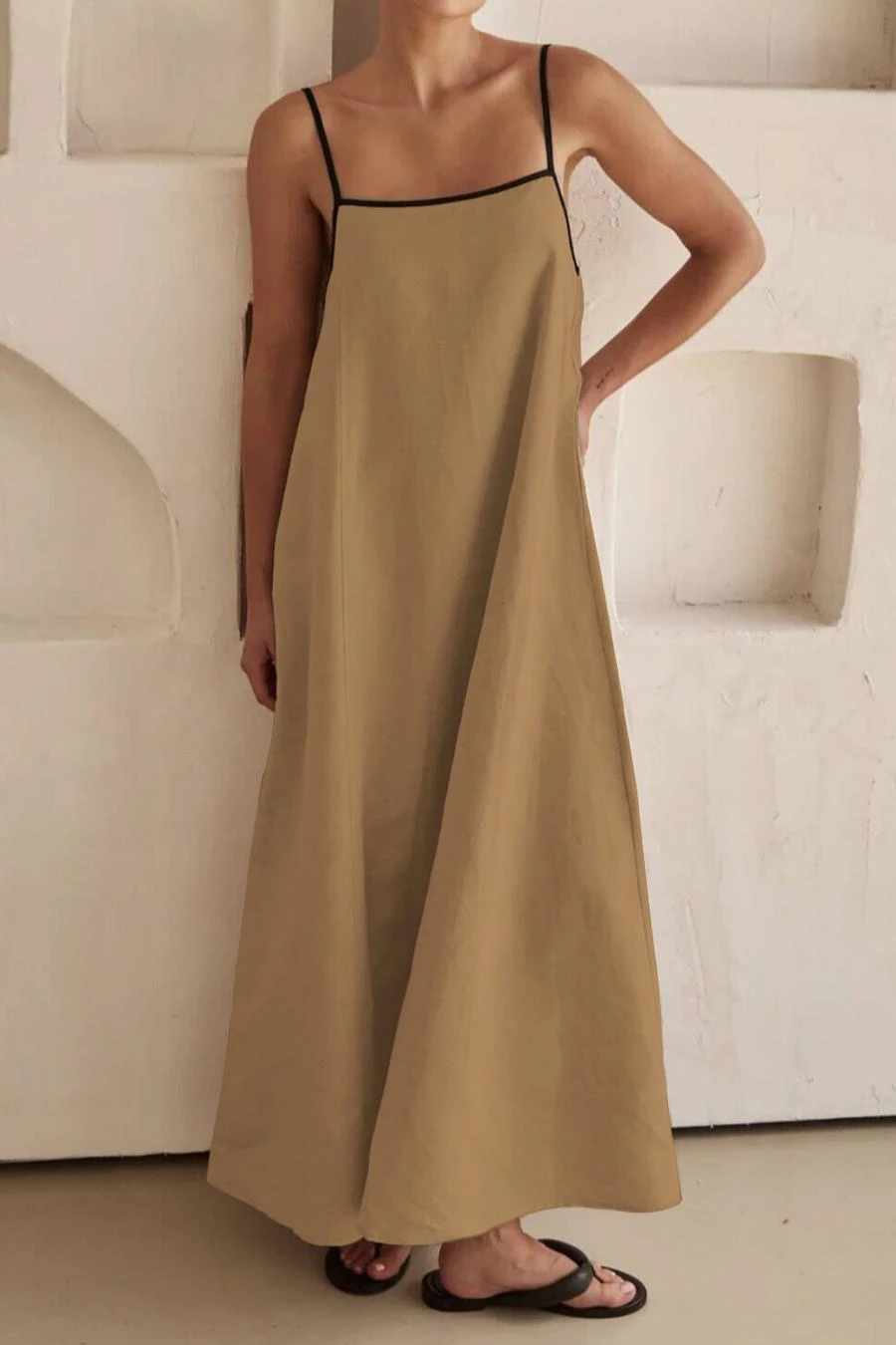 New casual non-stretch solid color pocket loose suspender maxi dress