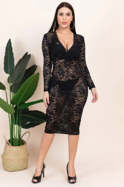 New micro-elastic see through lace spliced V-neck sexy elegant dress (without lining)