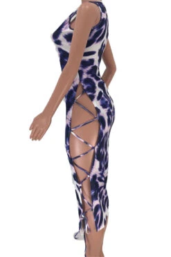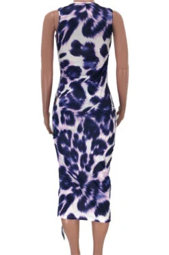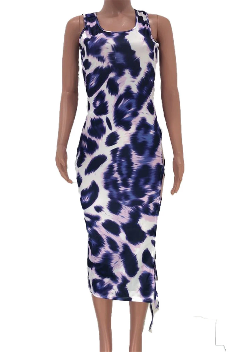 New plus size leopard print stretch side hollow bandage sexy midi dress