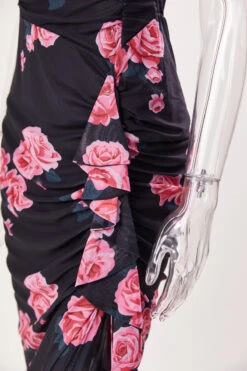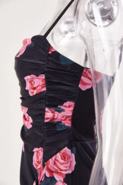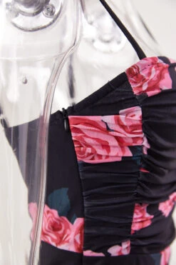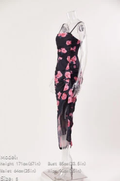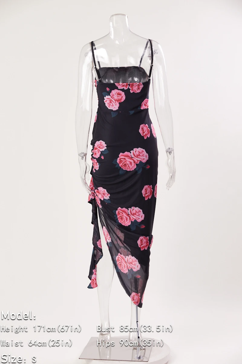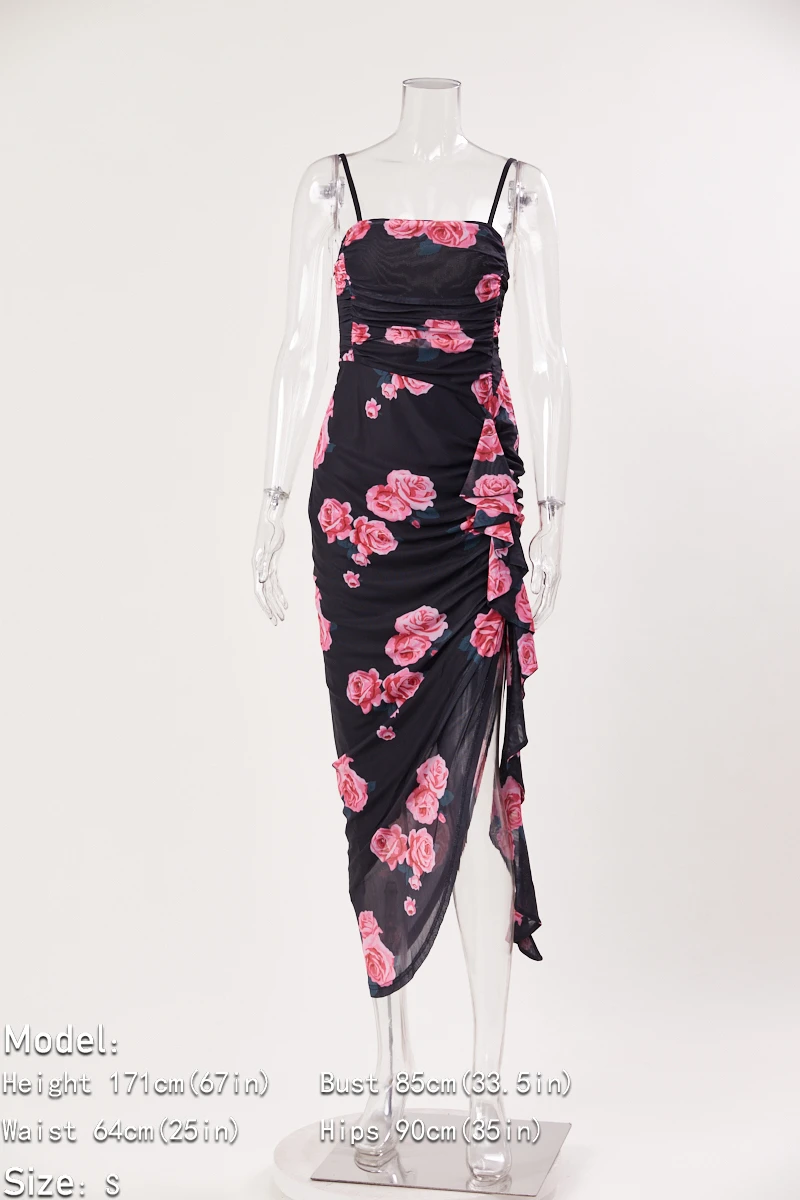 New sexy slight stretch batch printing ruffle slit suspender mini floral dress