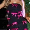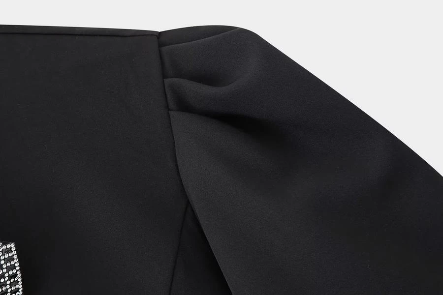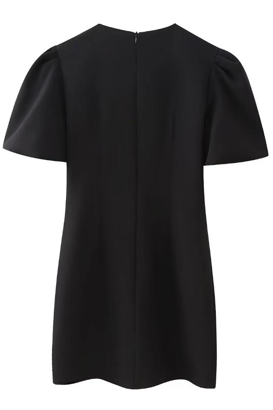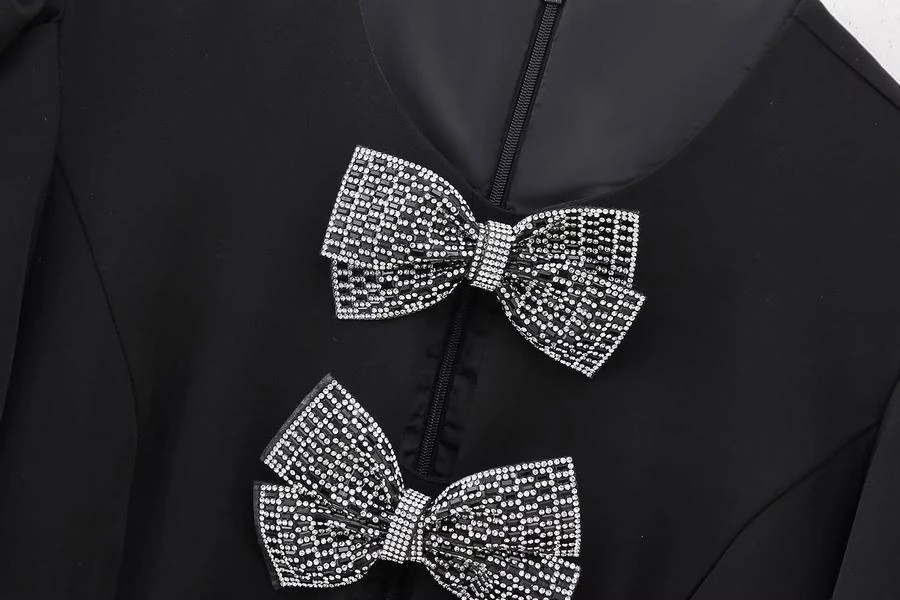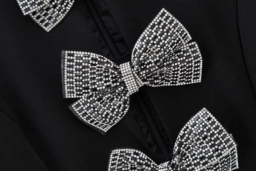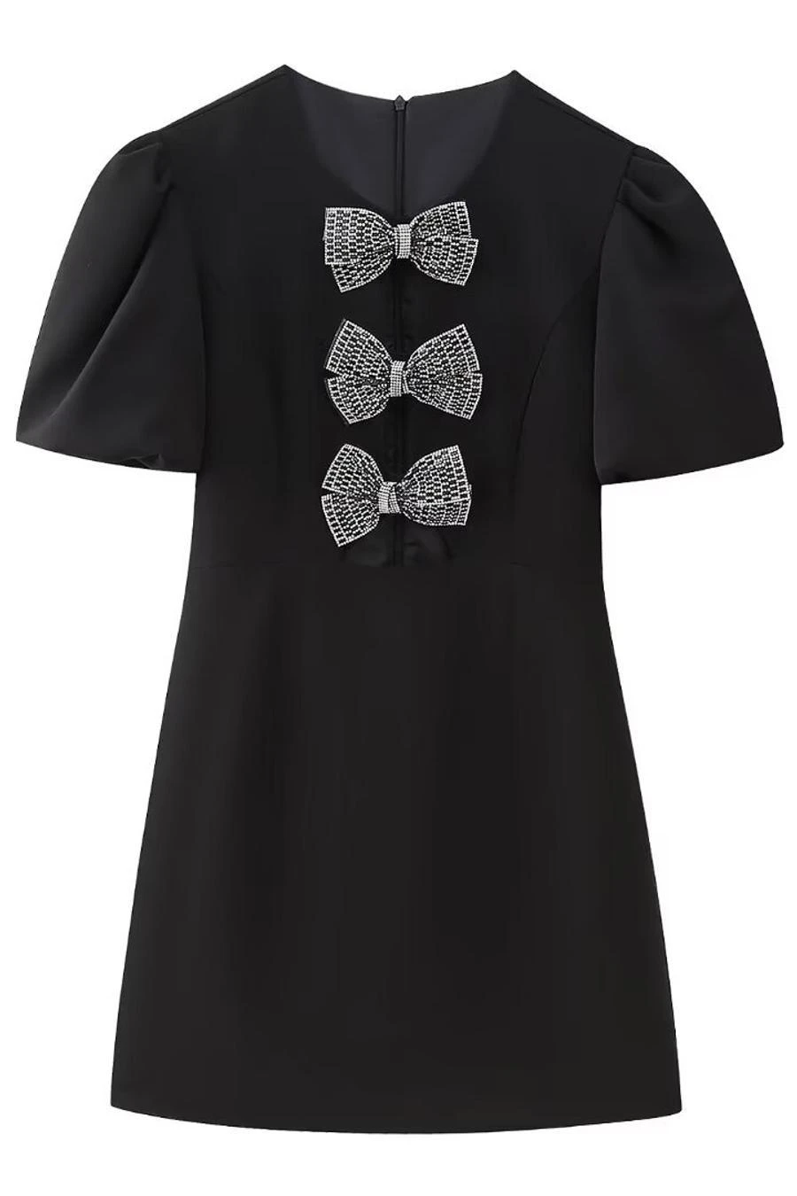 New sexy slight stretch black rhinestone bow short sleeve slim mini dress