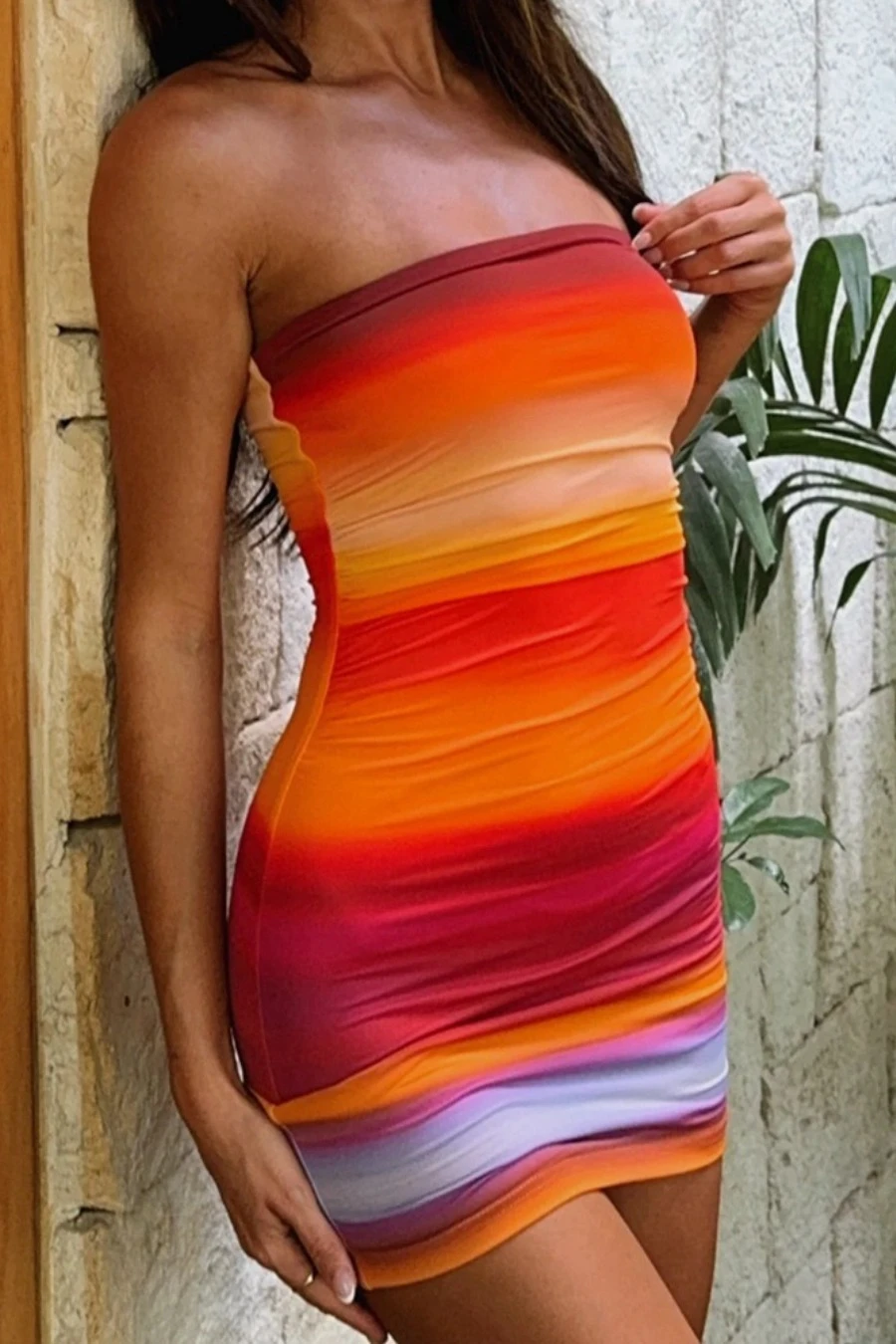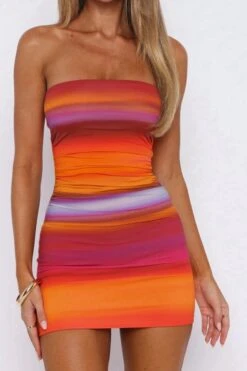 New sexy slight stretch contrast colors pleats bandeau mini dress