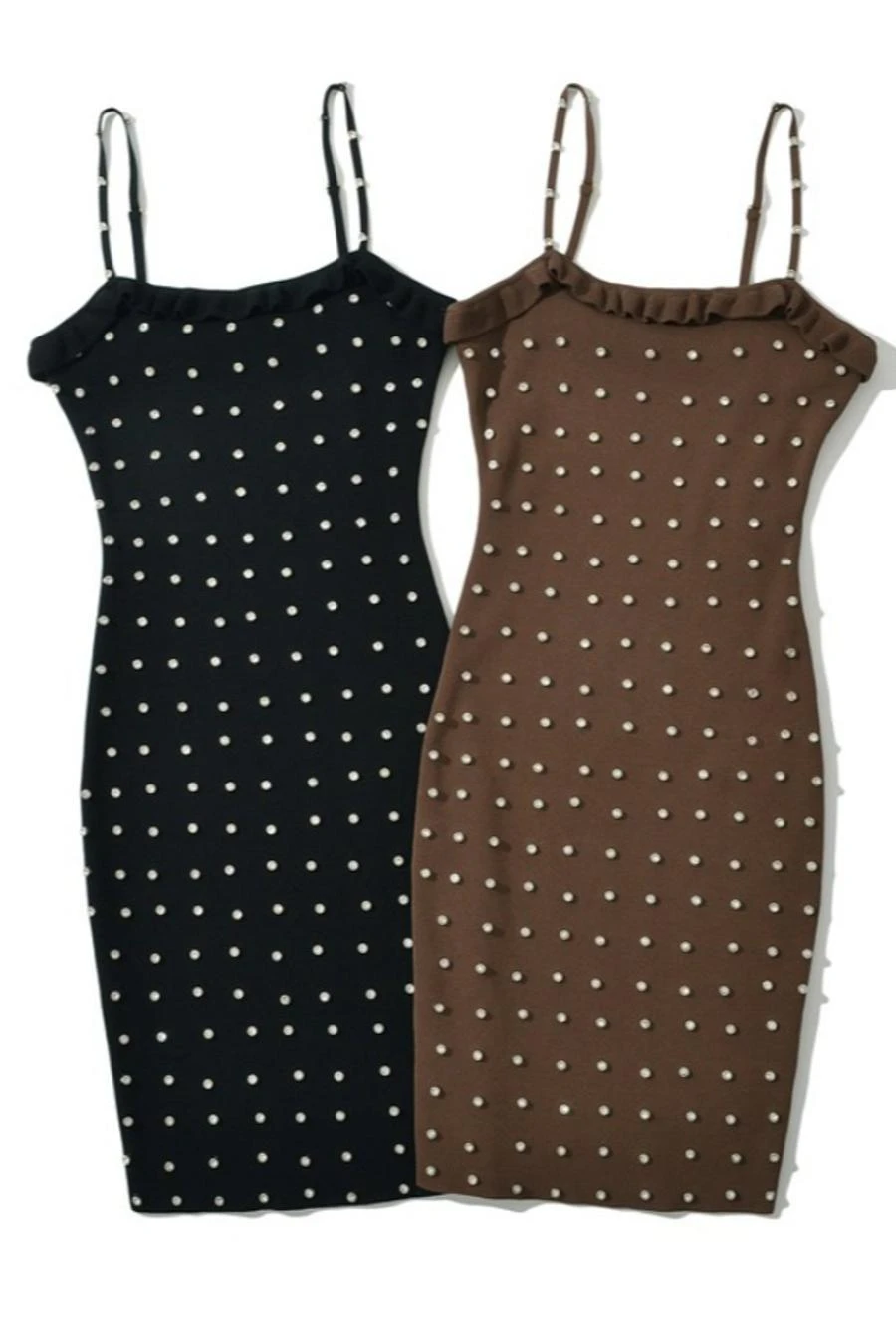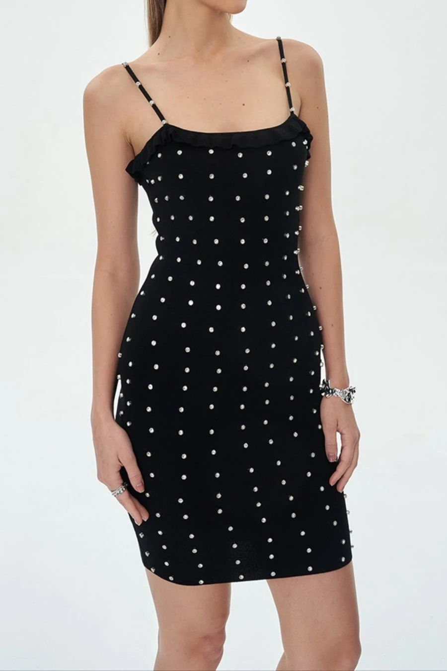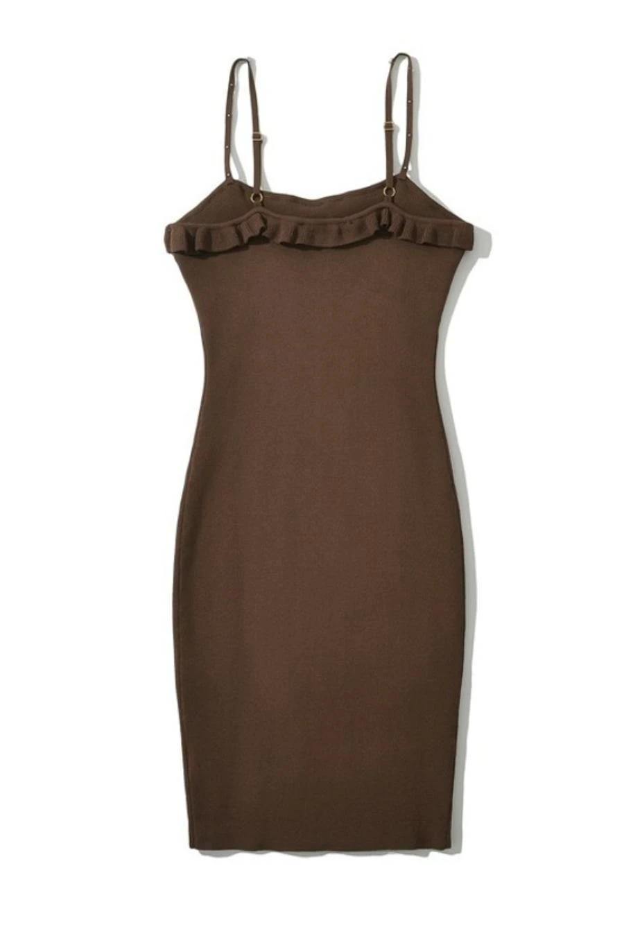 New sexy slight stretch knit rivet ruffle suspender mini dress(size run small)