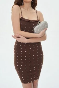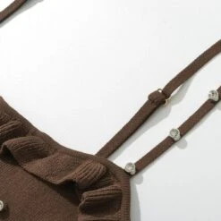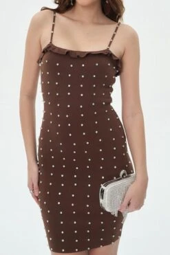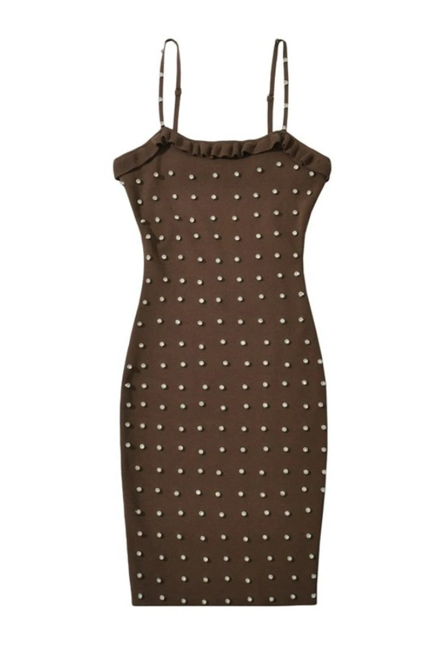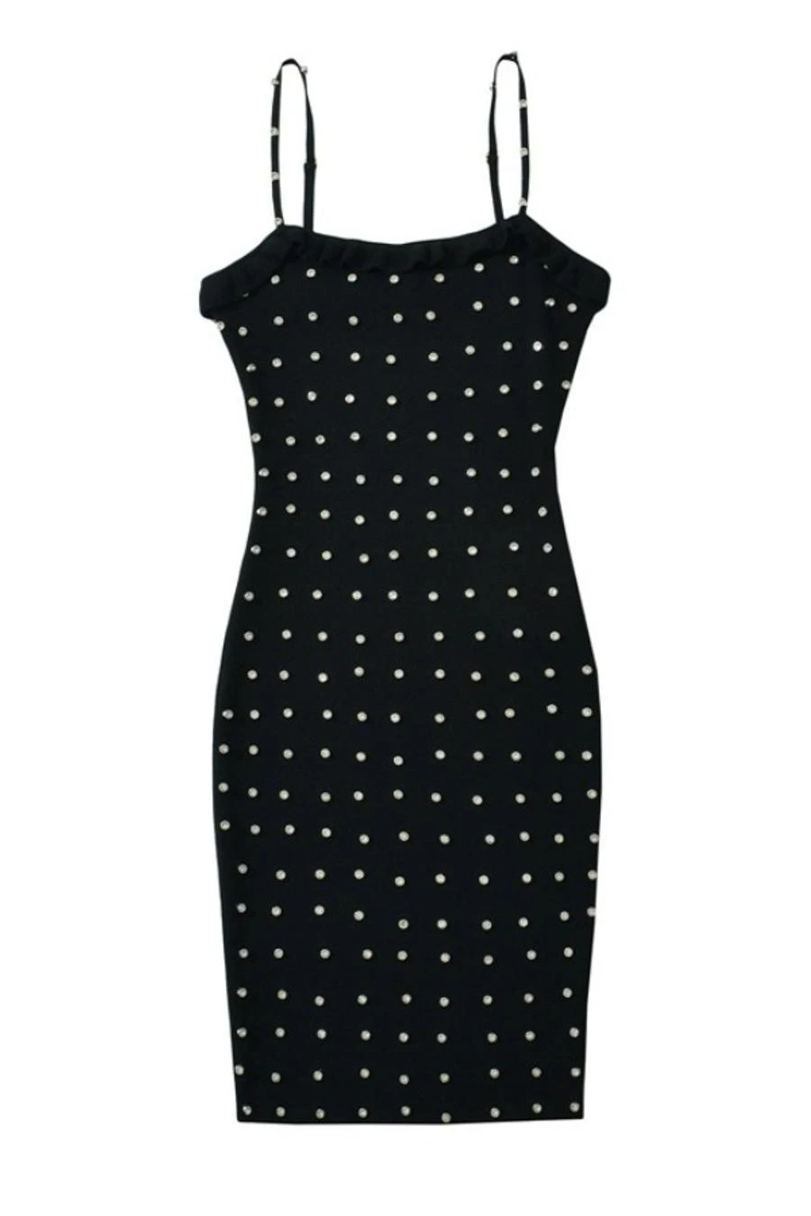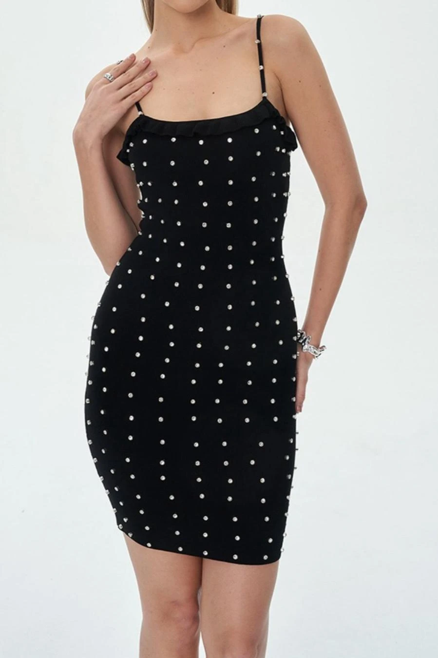 New sexy slight stretch knit rivet ruffle suspender mini dress(size run small)
