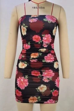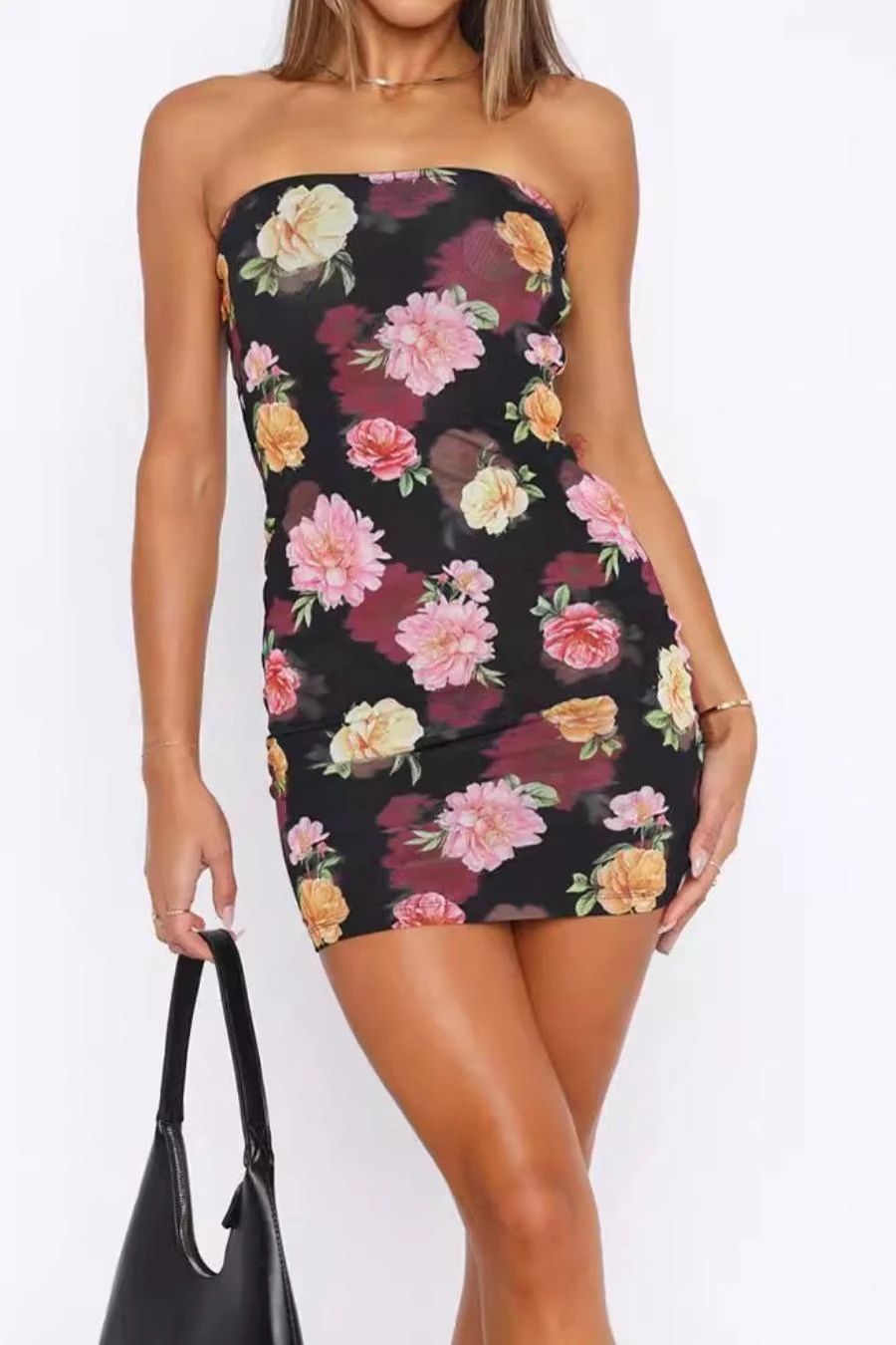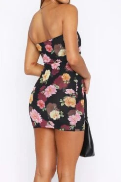 New sexy slight stretch flowers batch printing bandeau mini dress