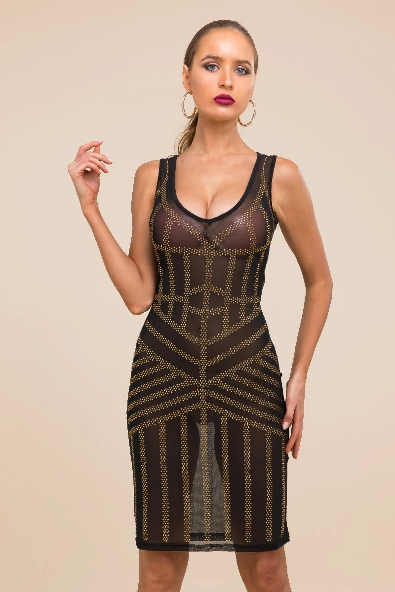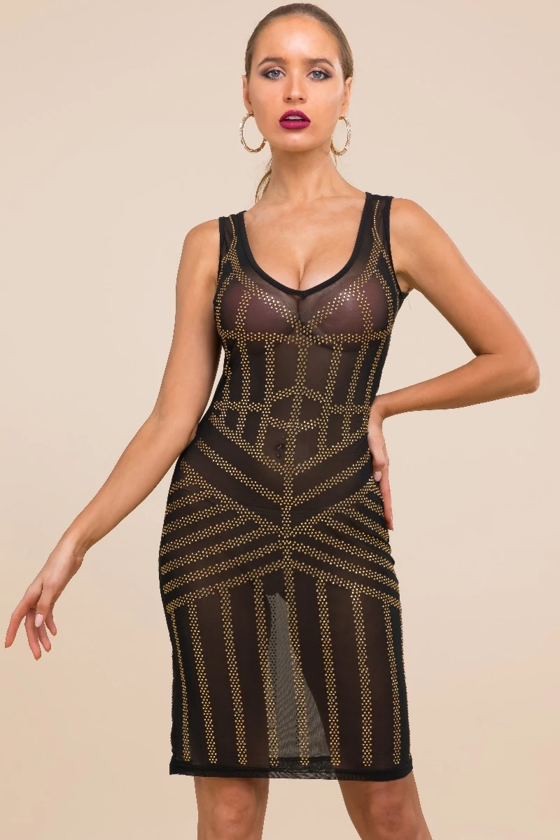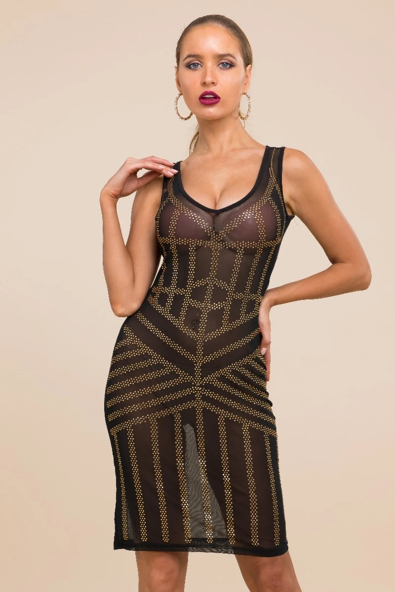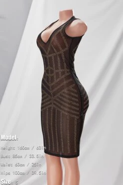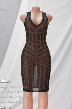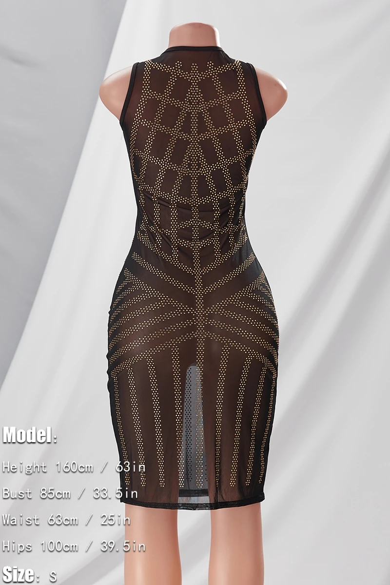 New sexy v collar sleeveless mesh perspective hot drilling slim fit dress(No lining)(New add color)