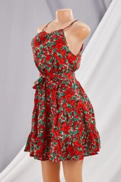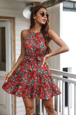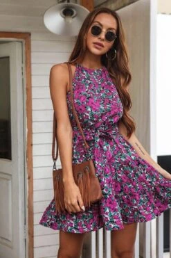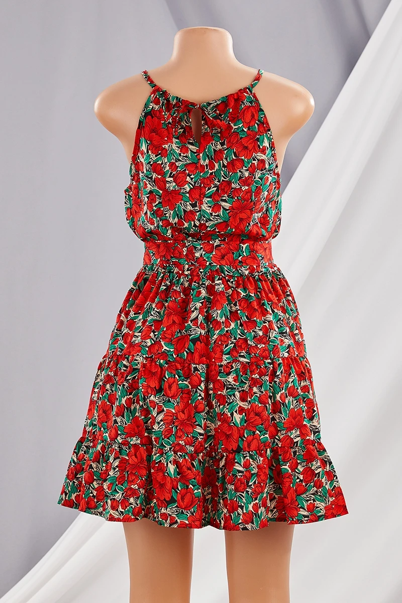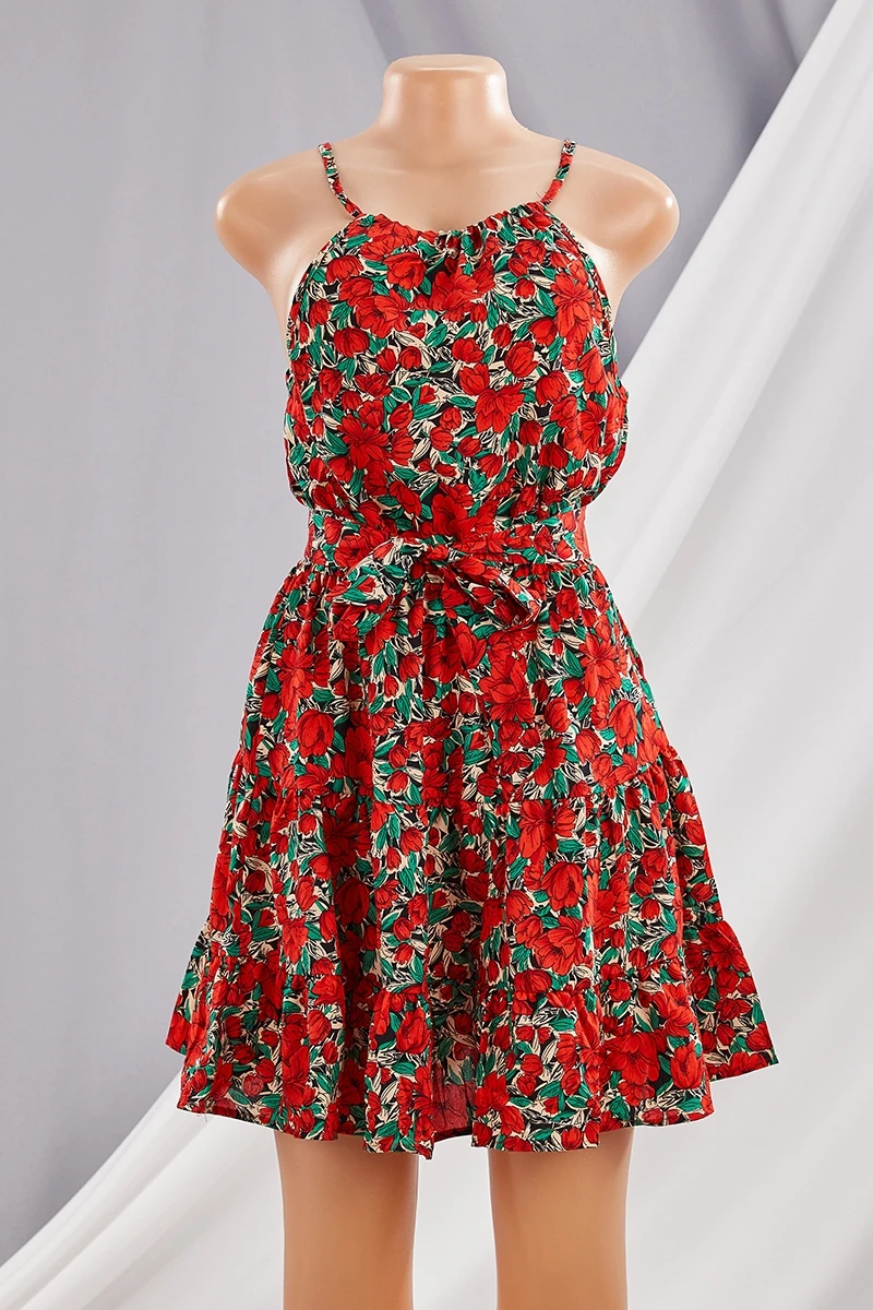 New style summer flower printing sleeveless bandage mini dress