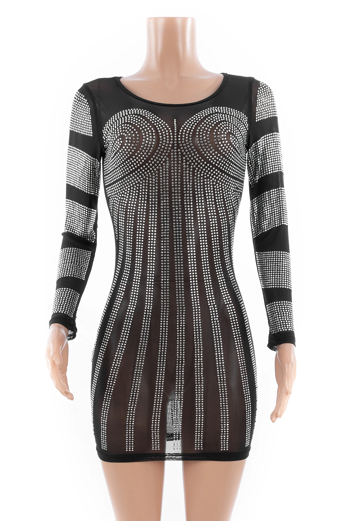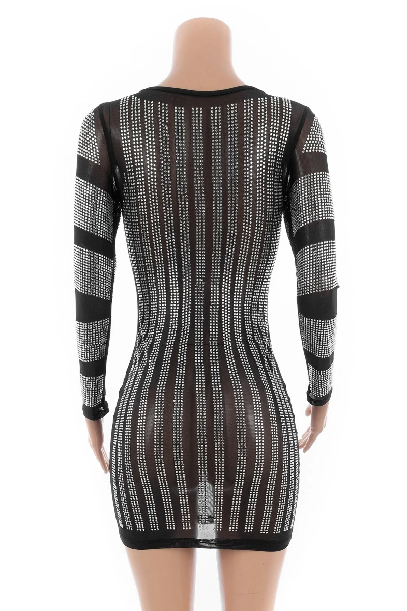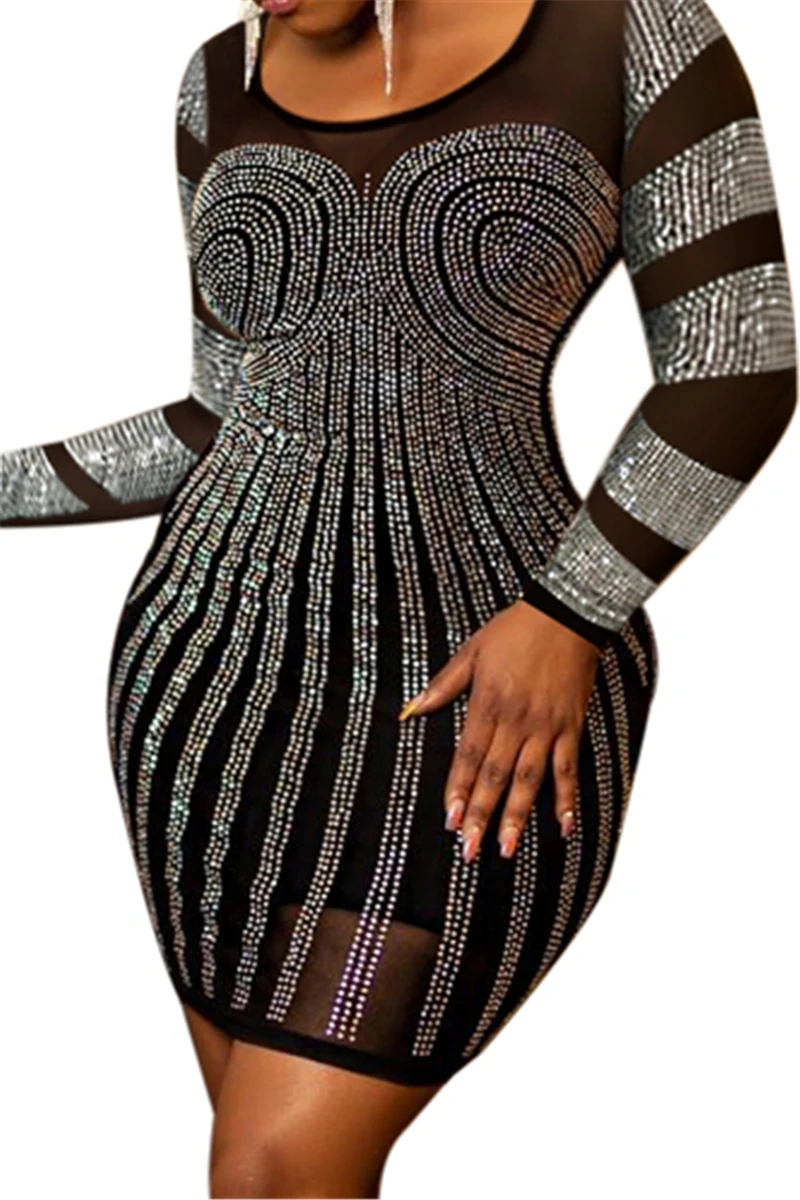 New stylish autumn nightclun mesh spliced hot drilling sexy slim dress