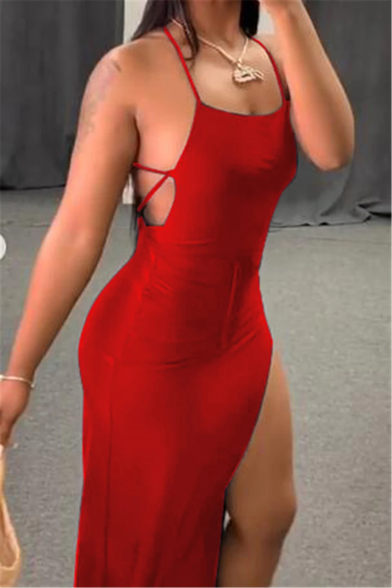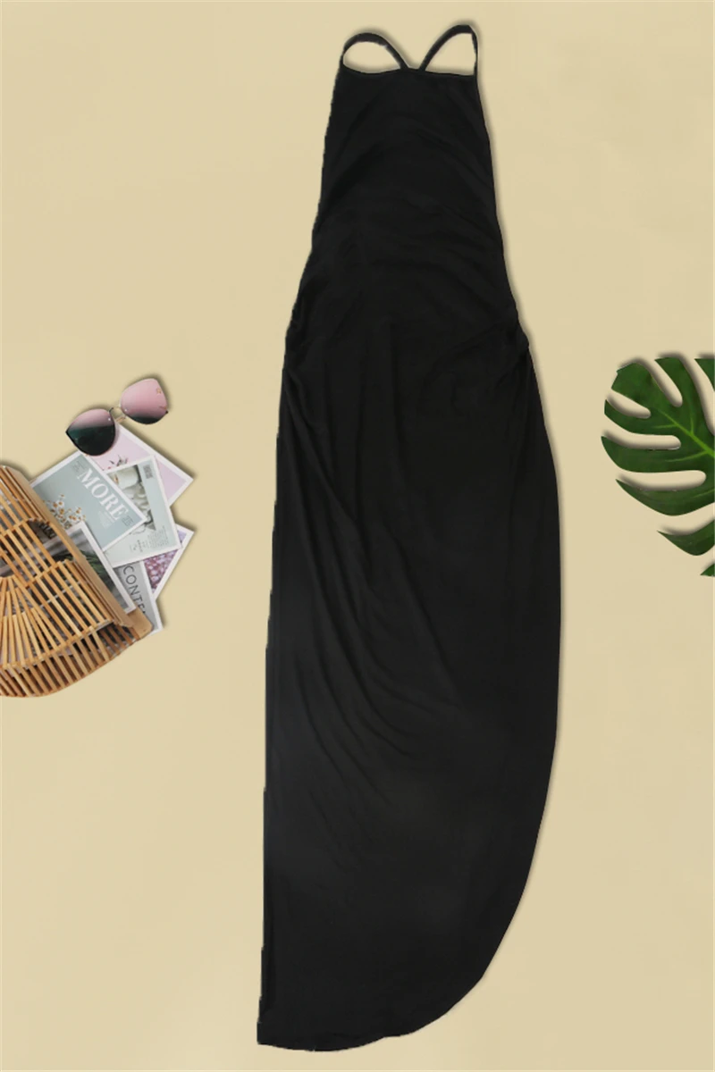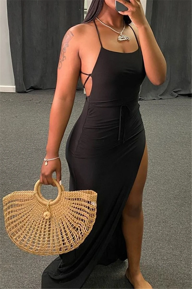 New stylish laced solid color summer irregular high split stretch dress (New add colors)