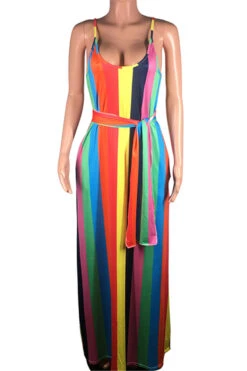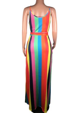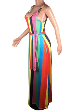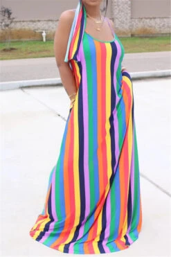 New stylish multicolor streak batch printing stretch loose pockets stretch dress