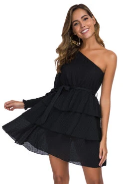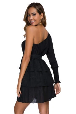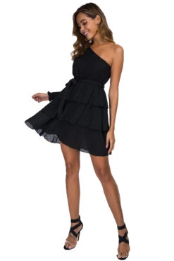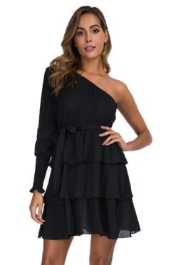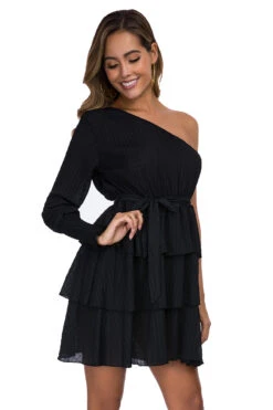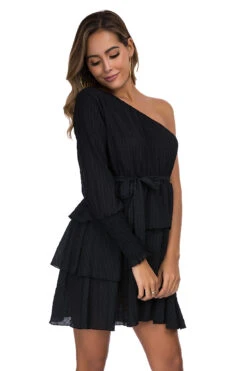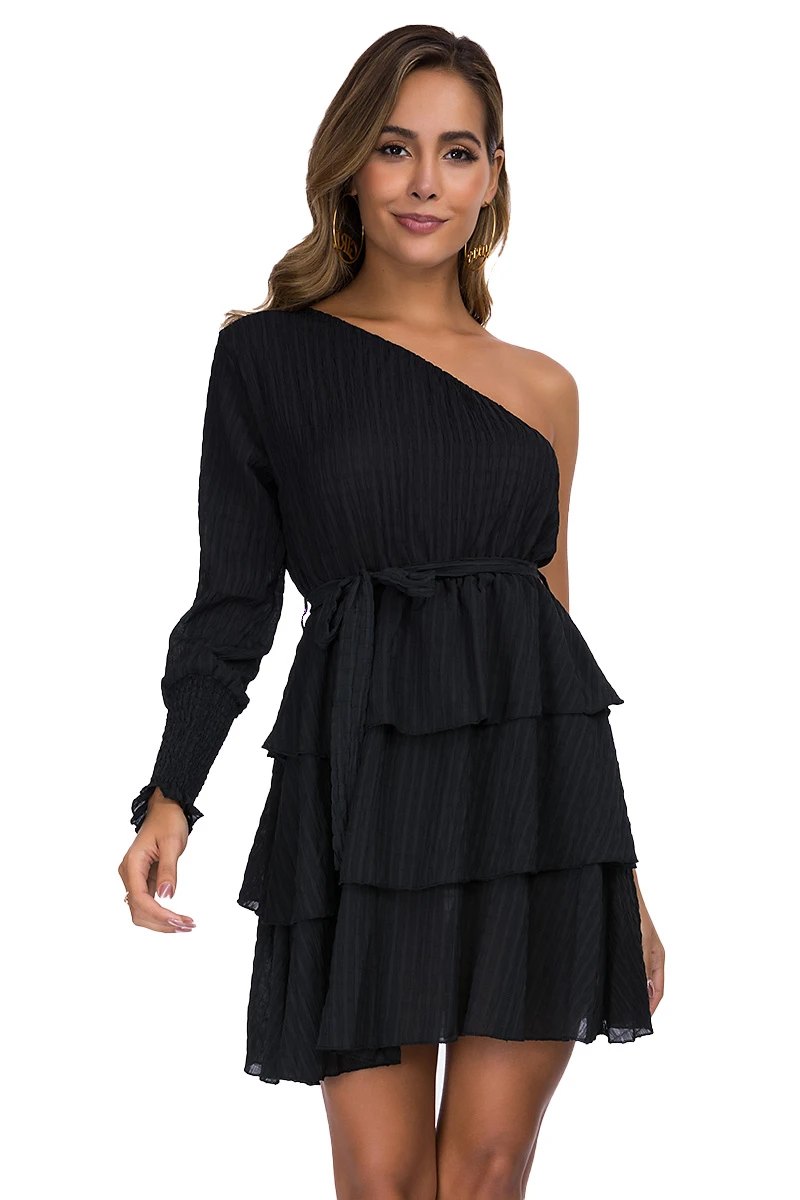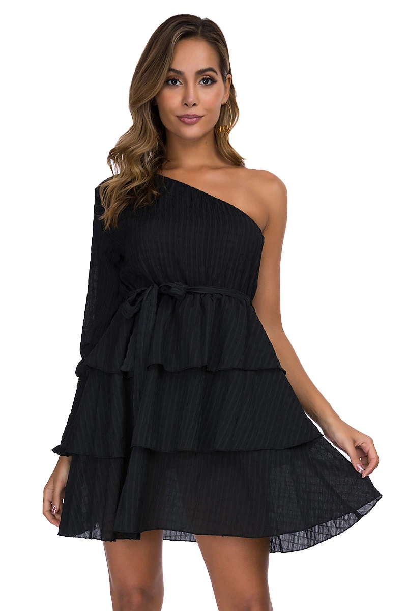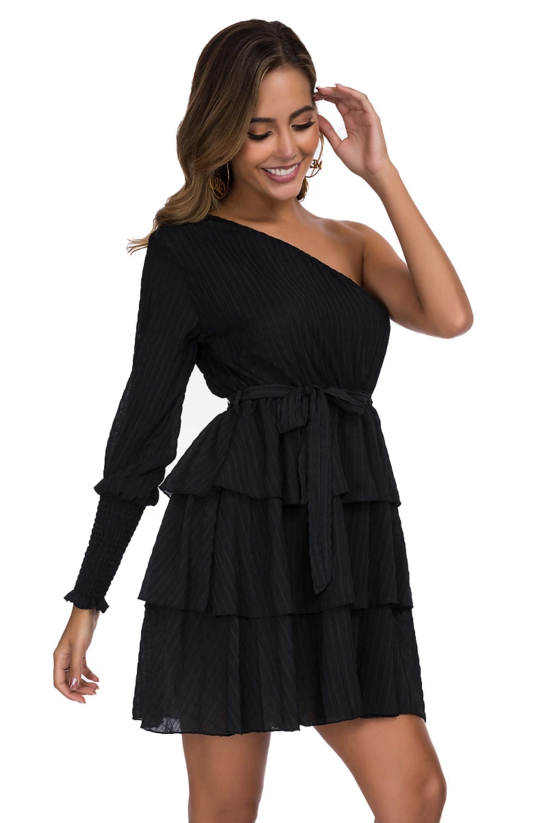 New stylish one shoulder inelastic fabrics layered dress(With belt)