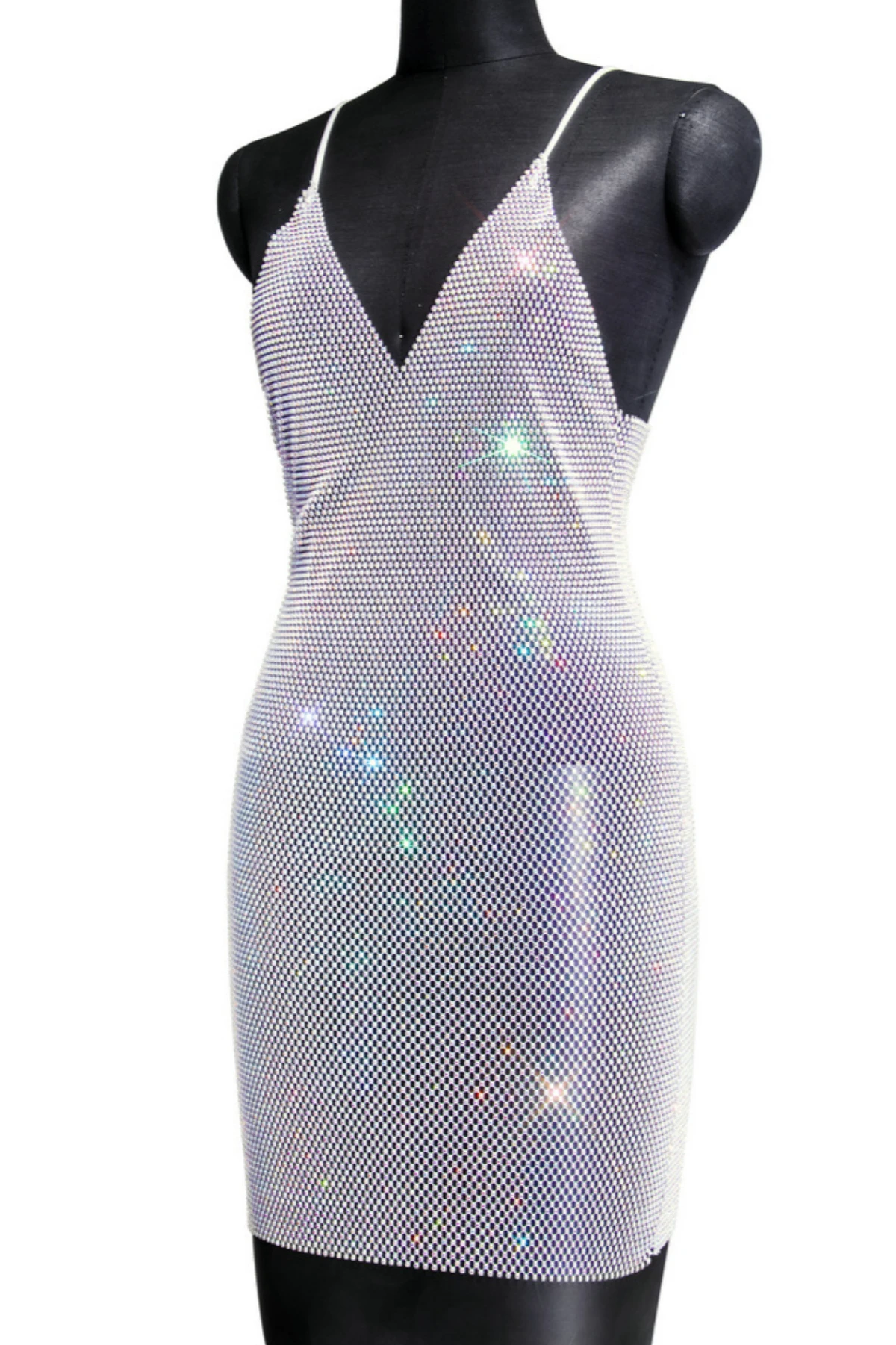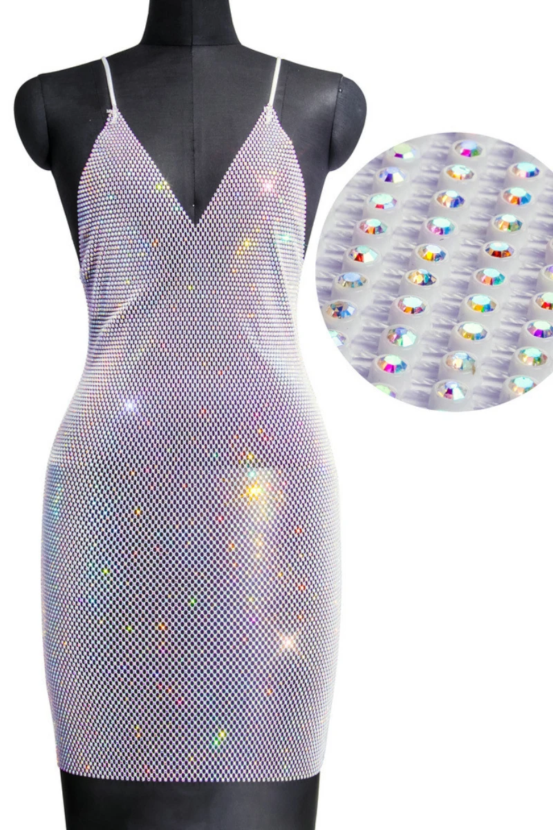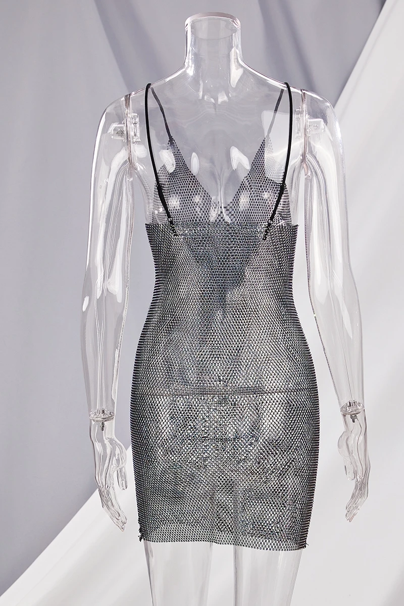 New stylish summer 2 colors multicolor rhinestone sling v-neck slim mini dress