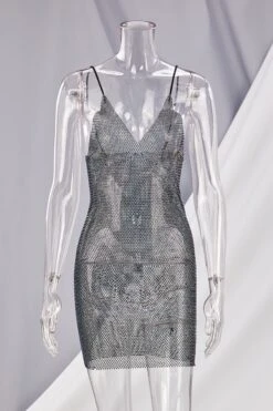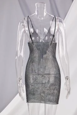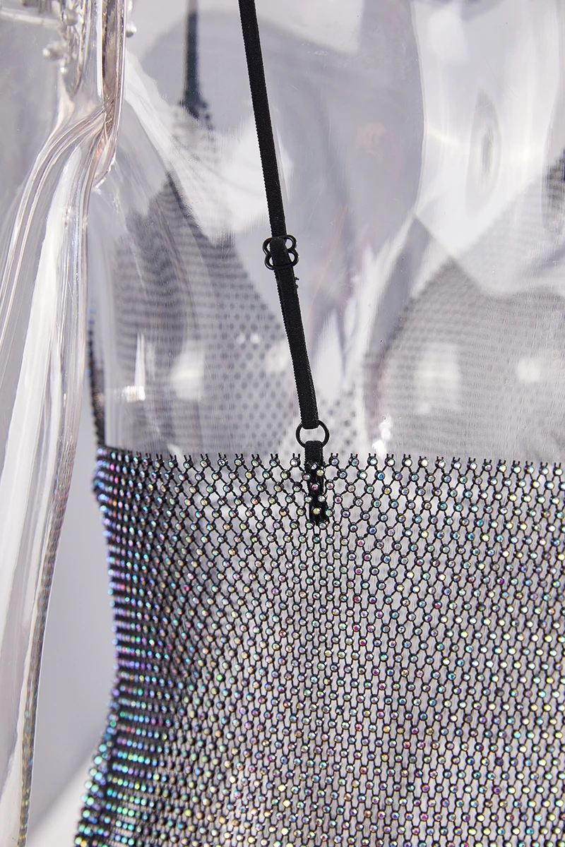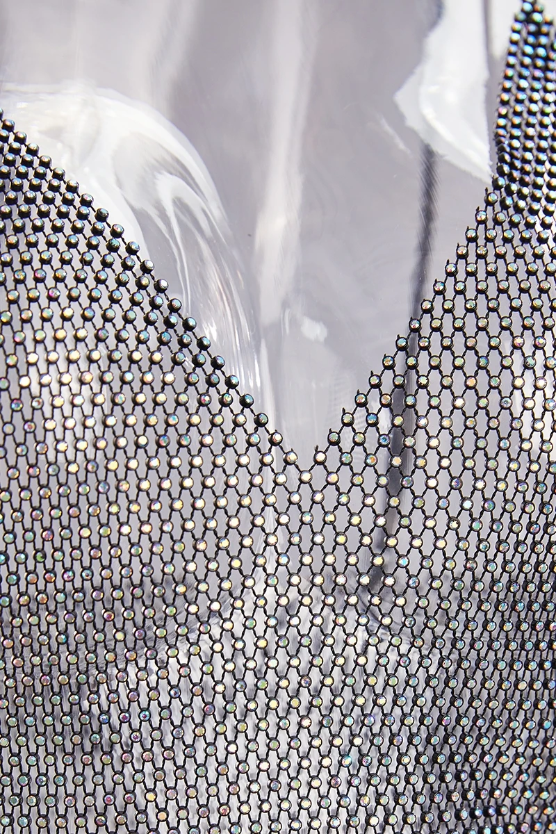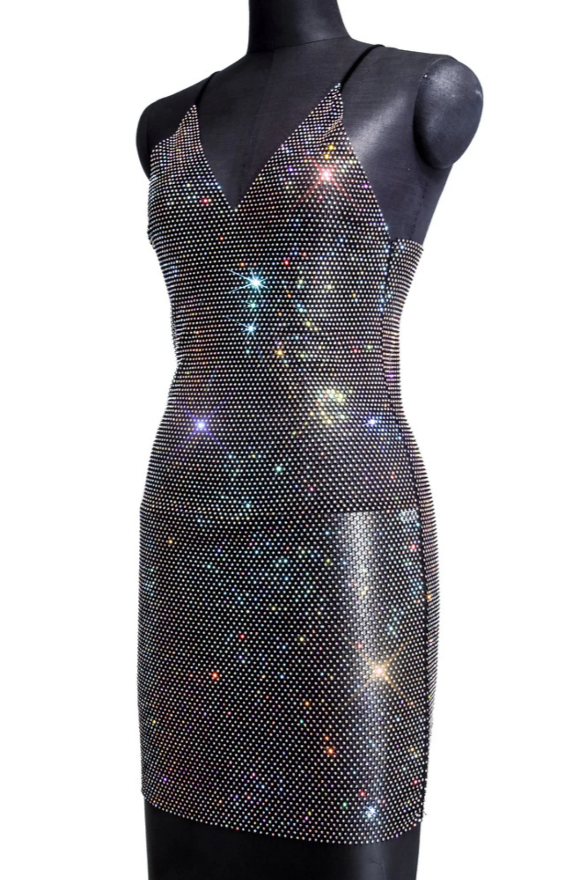 New stylish summer 2 colors multicolor rhinestone sling v-neck slim mini dress