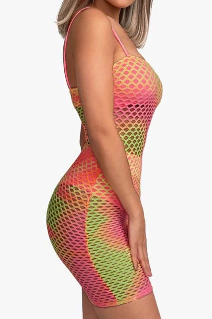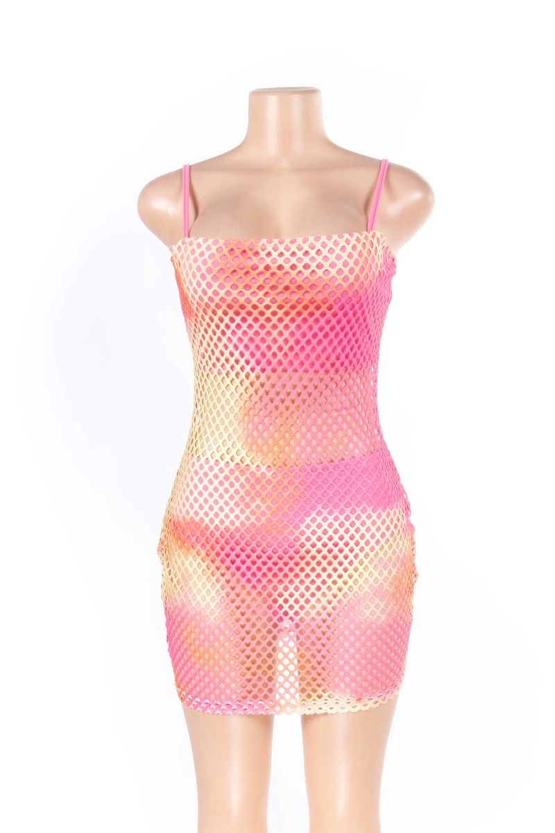 Night club sexy perspective tie-dyed mini dress (With wrap chest)