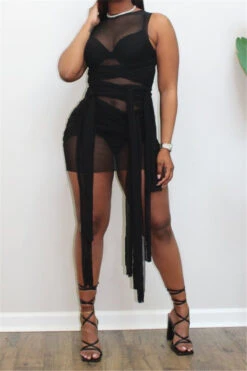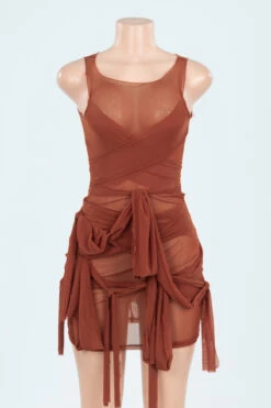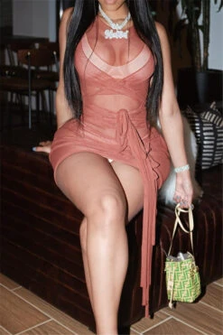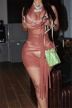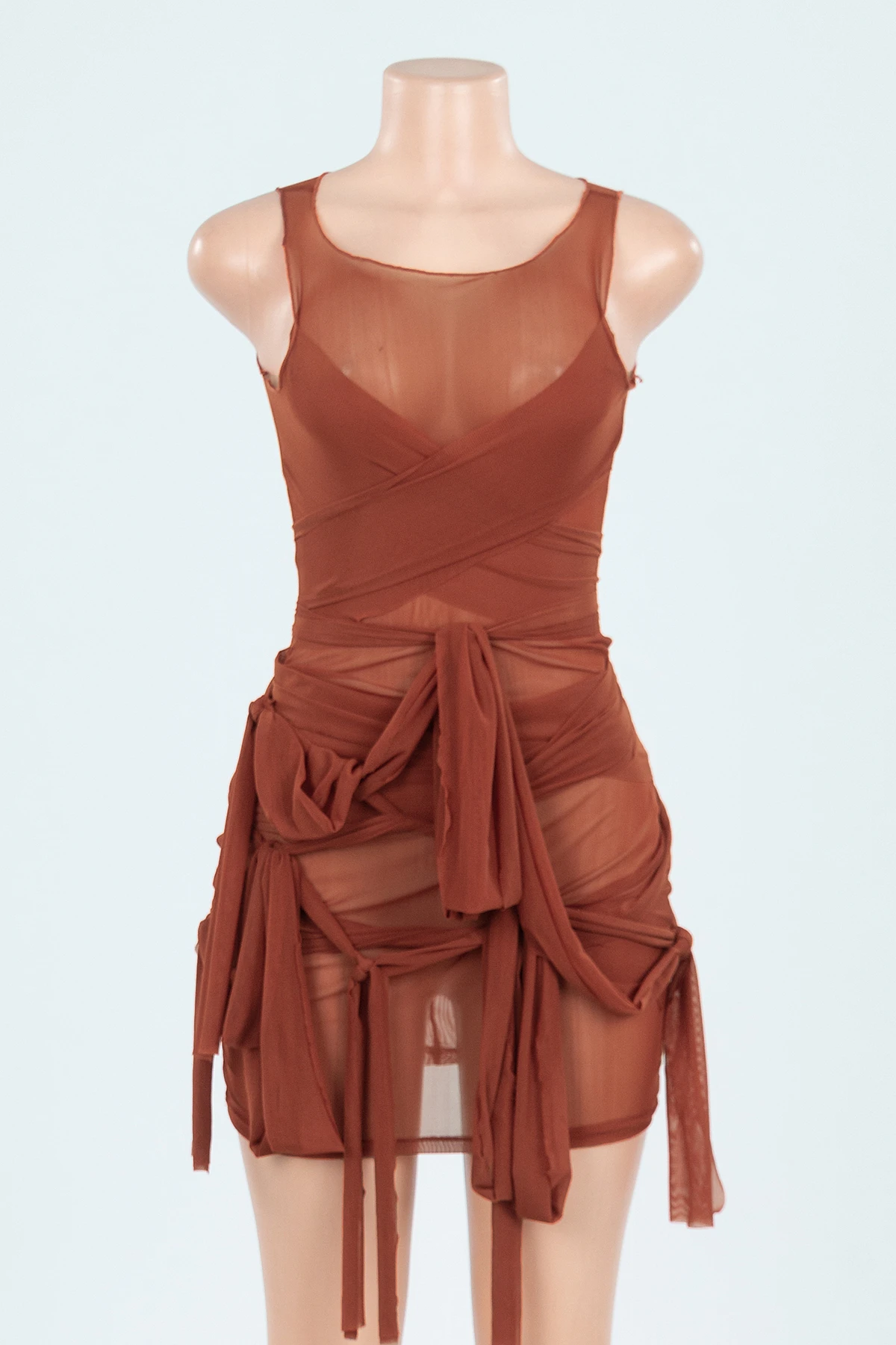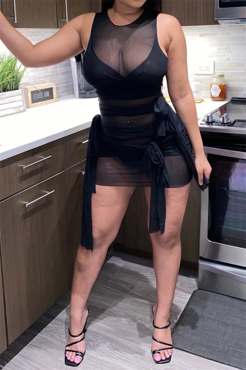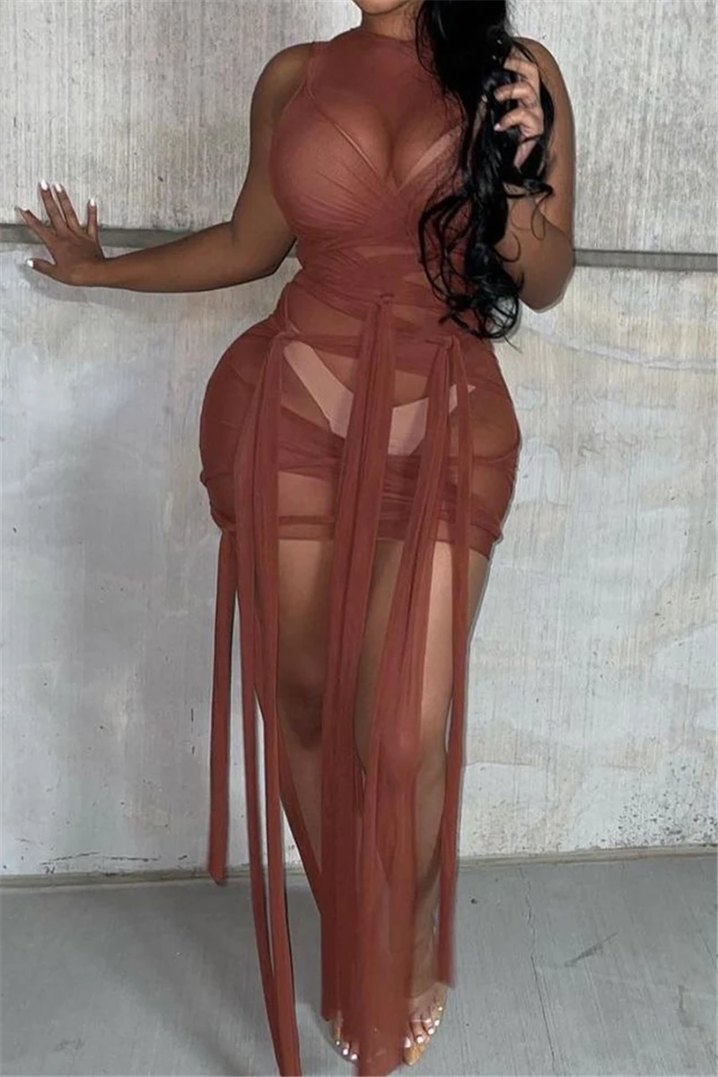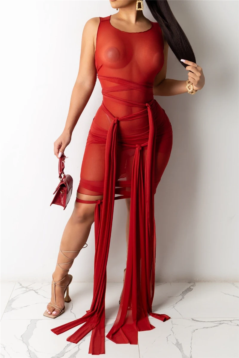 Nine colors solid color mesh see through sexy lace-up slim dress (New add colors)