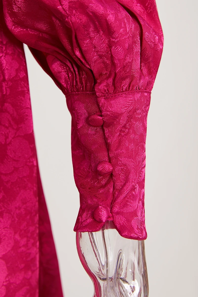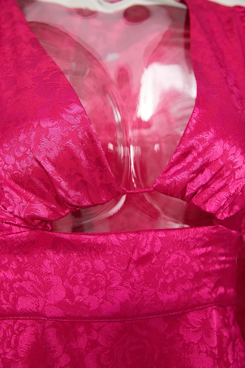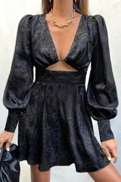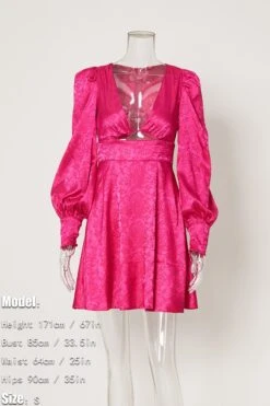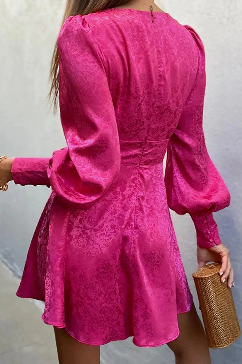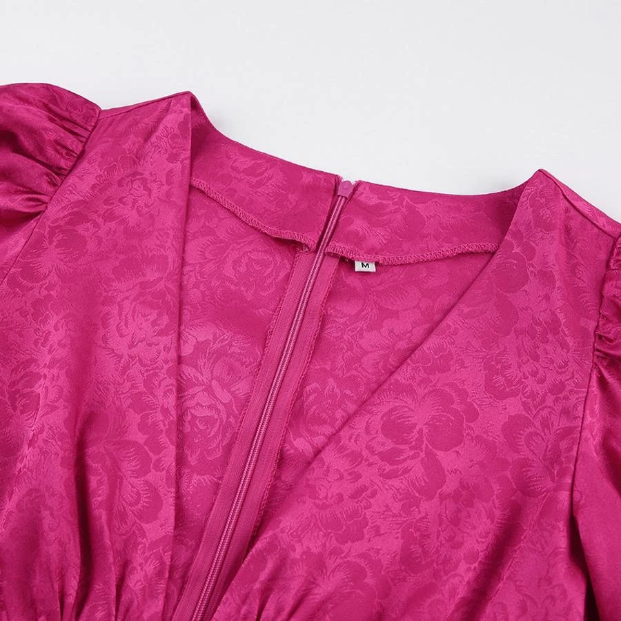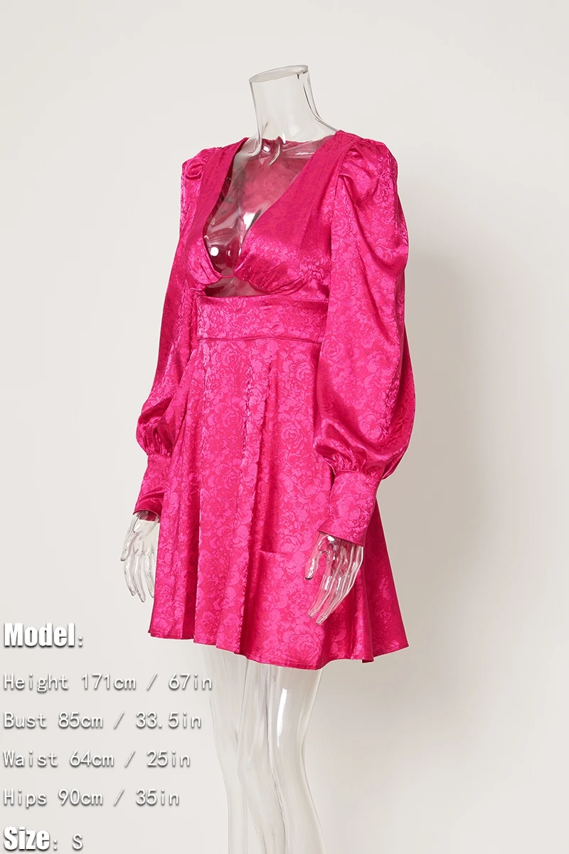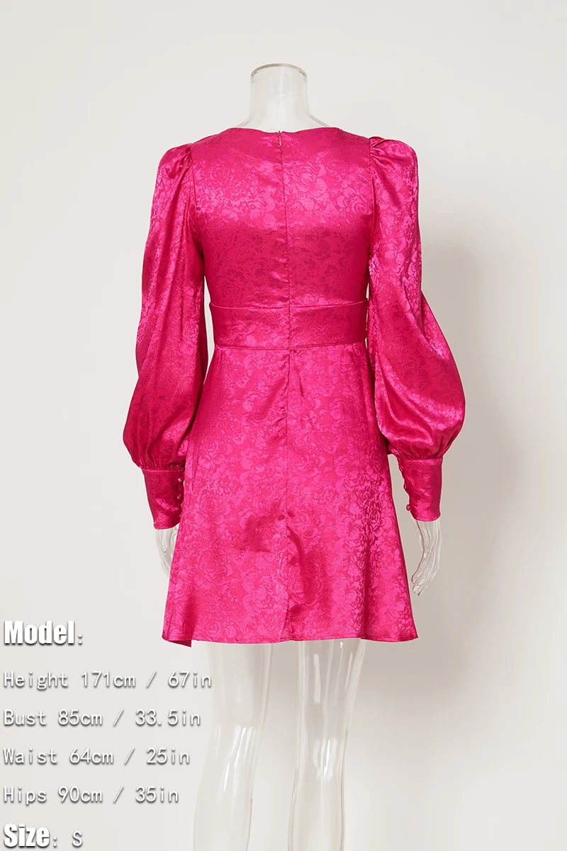 Non-stretch 3-color jacquard hollow zipper lantern sleeve sexy mini dress