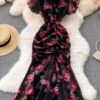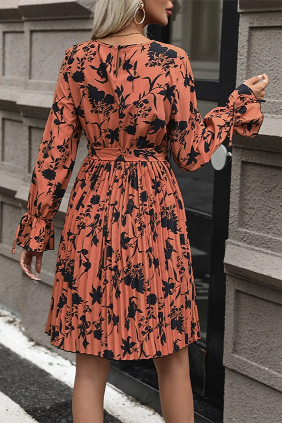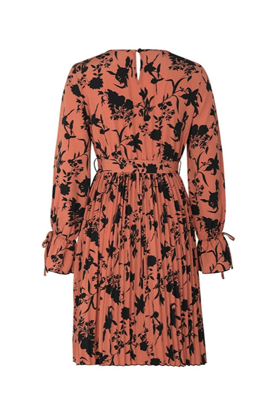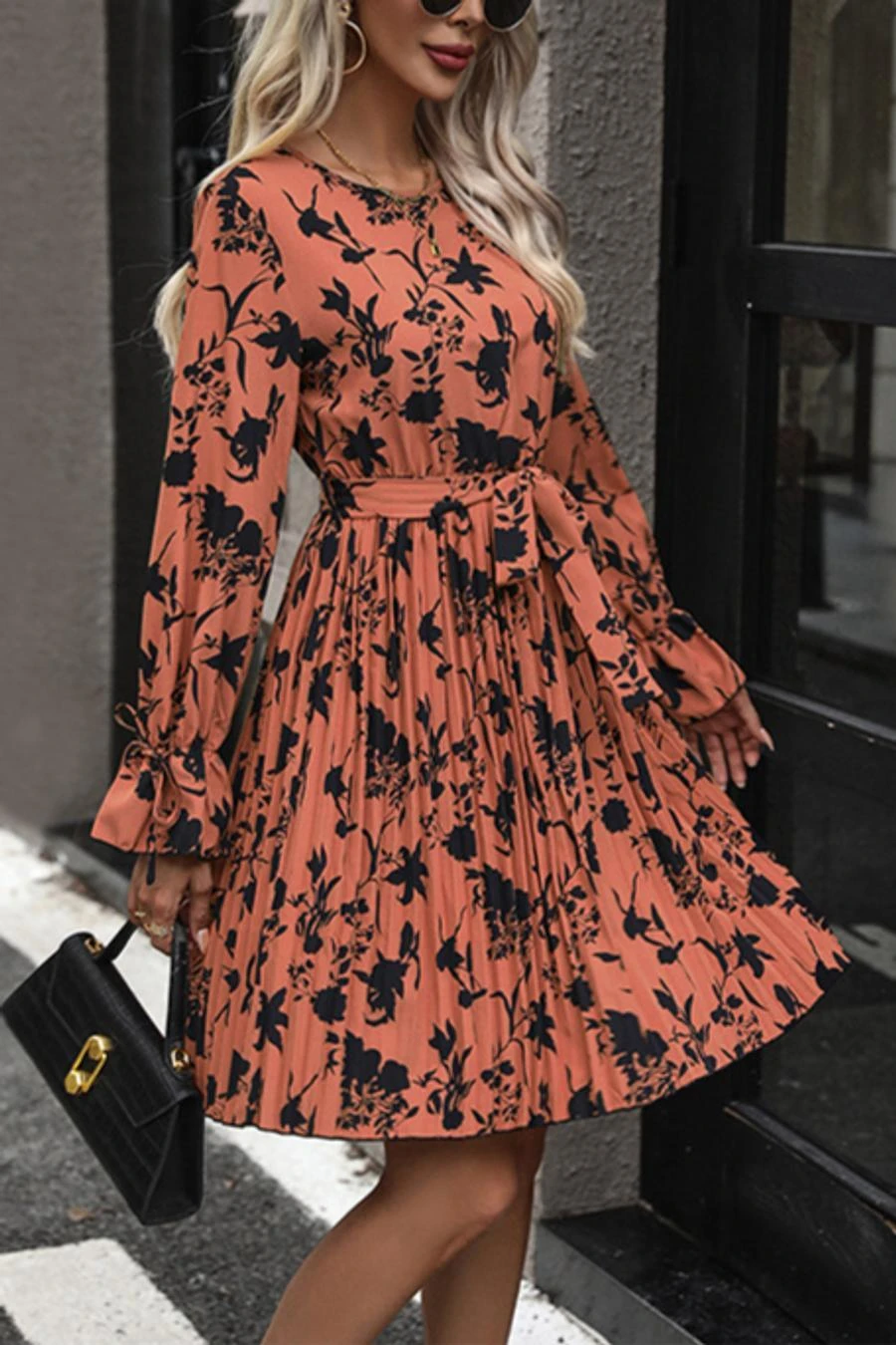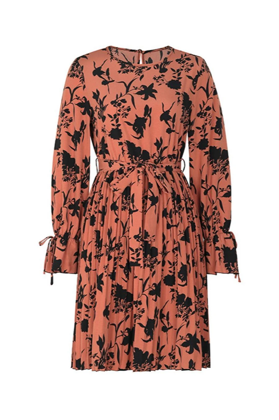 Non-stretch casual flower batch printing stylish with belt mini dress