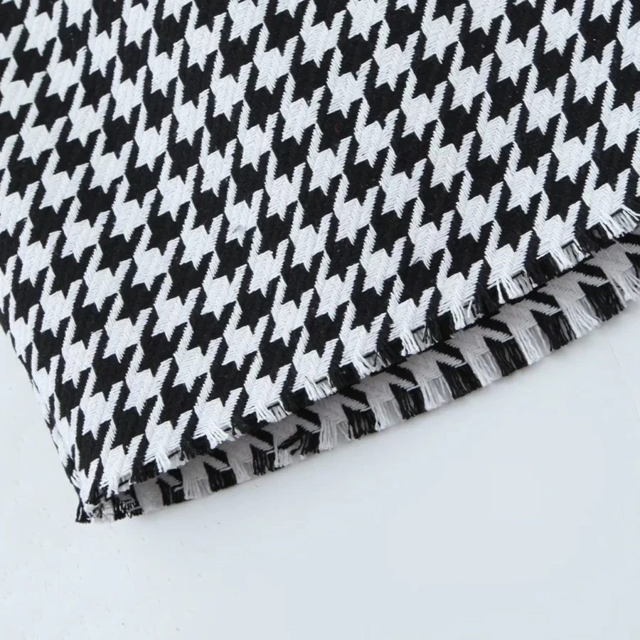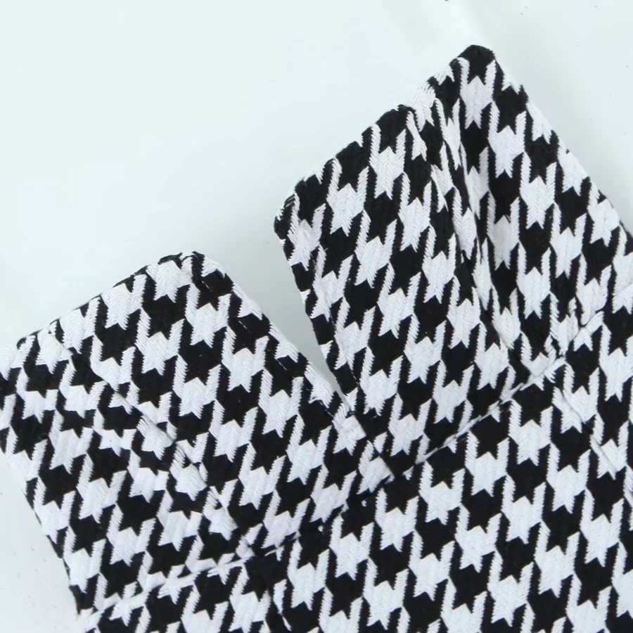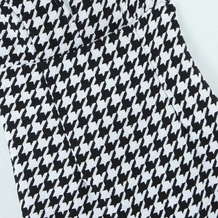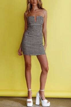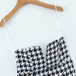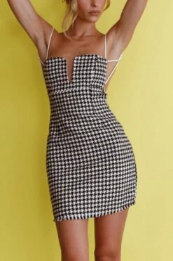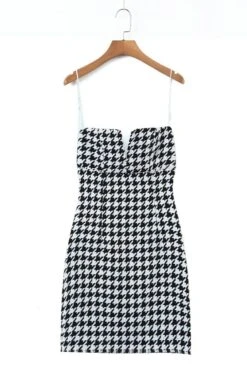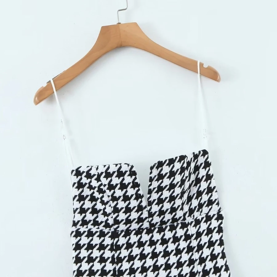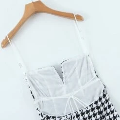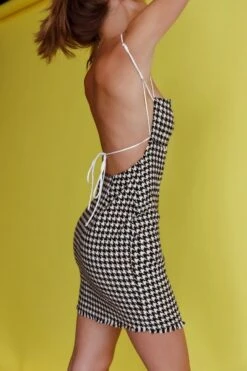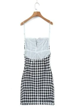 Non-stretch houndstooth printing sling backless lace-up slim sexy mini dress