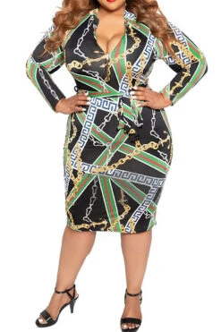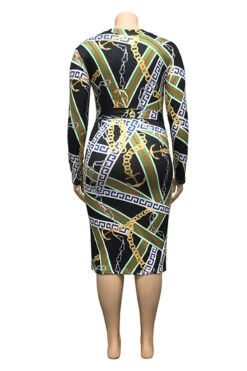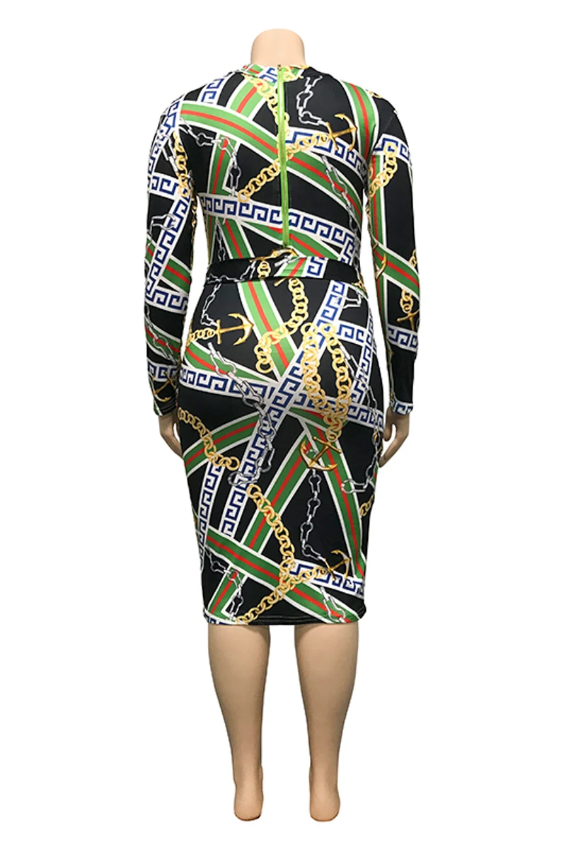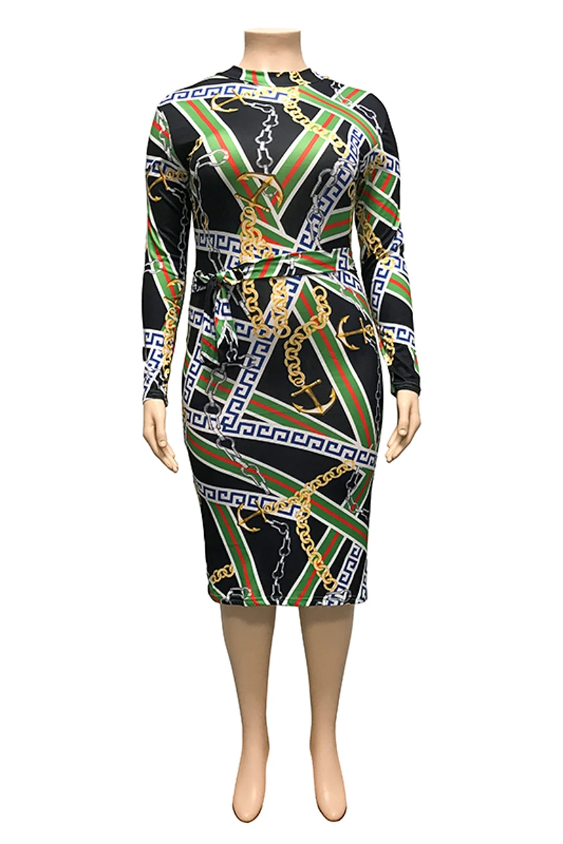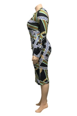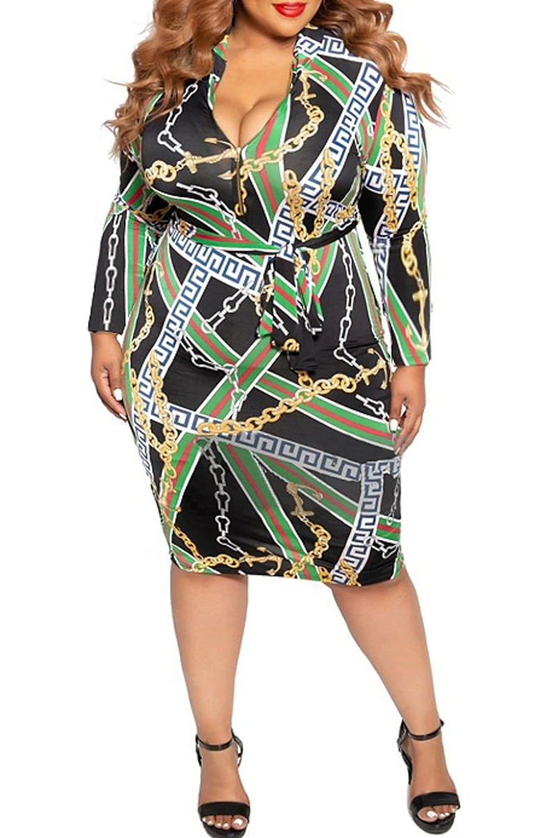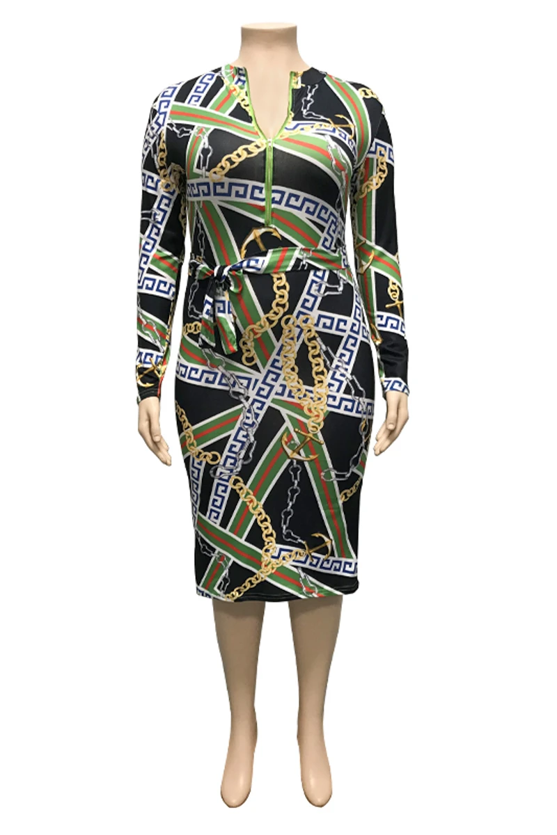 Oversized new stylish both sides wear slim fit stretch zip-up batch printing dress(With belt)