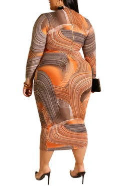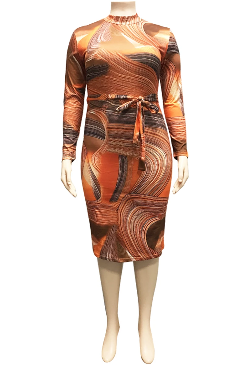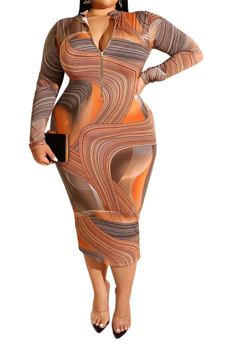 Oversized new stylish streamer batch printing zip-up both sides wear tight stretch dress(With belt)