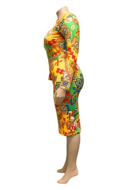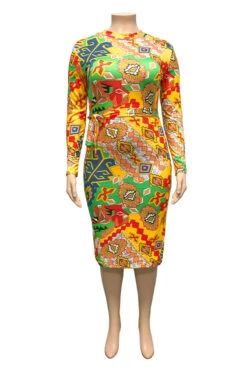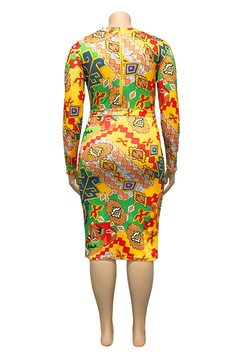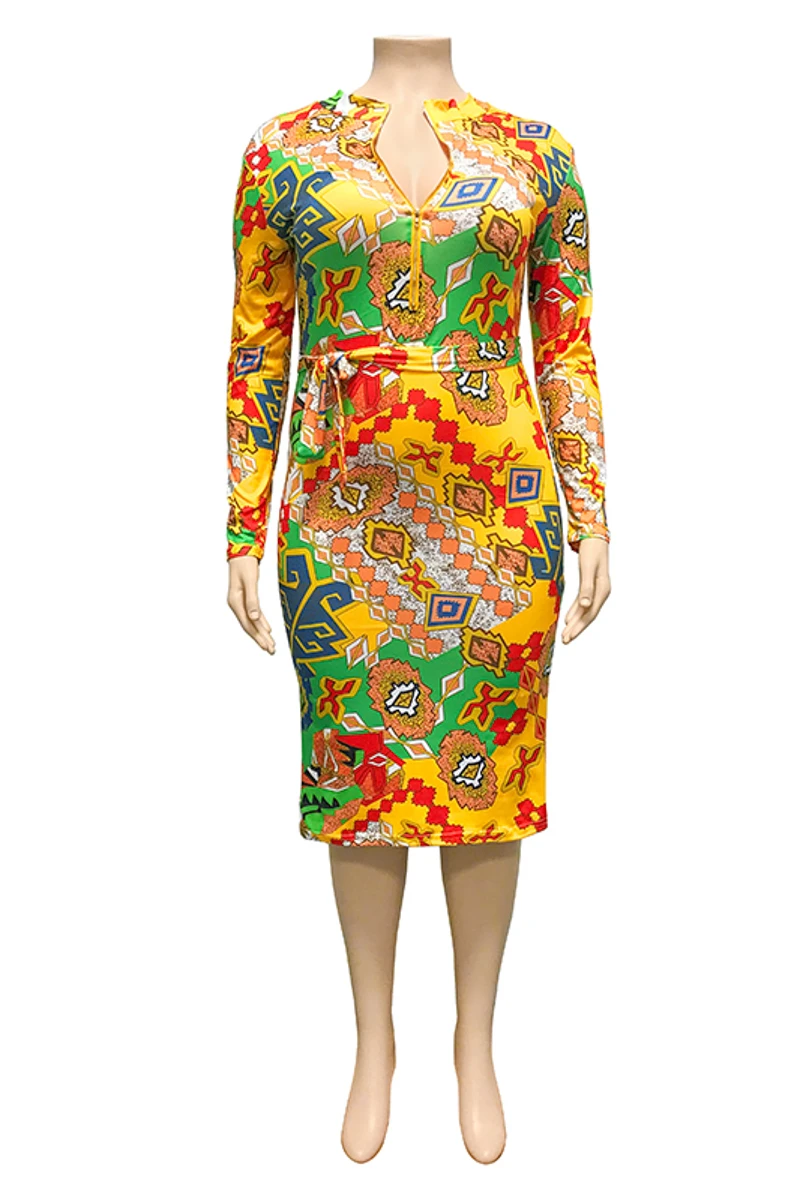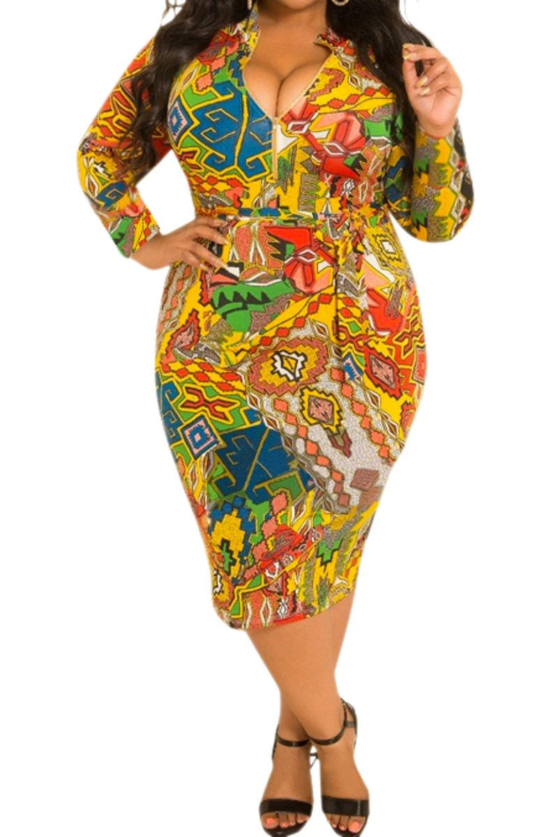 Oversized new stylish zip-up multicolor pattern batch printed stretch both sides wear dress(With belt)