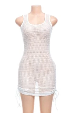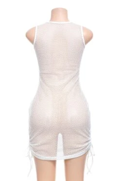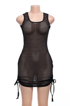 Plus size 2 colors summer solid color mesh see through sexy without lining dress