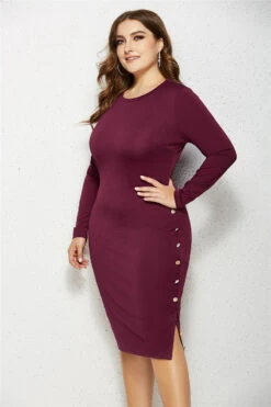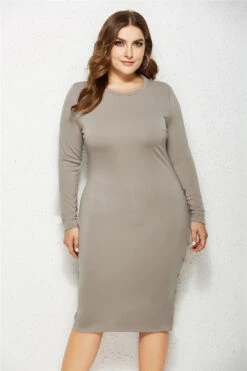 Plus size 4 colors solid color long-sleeves stretch slim new stylish dress