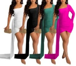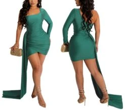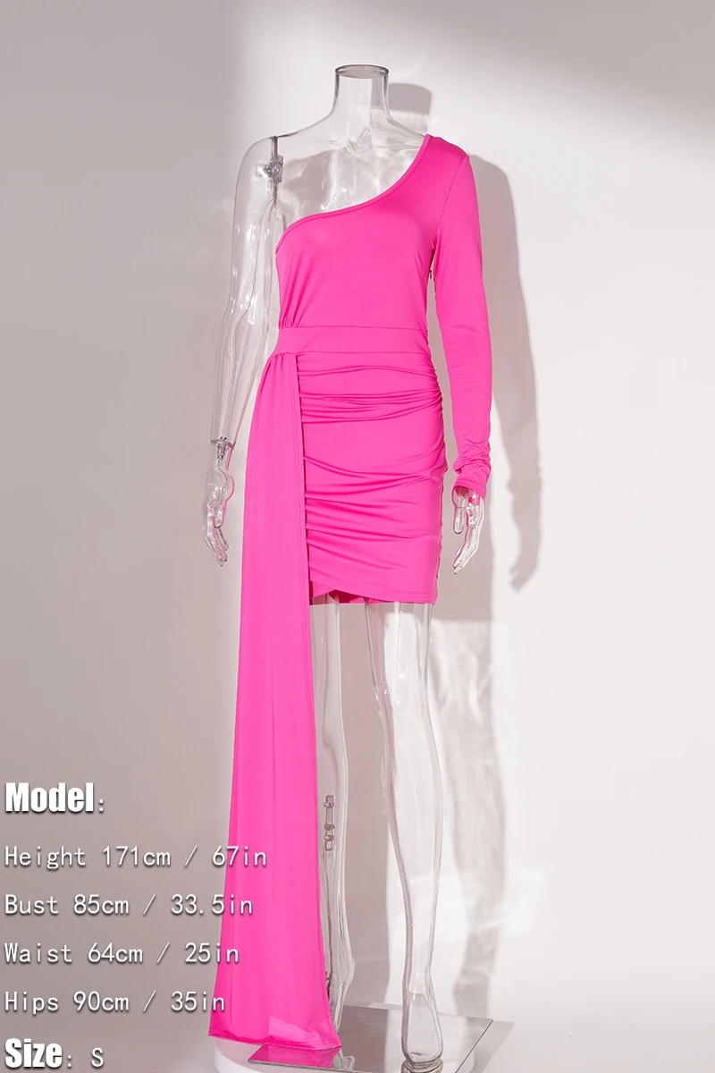 Plus size 4 colors stretch one shoulder long streamer design sexy mini dress