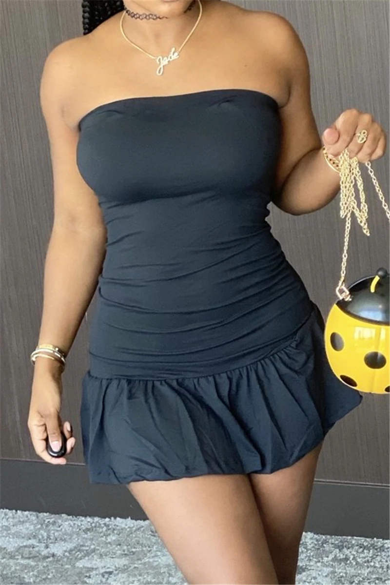 Plus size 6 colors solid colors summer strapless sexy mini dress