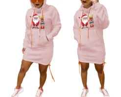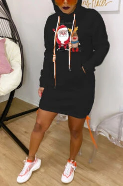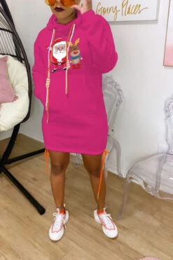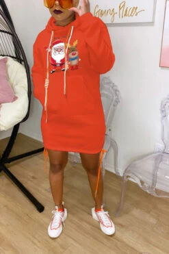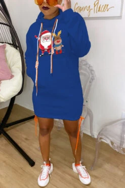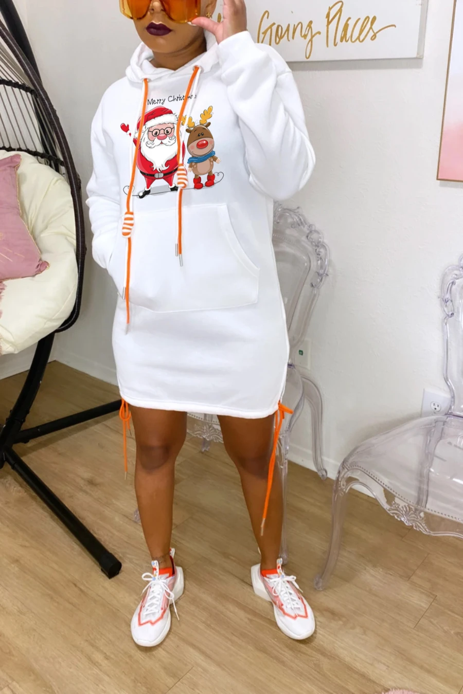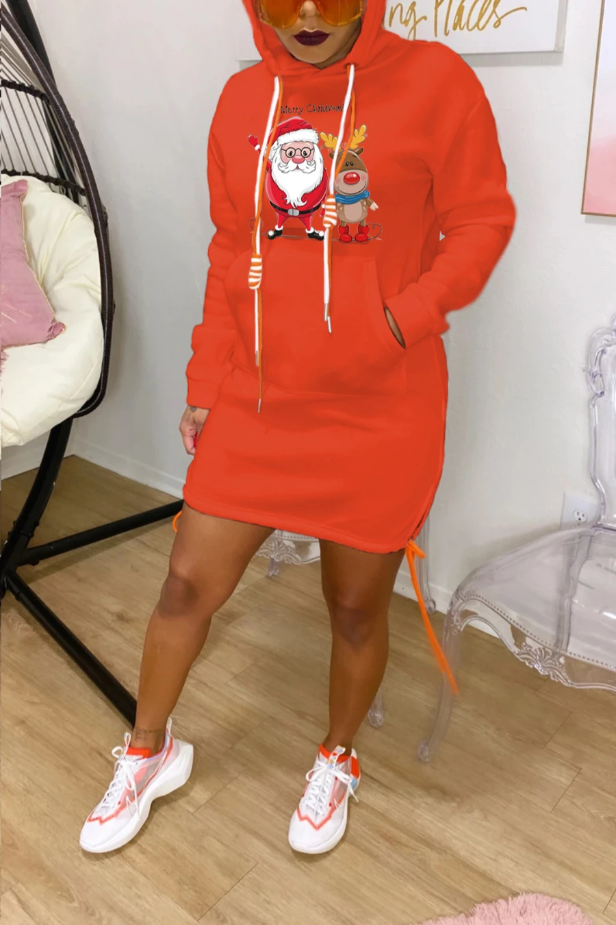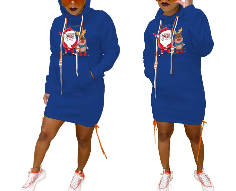 Plus size autumn 7 colors Christmas pattern printing hooded stretch casual mini dress