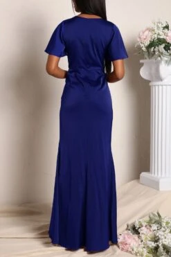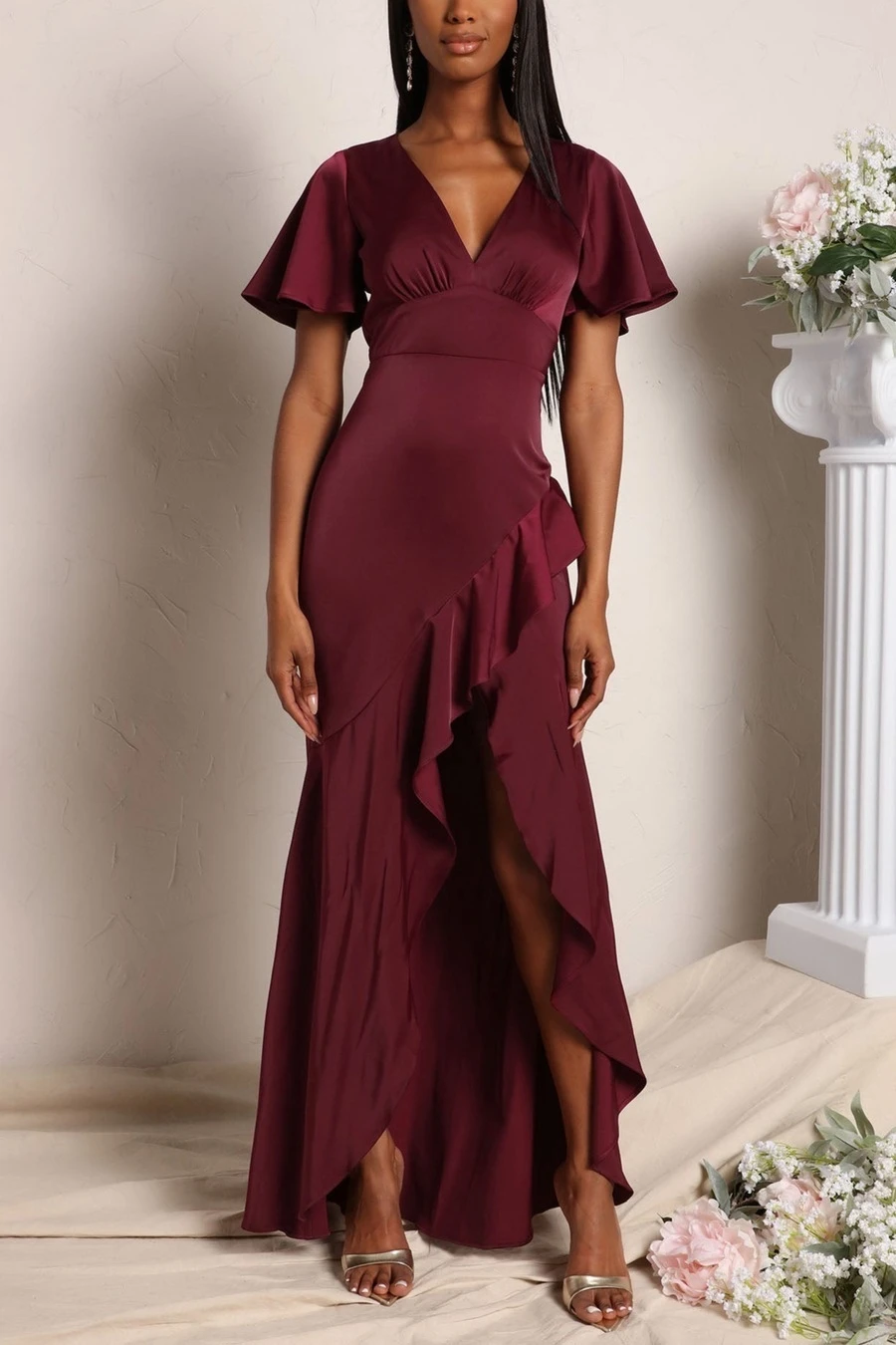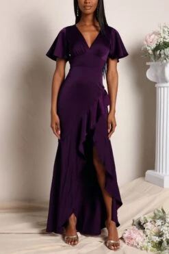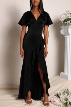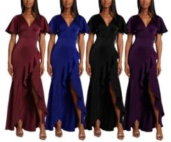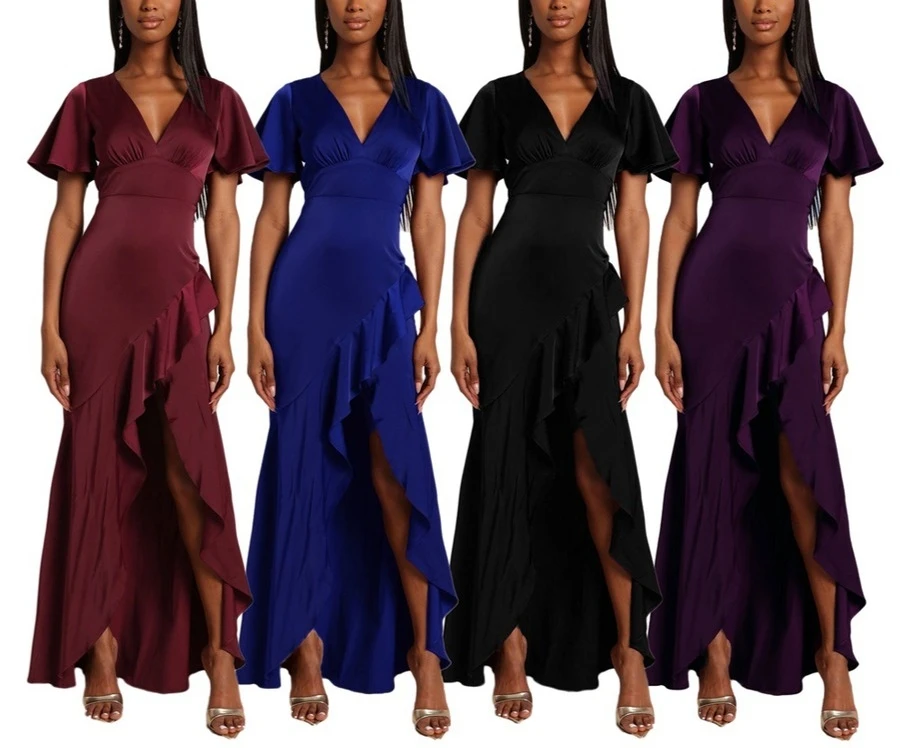Plus size four colors high stretch ruffle high slit irregular stylish maxi dress