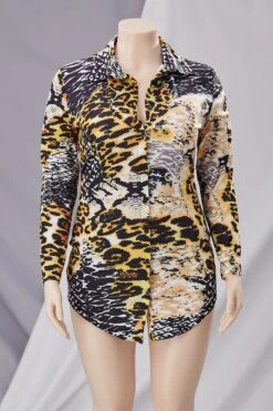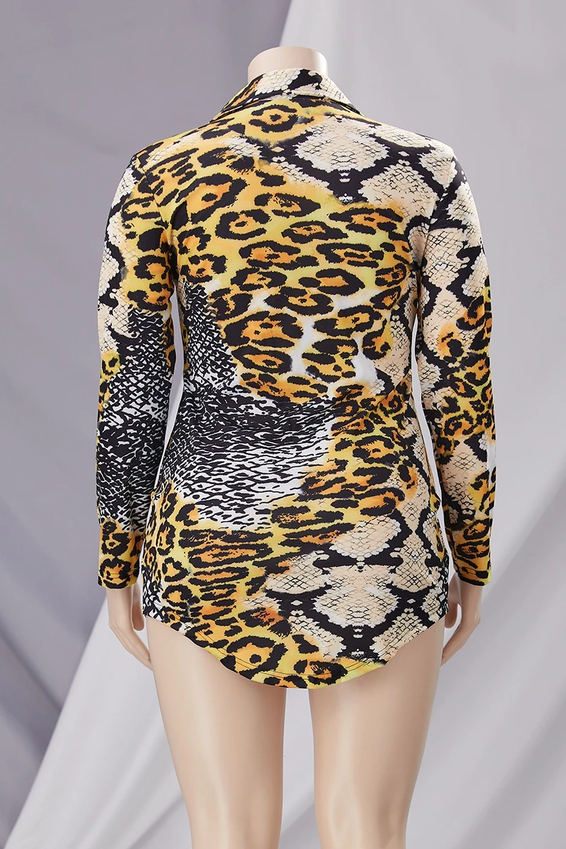 Plus size leopard stitching snakeskin batch printing single breasted micro elastic mini dress