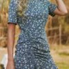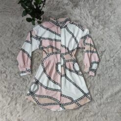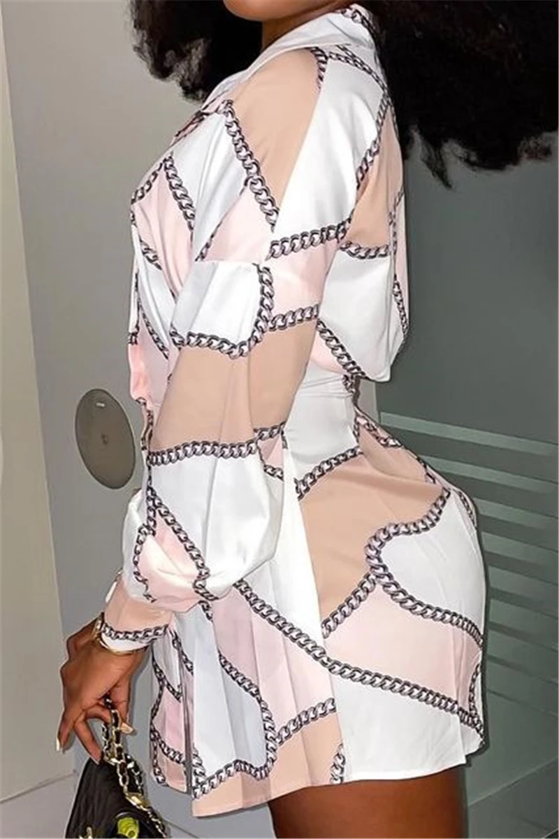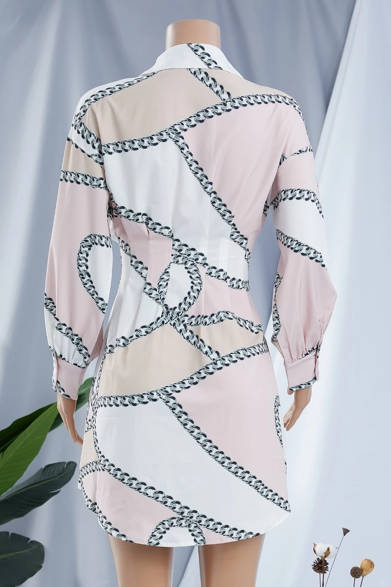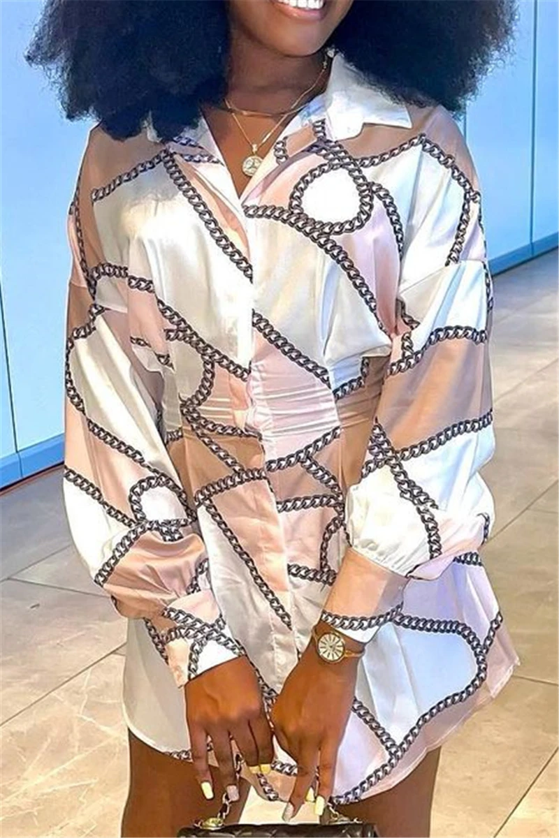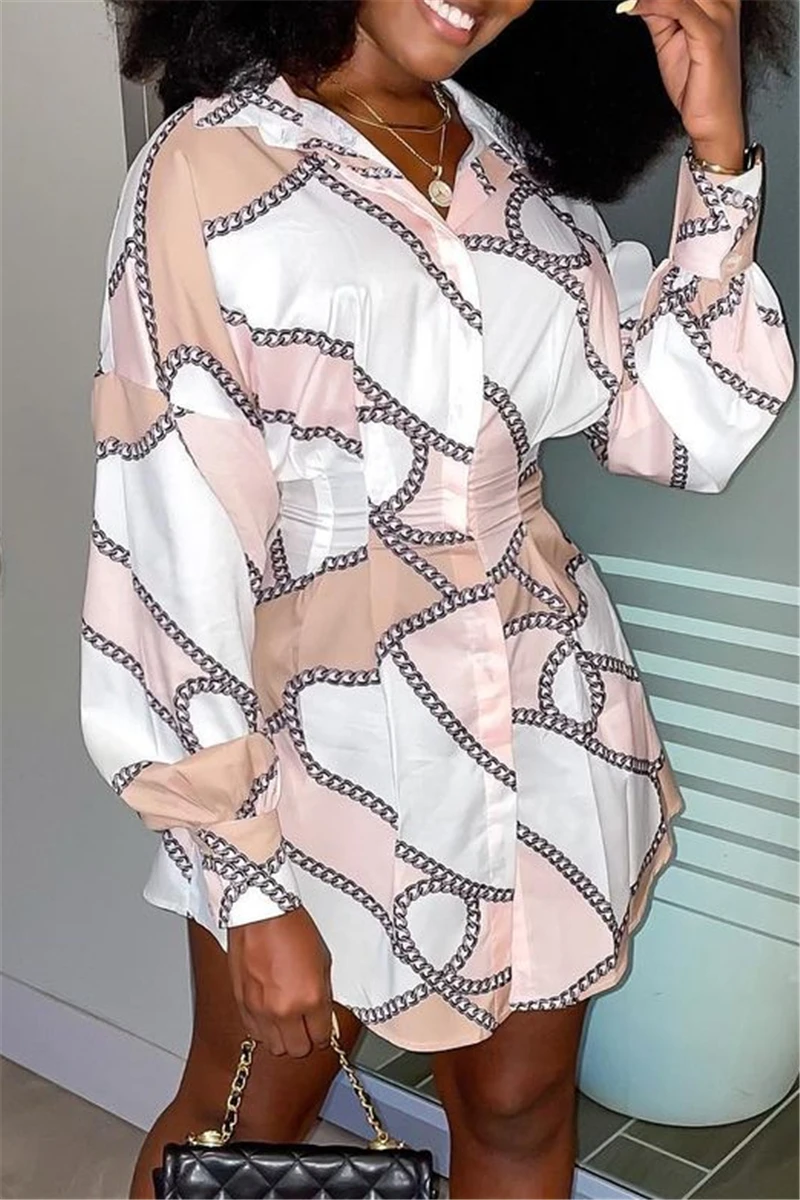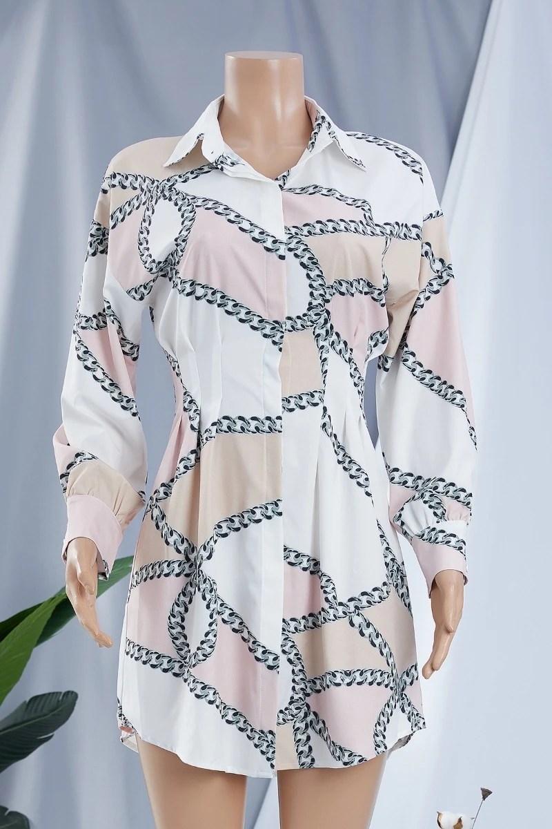 Plus size long sleeve summer batch printing single breasted inelastic mini dress
