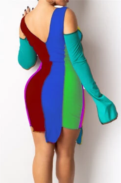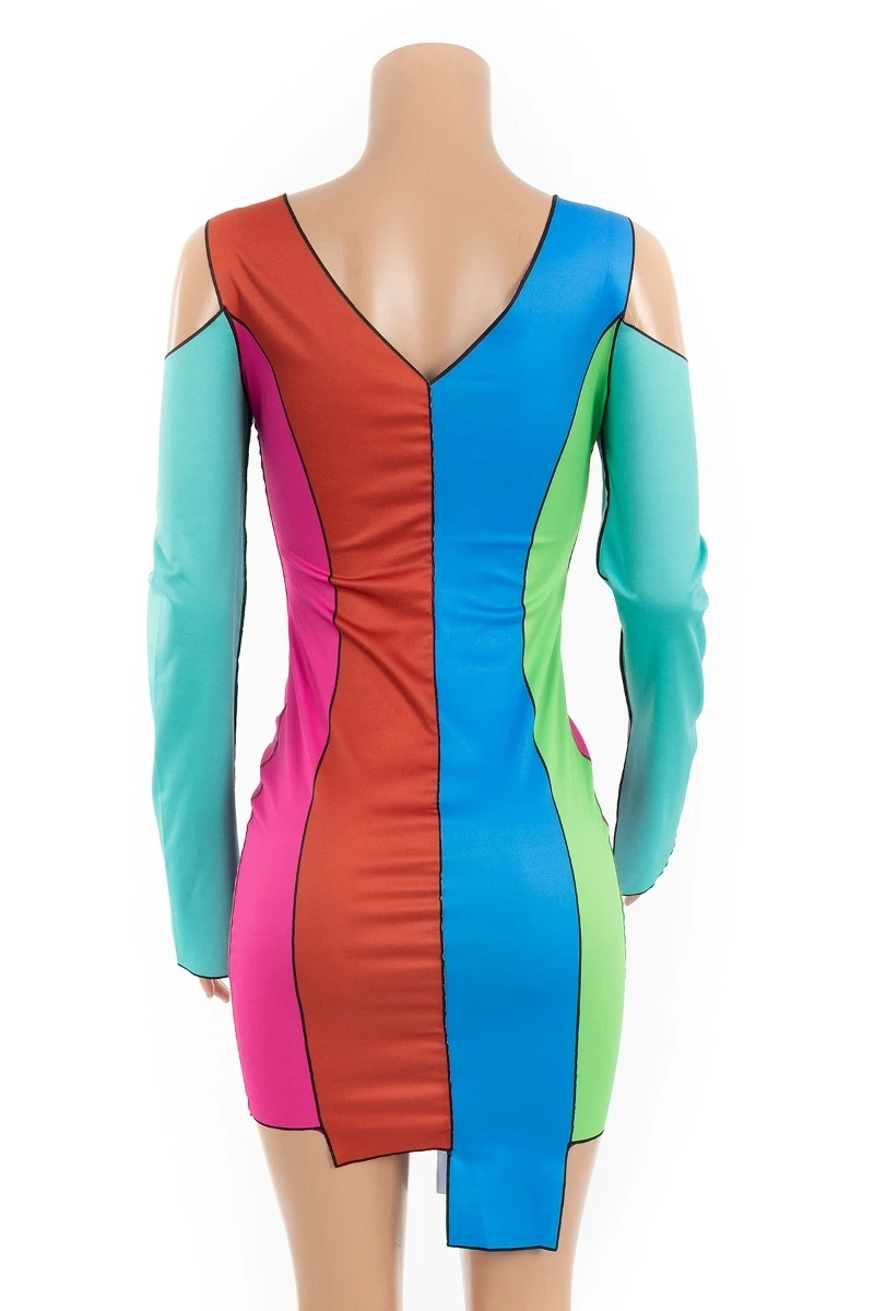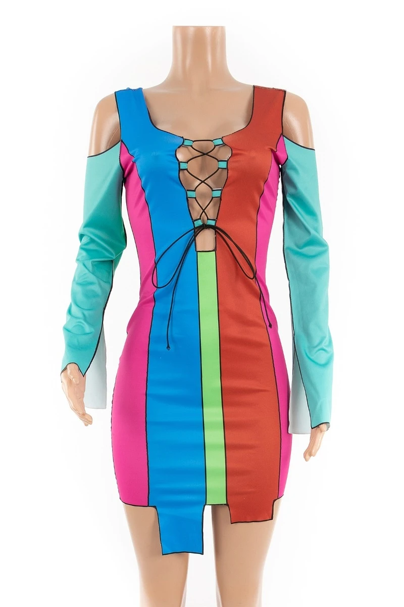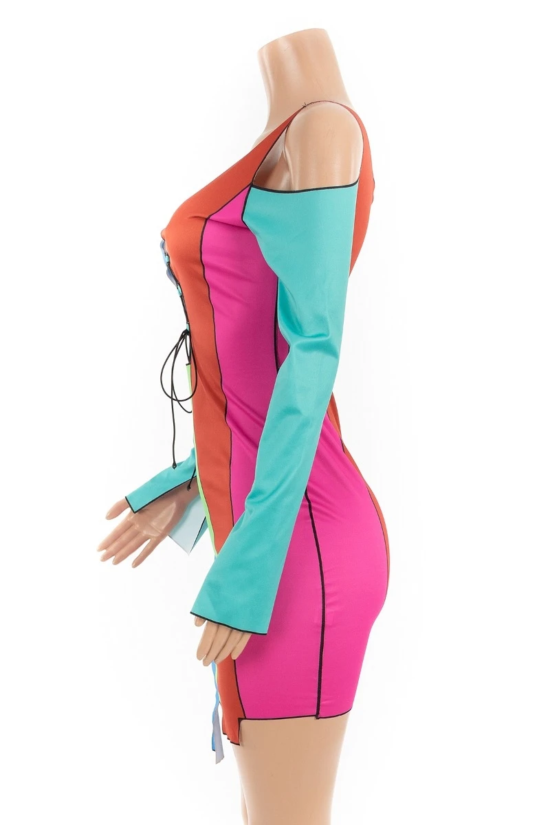 Plus size new style sexy contrast color printing hollow out lace-up autumn slim dress