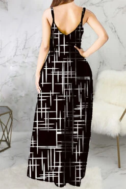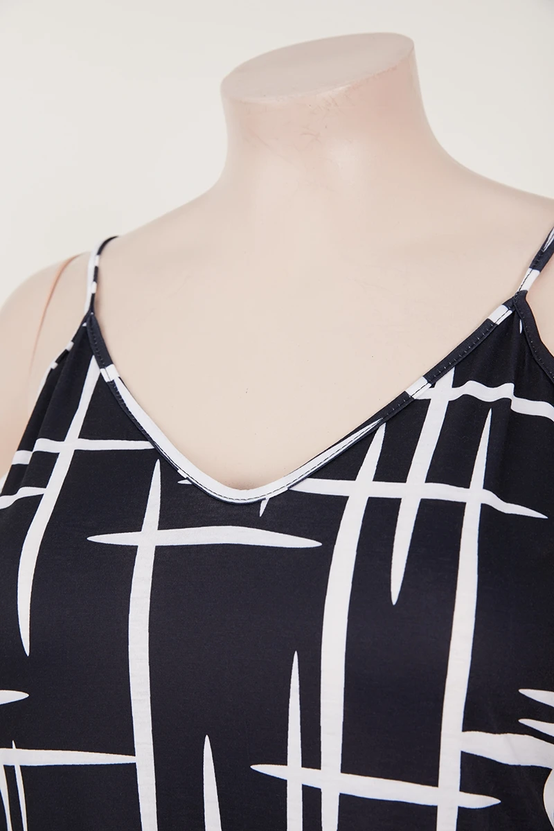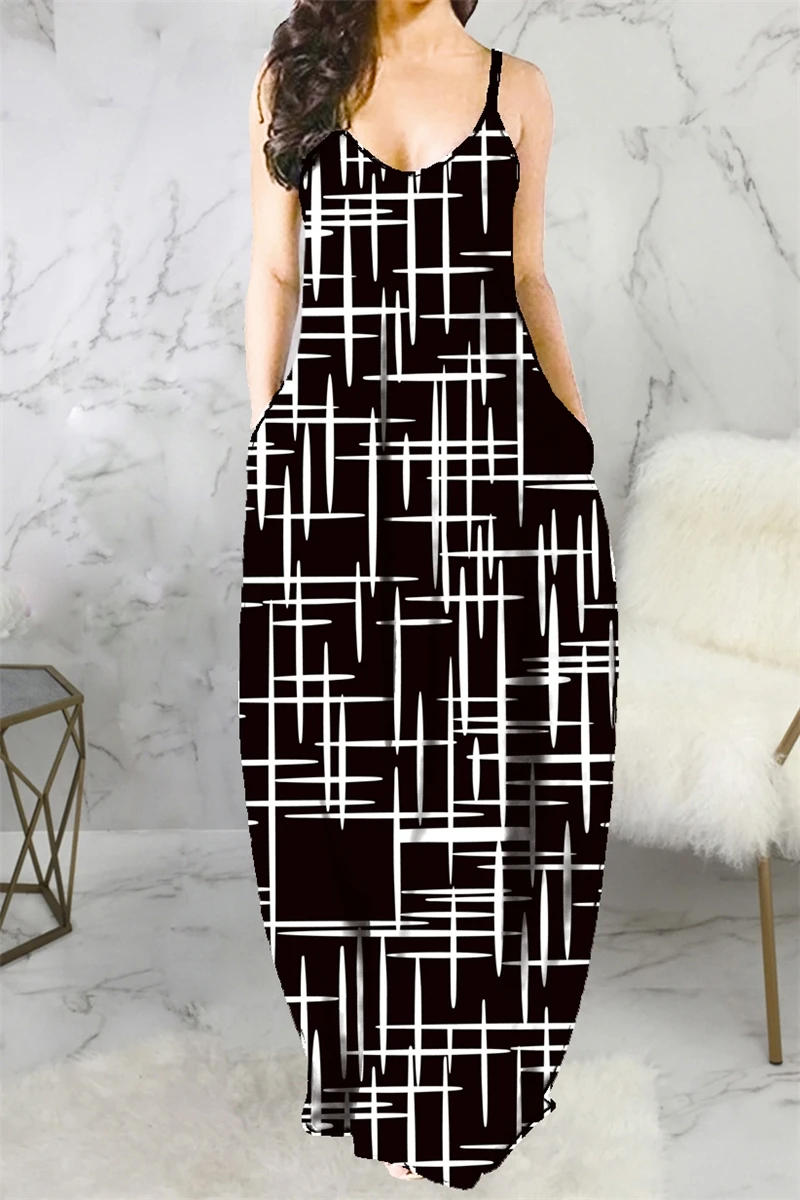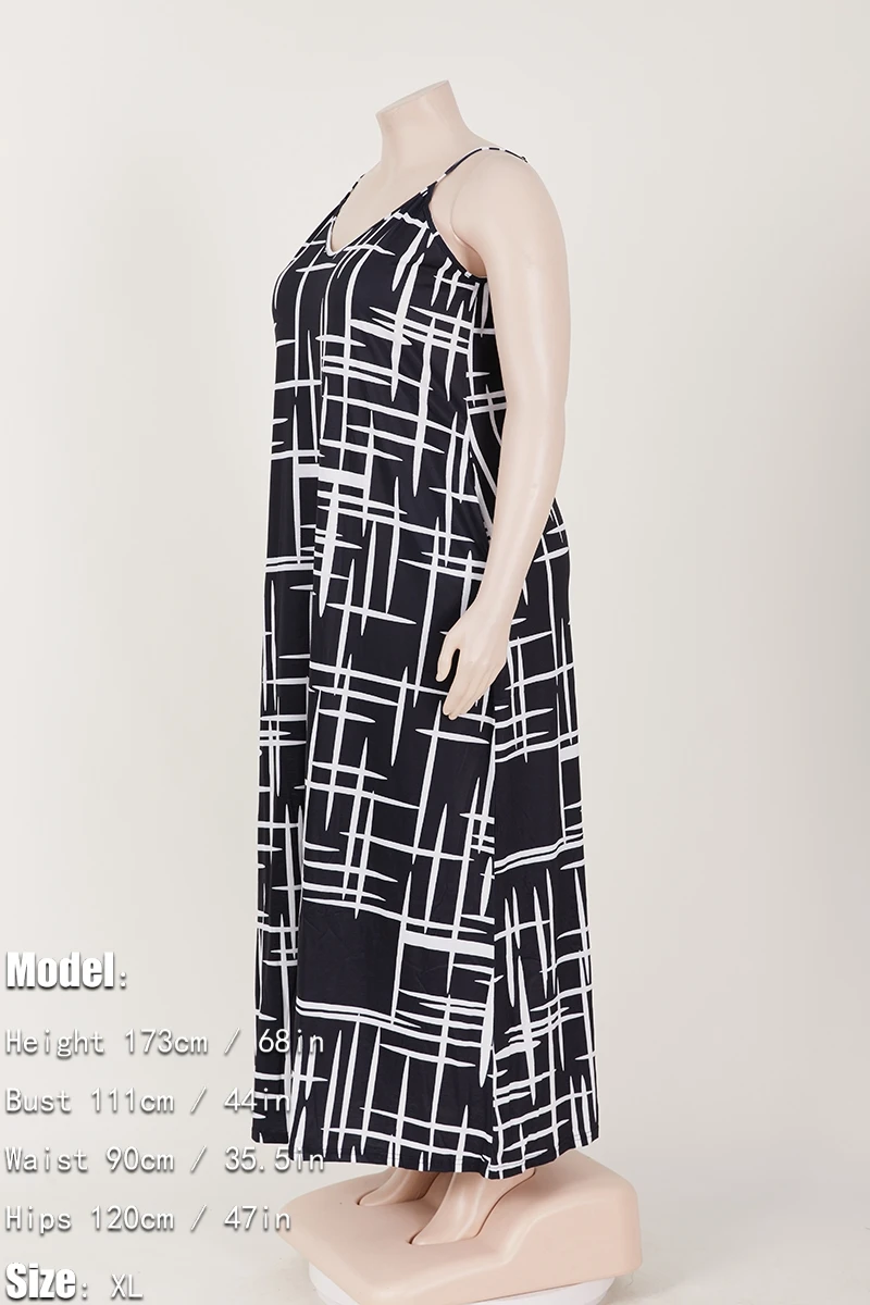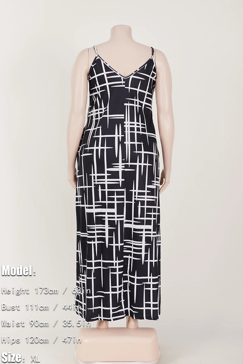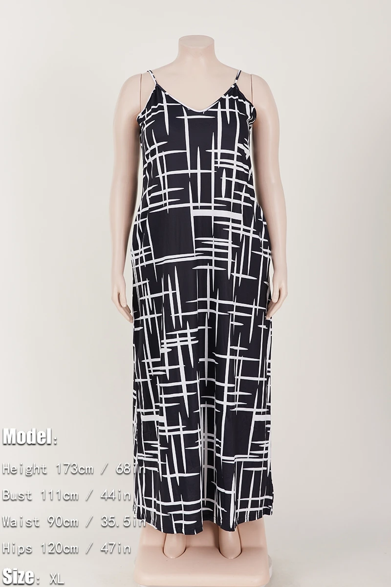 Plus size new stylish batch printing v-neck sling loose summer maxi dress