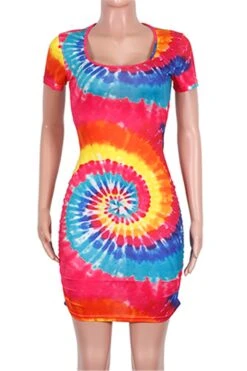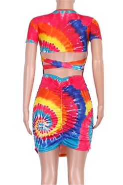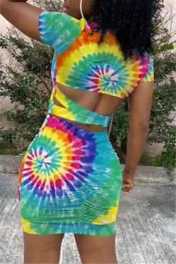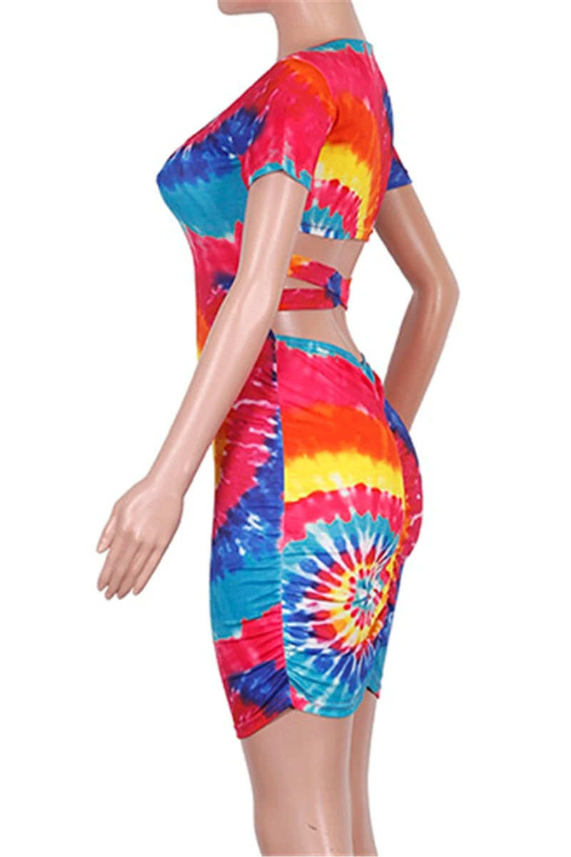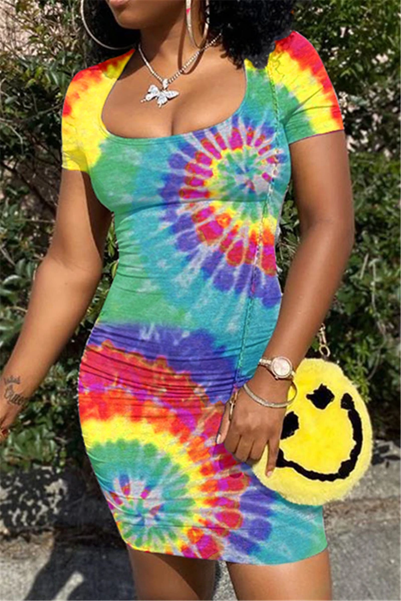 Plus size new stylish multicolor batch printing hollow out summer stretch dress