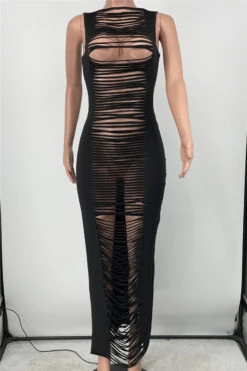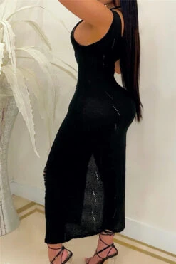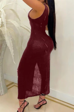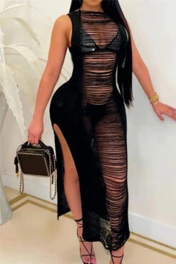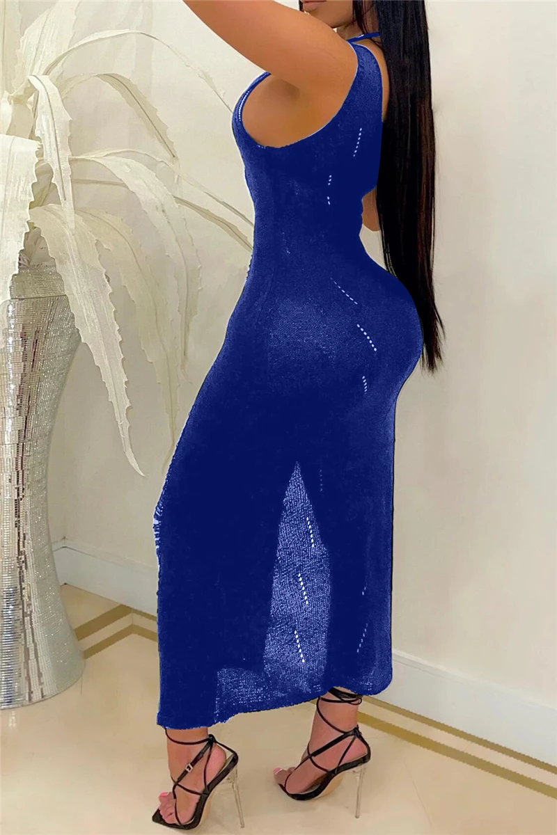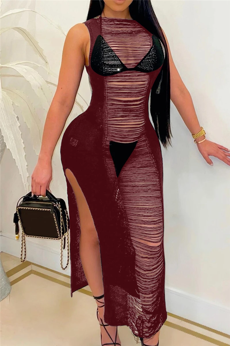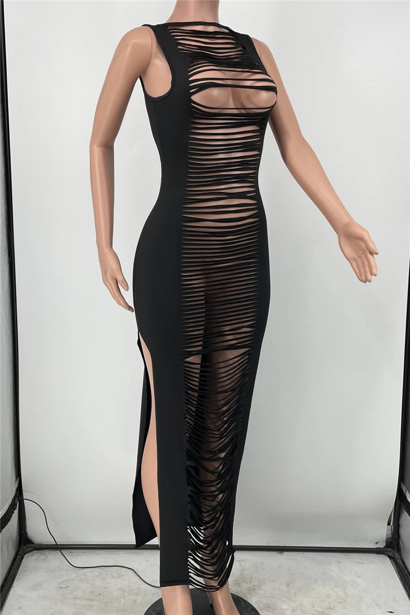 Plus size pure color 3 colors hollow out sleeveless without lining sexy maxi dress