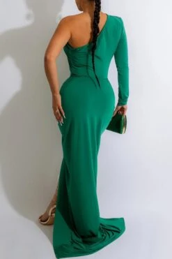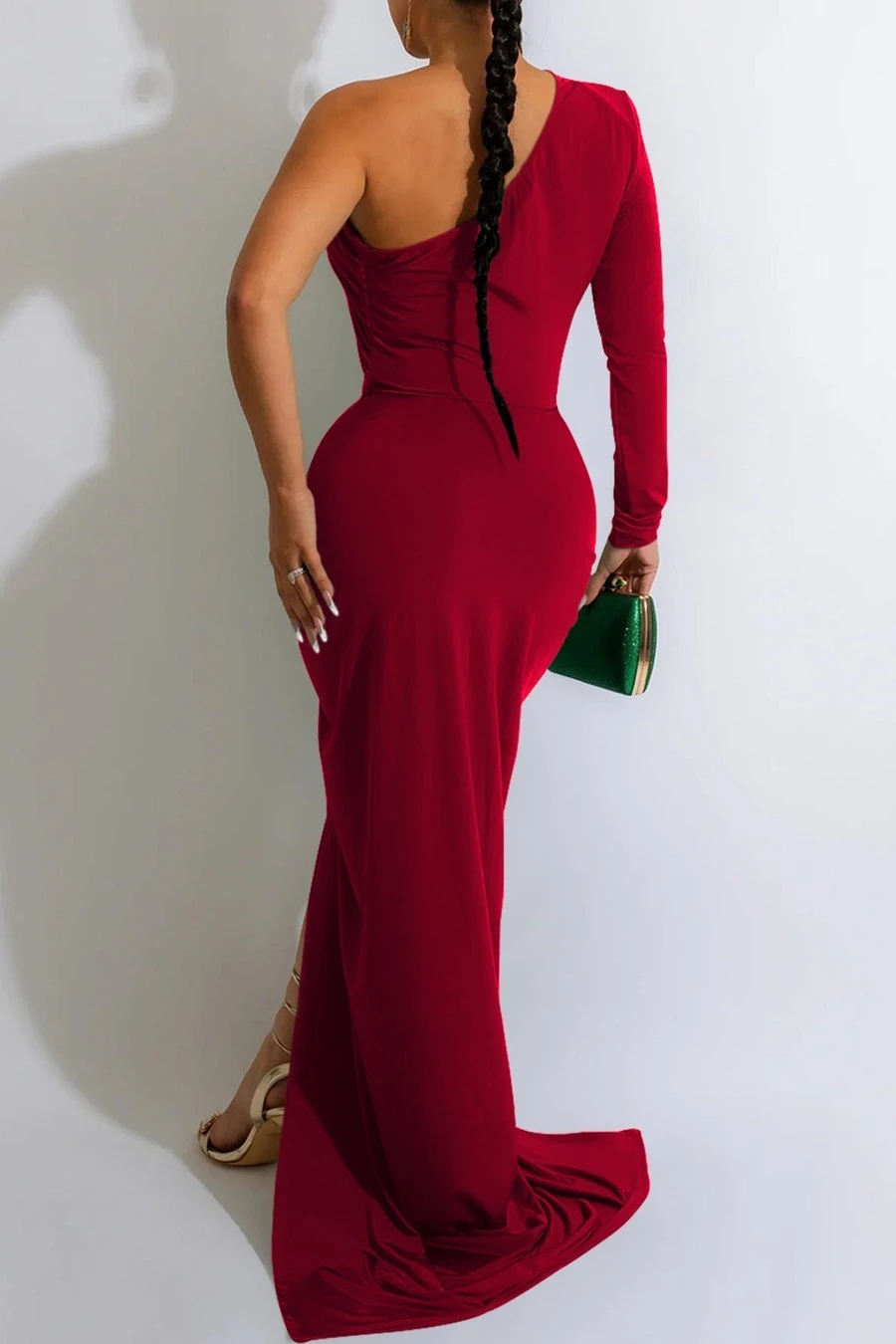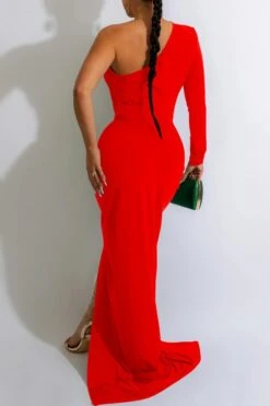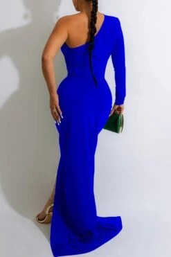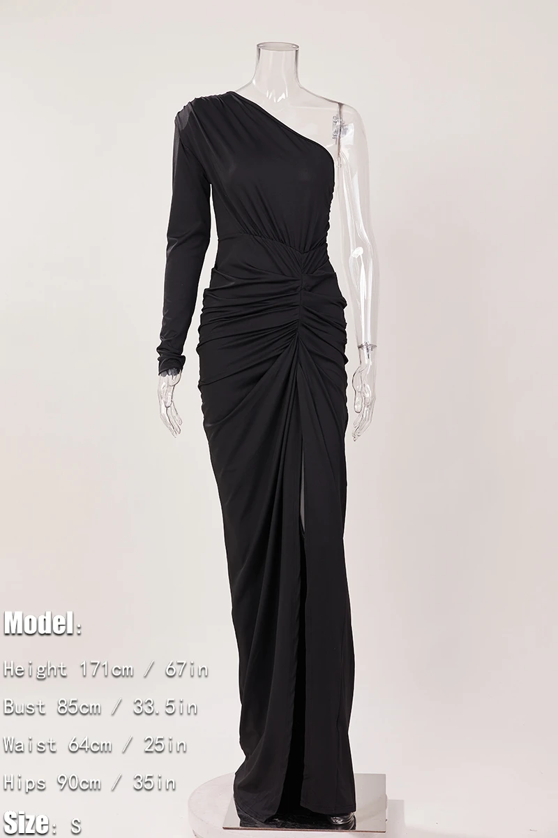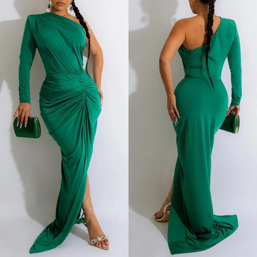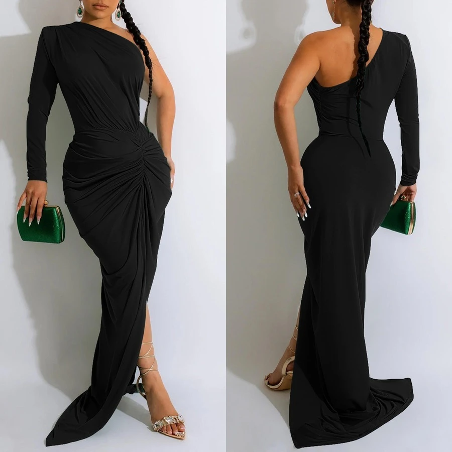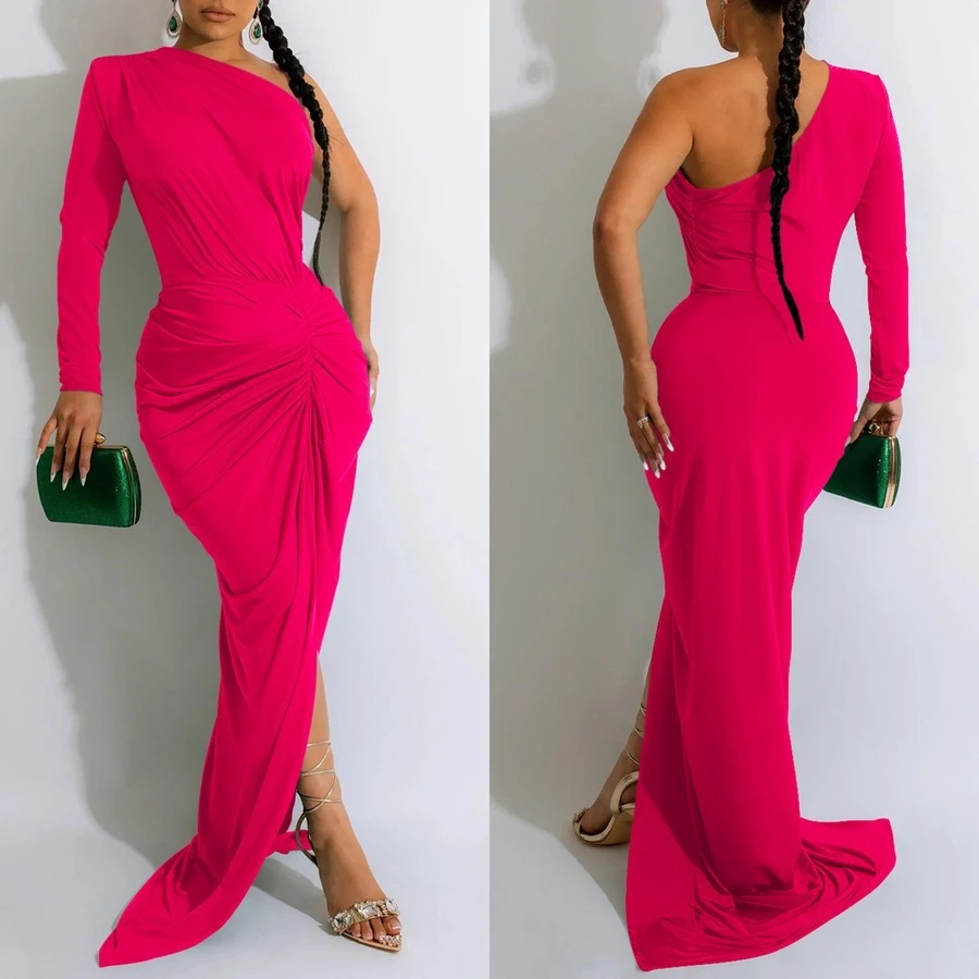 Plus size slight stretch 9 colors one shoulder shirring slit sexy maxi dress