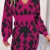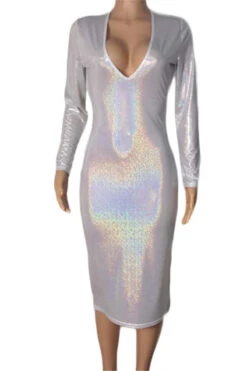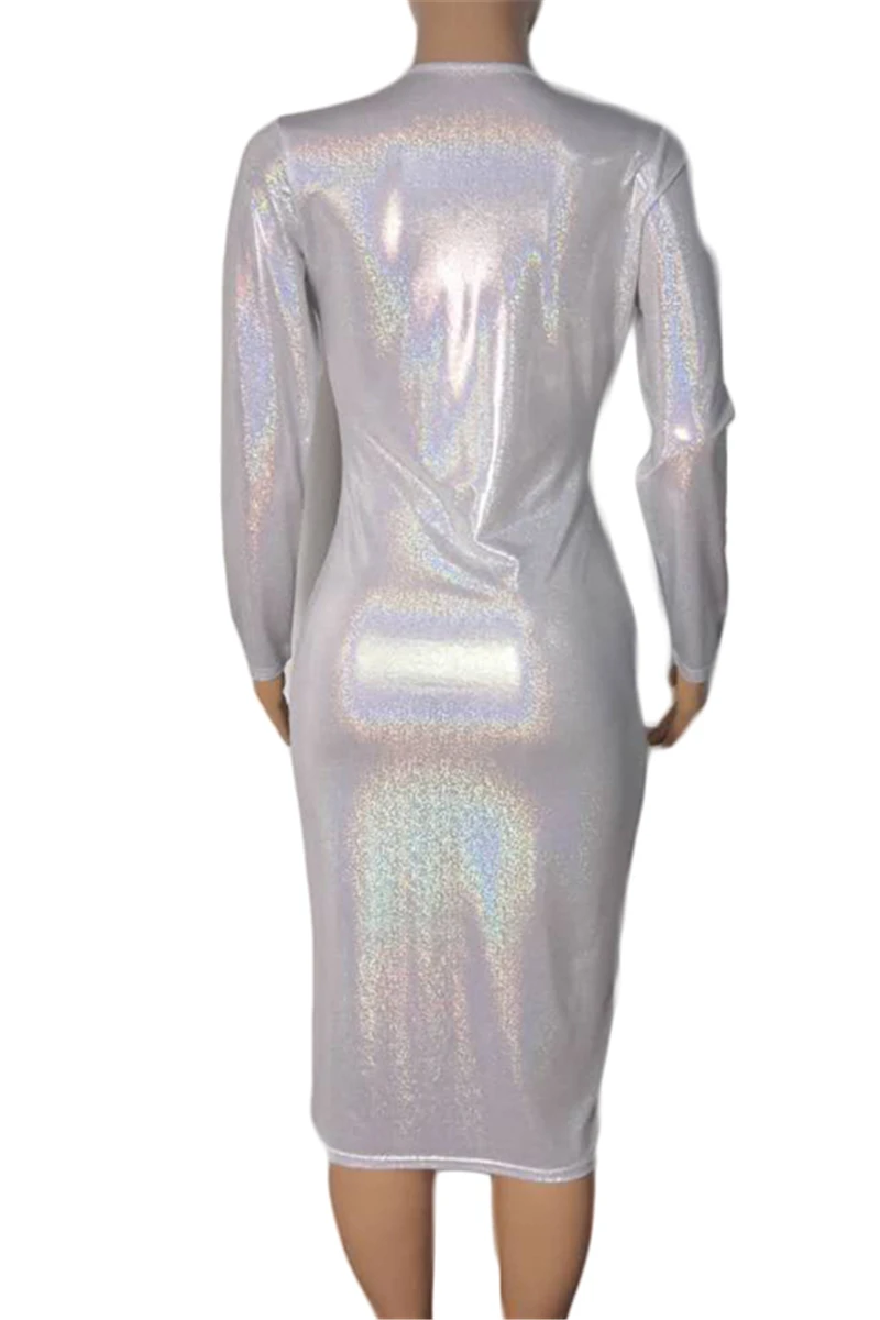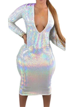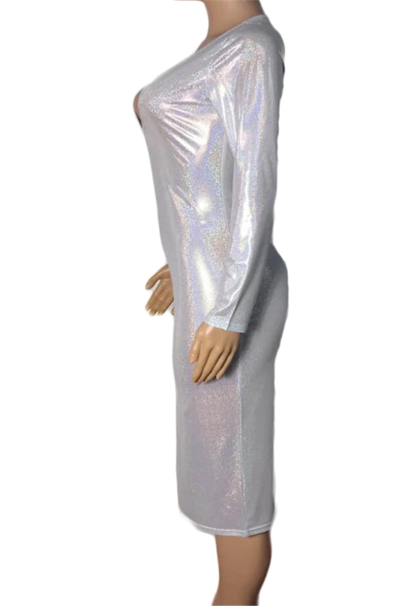 Plus size solid color deep v-neck autumn sexy hot stamping stretch dress
