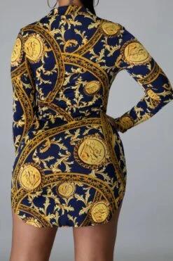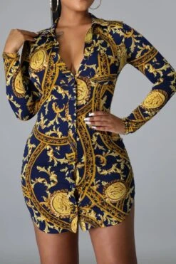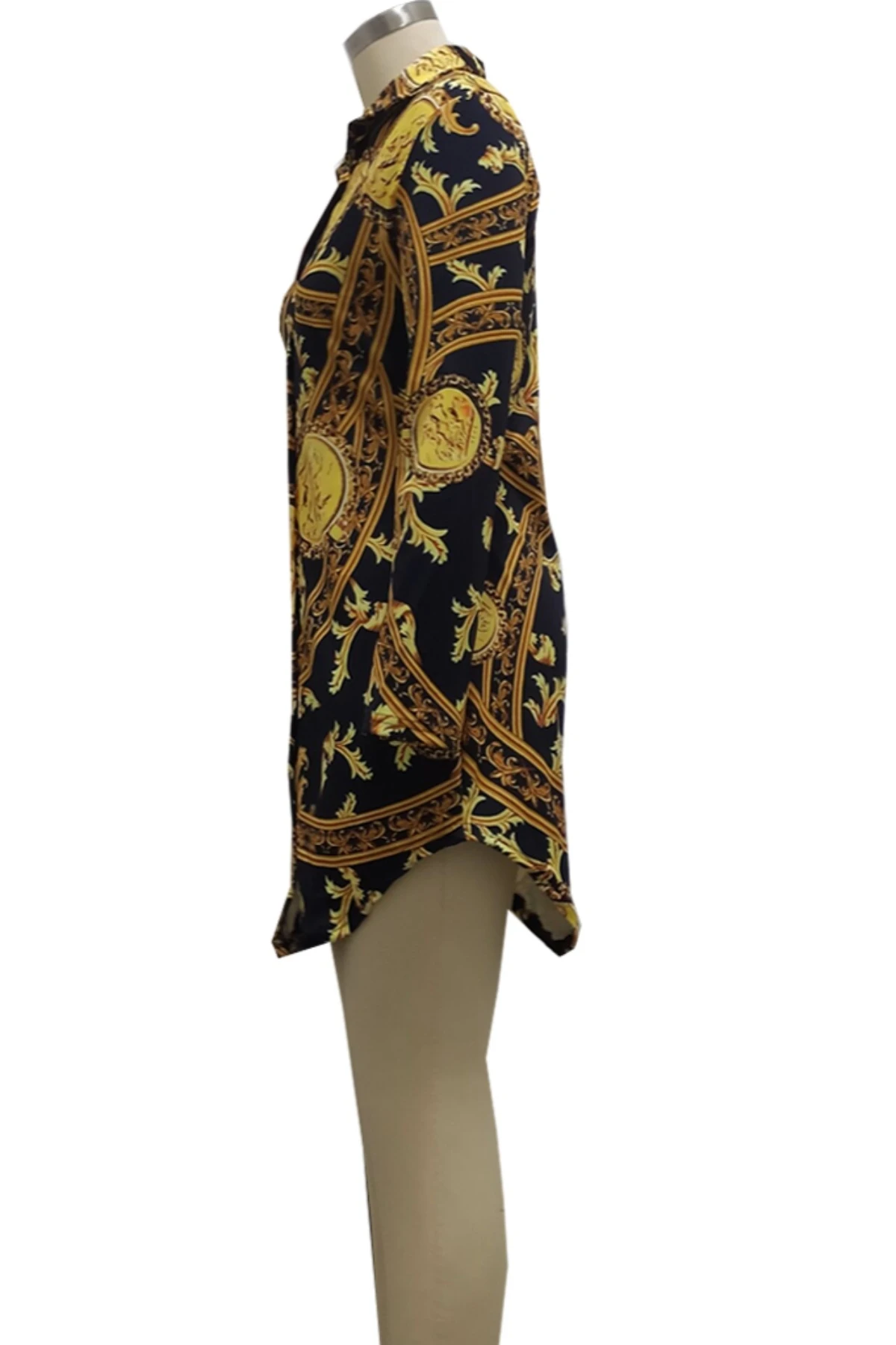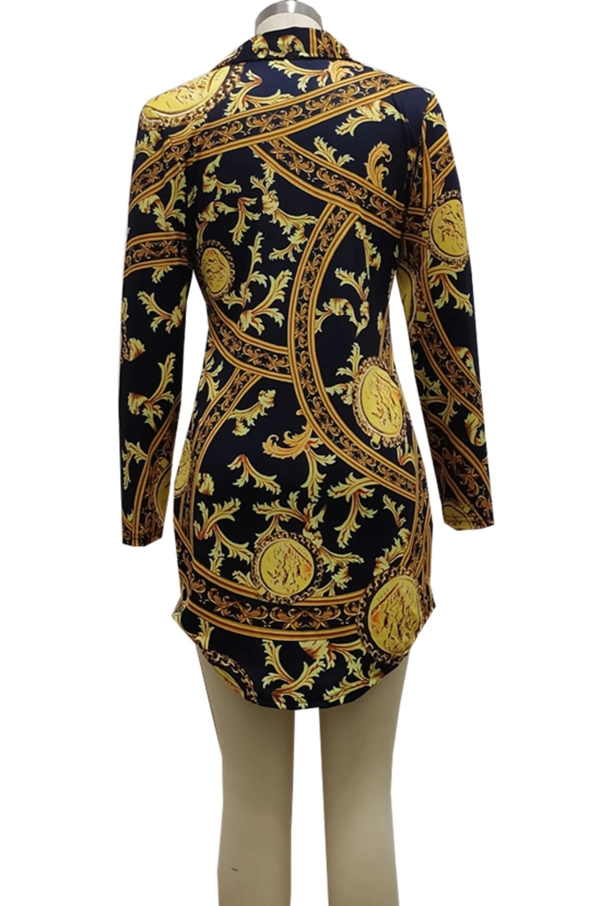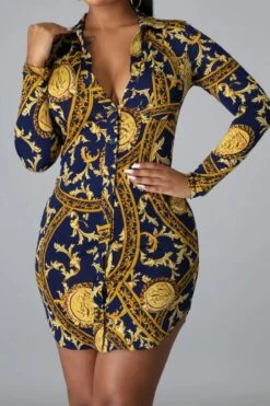 Plus size spring autumn single breasted pattern batch printing new micro elastic mini dress