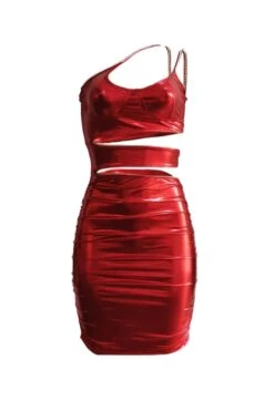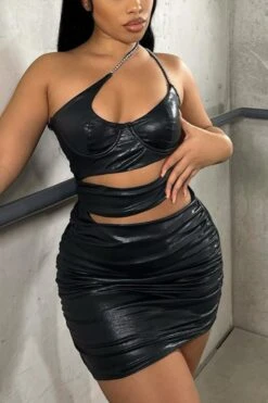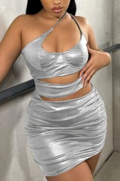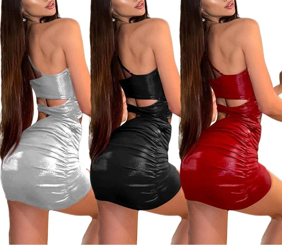 Plus size summer rhinestone one shoulder hollow out inelastic bodycon mini dress