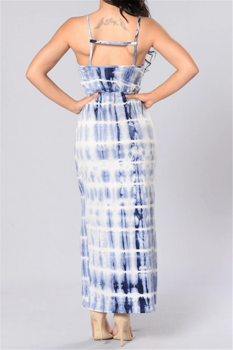 Plus size summer sling tie-dye batch printing loose stretch irregular dress