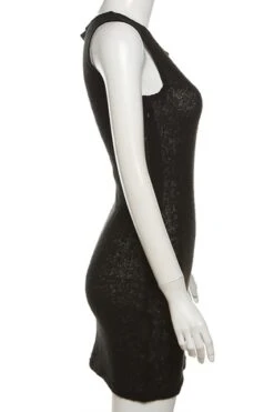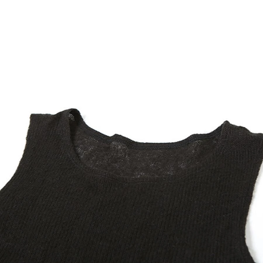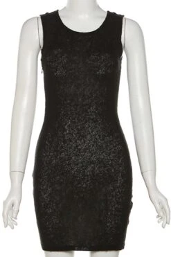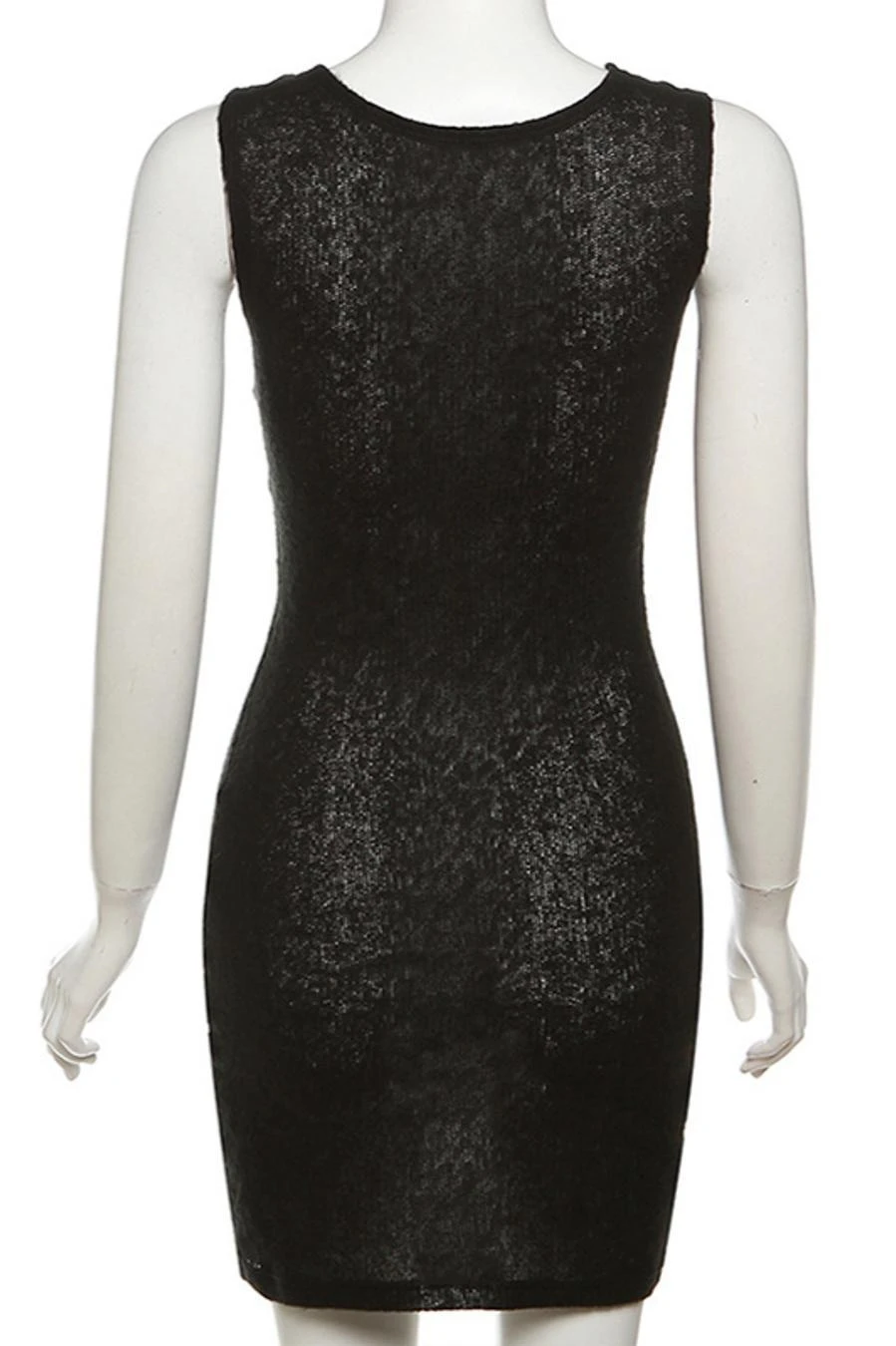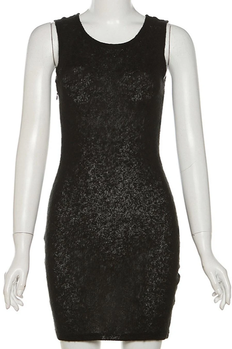 Pure color sleeveless stretch zip-up slightly see-through sexy knit mini dress