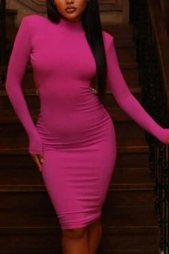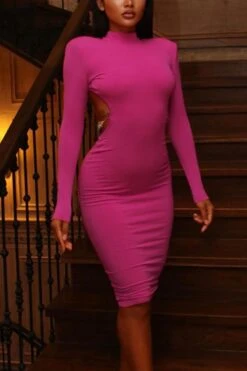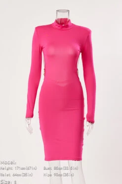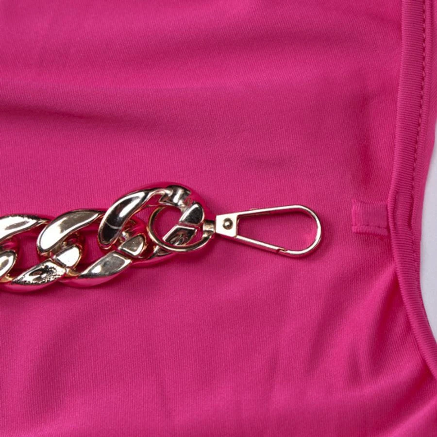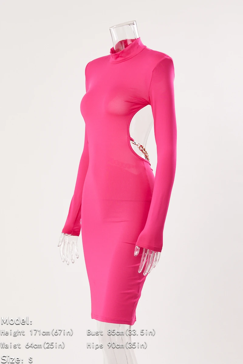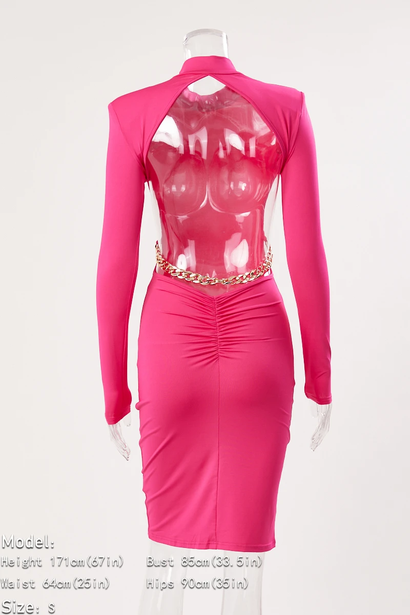 Pure color stretch sexy backless metallic chain slim shoulder padded midi dress