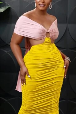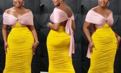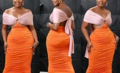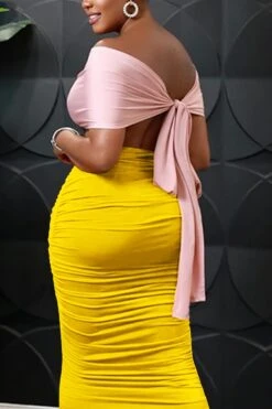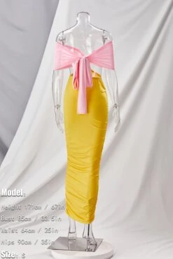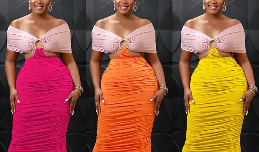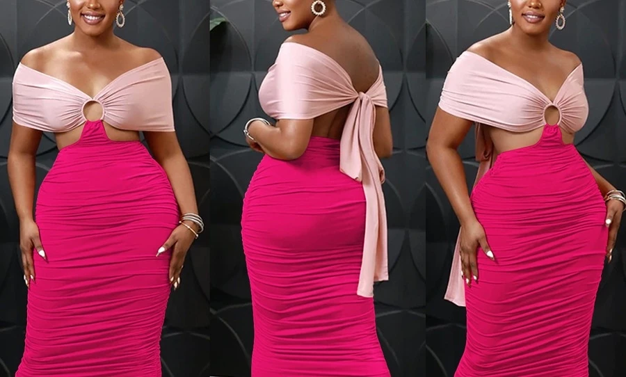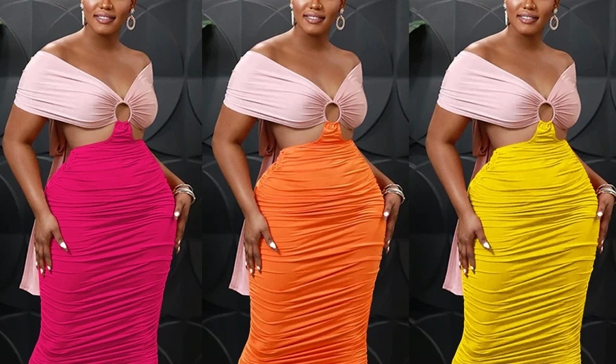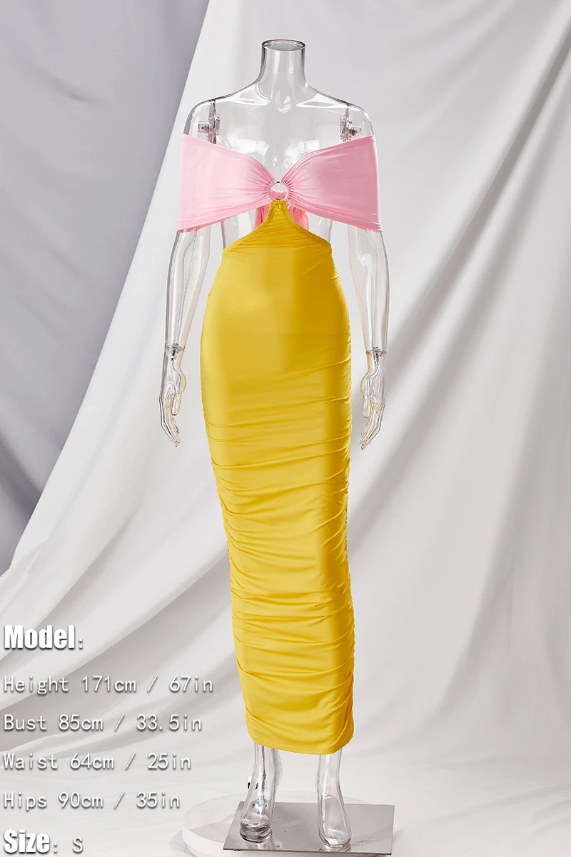 S-2XL plus size summer new 3 colors contrast color stretch tube design hollow smocked lace up backless stylish sexy maxi dress