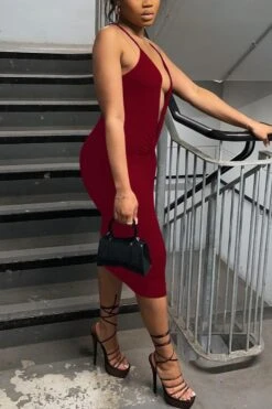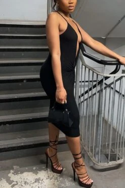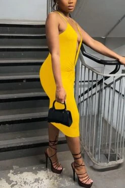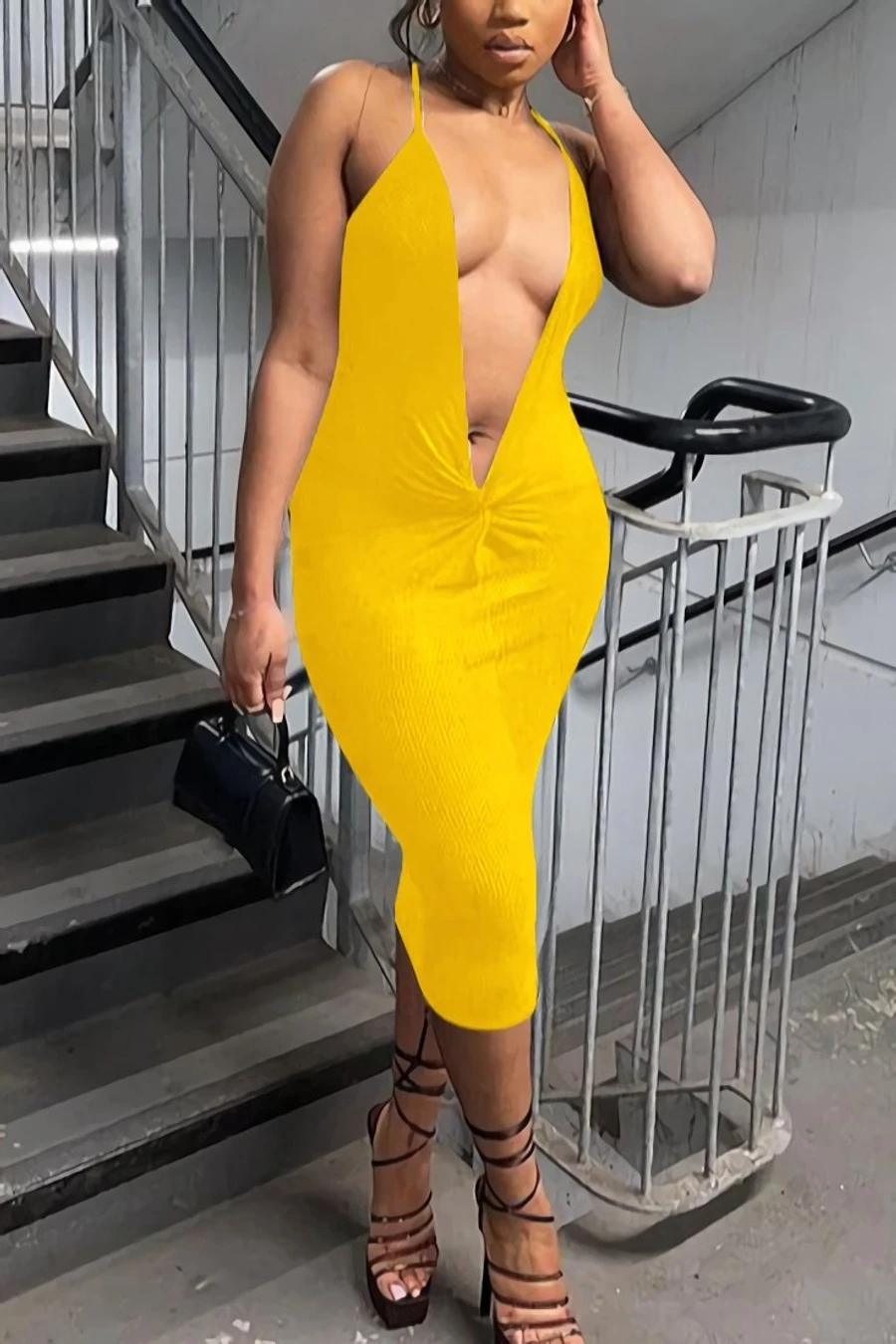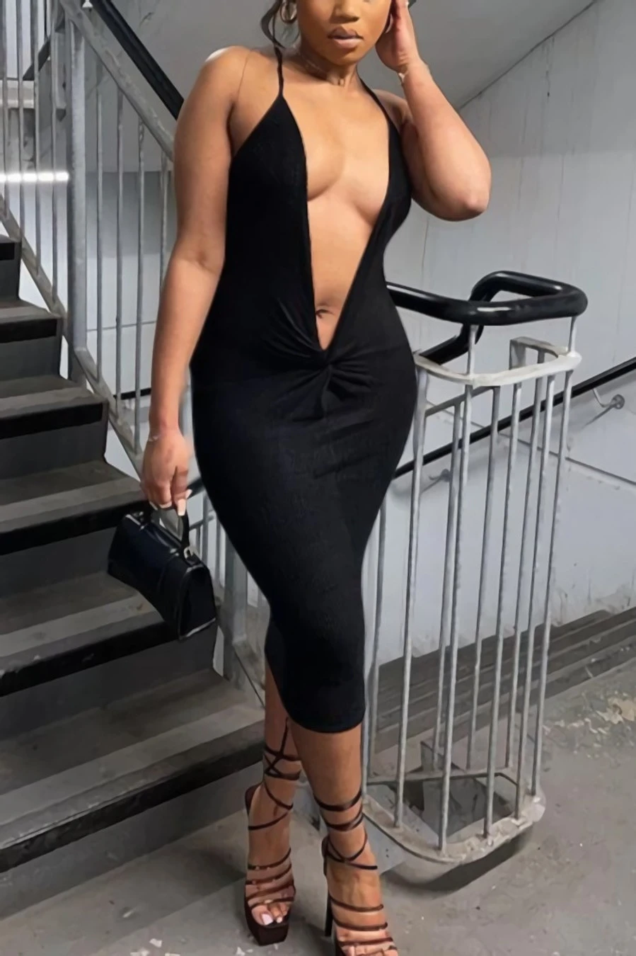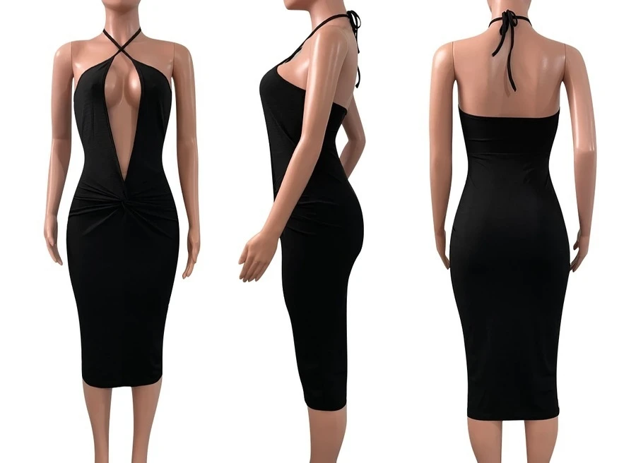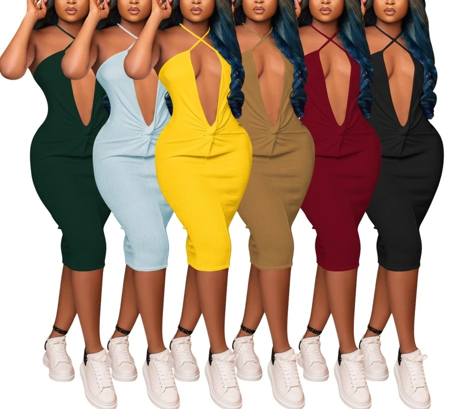 S-2XL plus size summer new stylish 6 colors solid color stretch halter-neck lace-up kink backless slim sexy midi dress