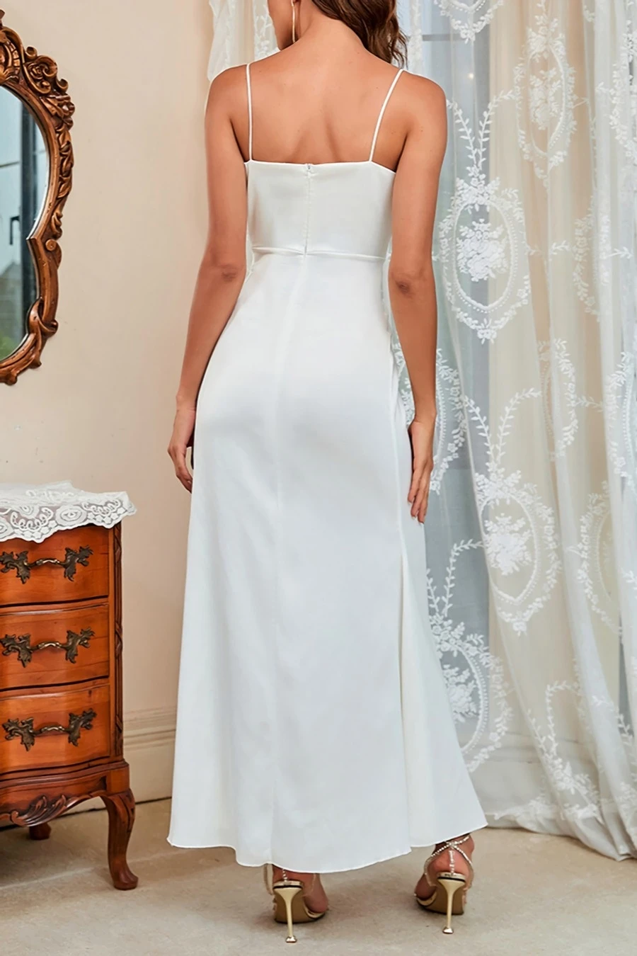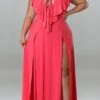 S-2XL plus size summer new stylish micro elastic solid color sling backless zip-up split high quality elegant maxi dress