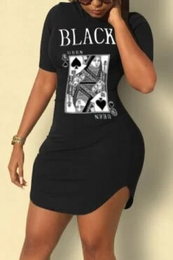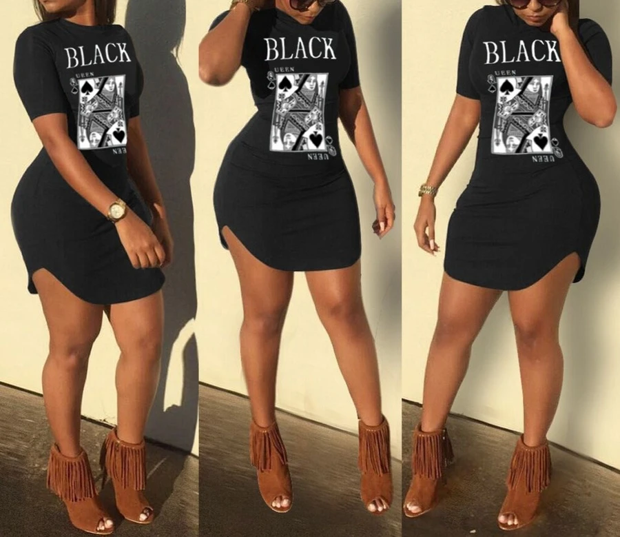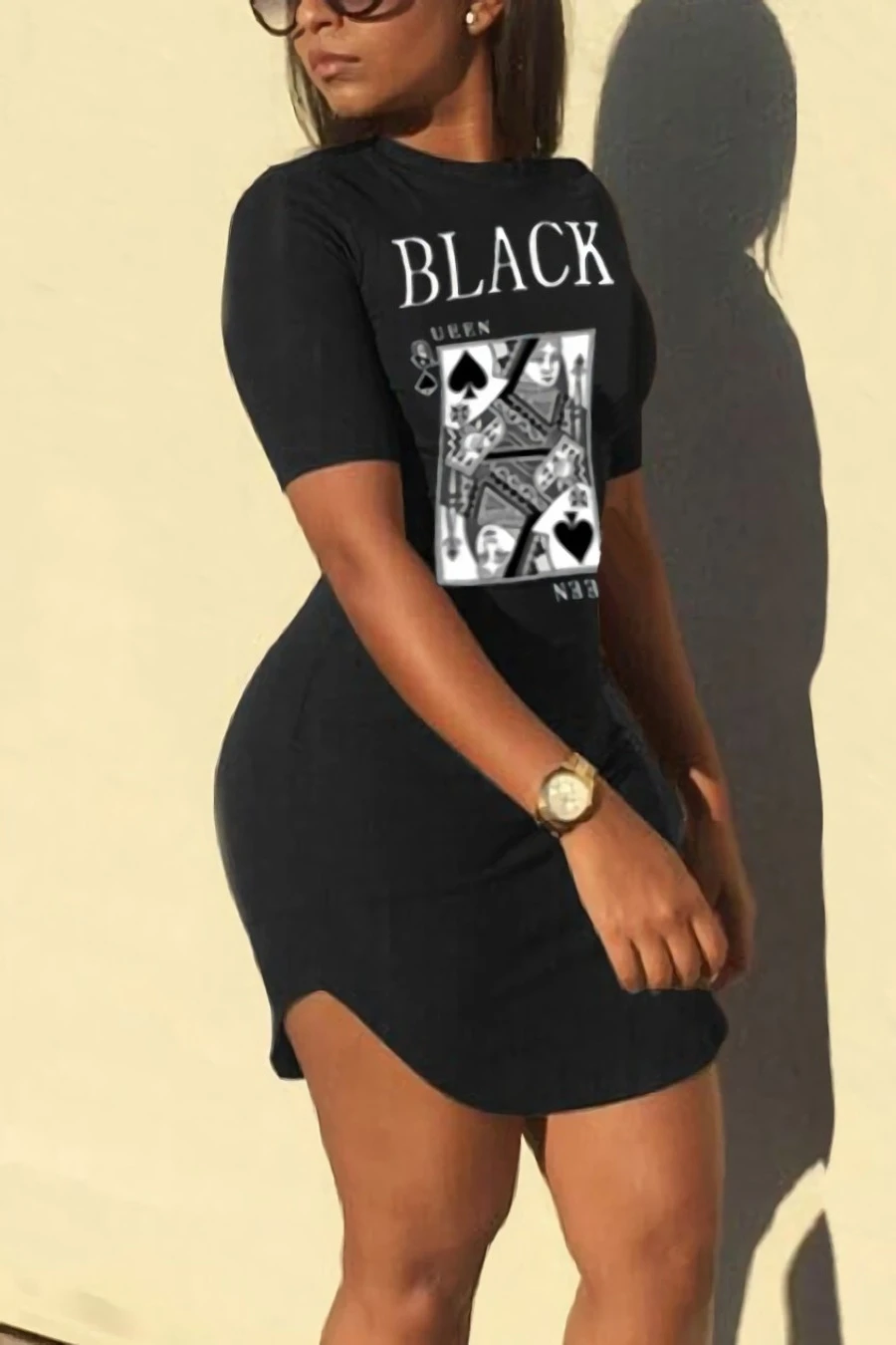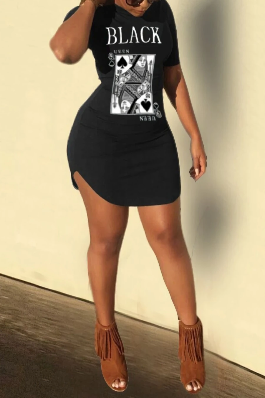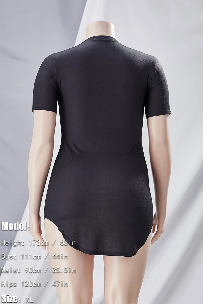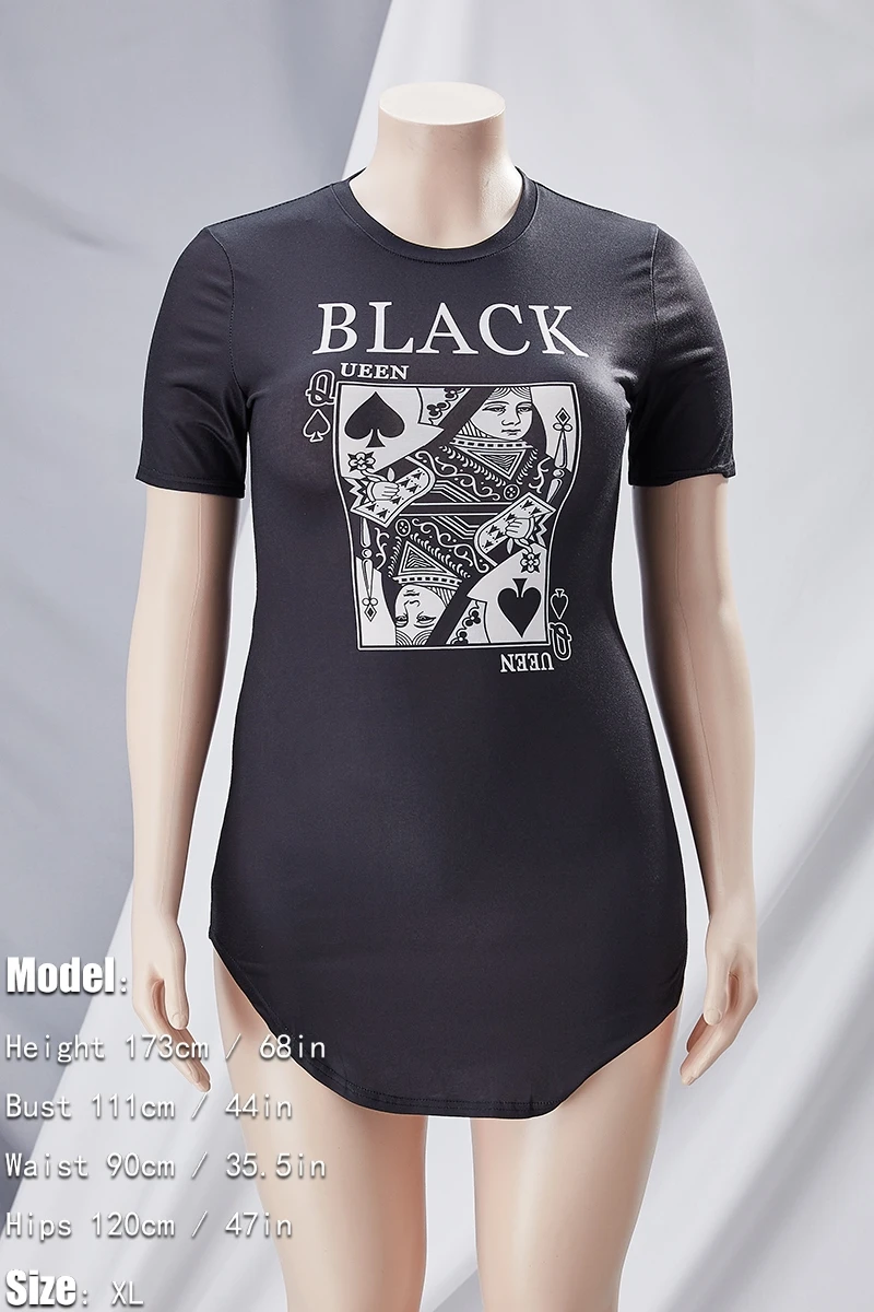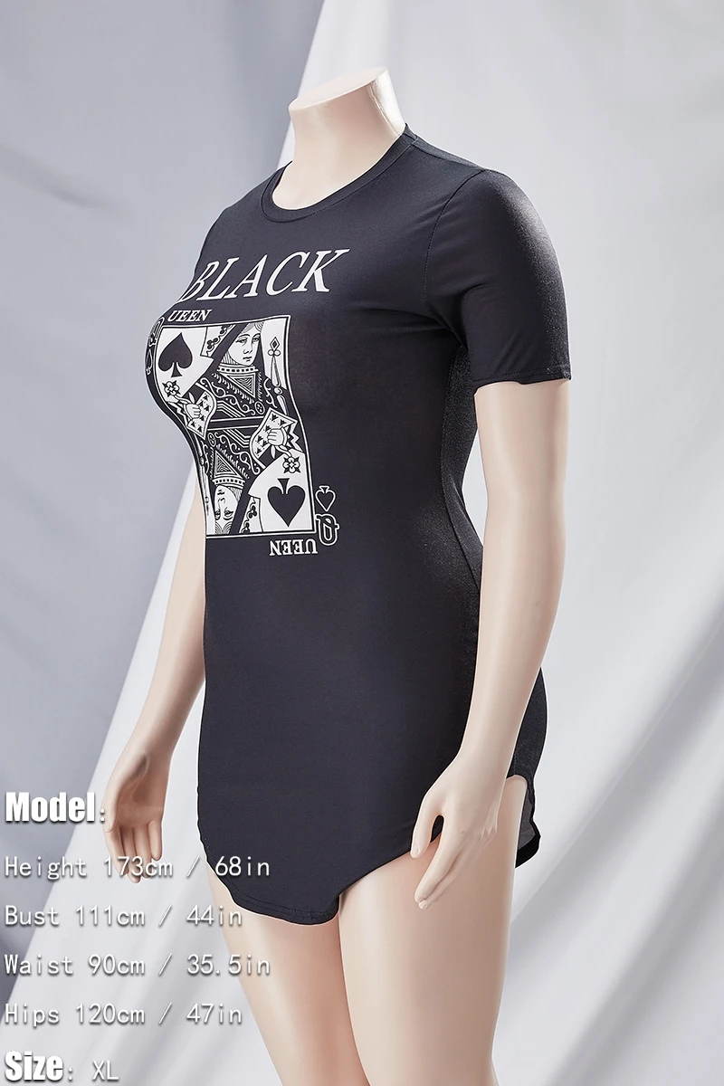 S-2XL plus size summer new stylish stretch letter fixed printing short sleeves irregular slim sexy mini dress
