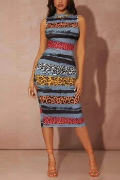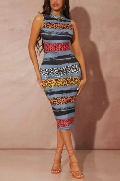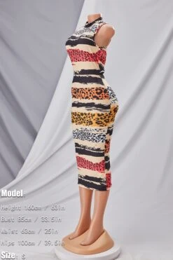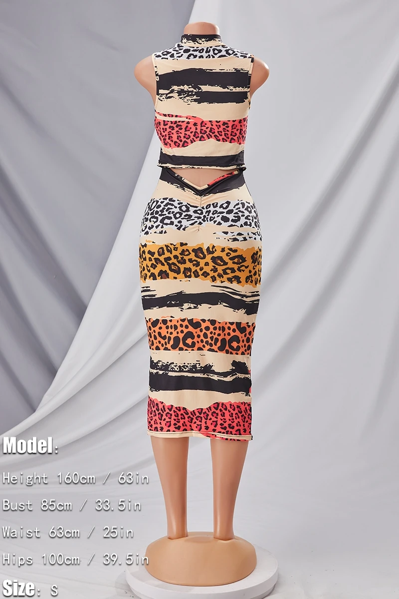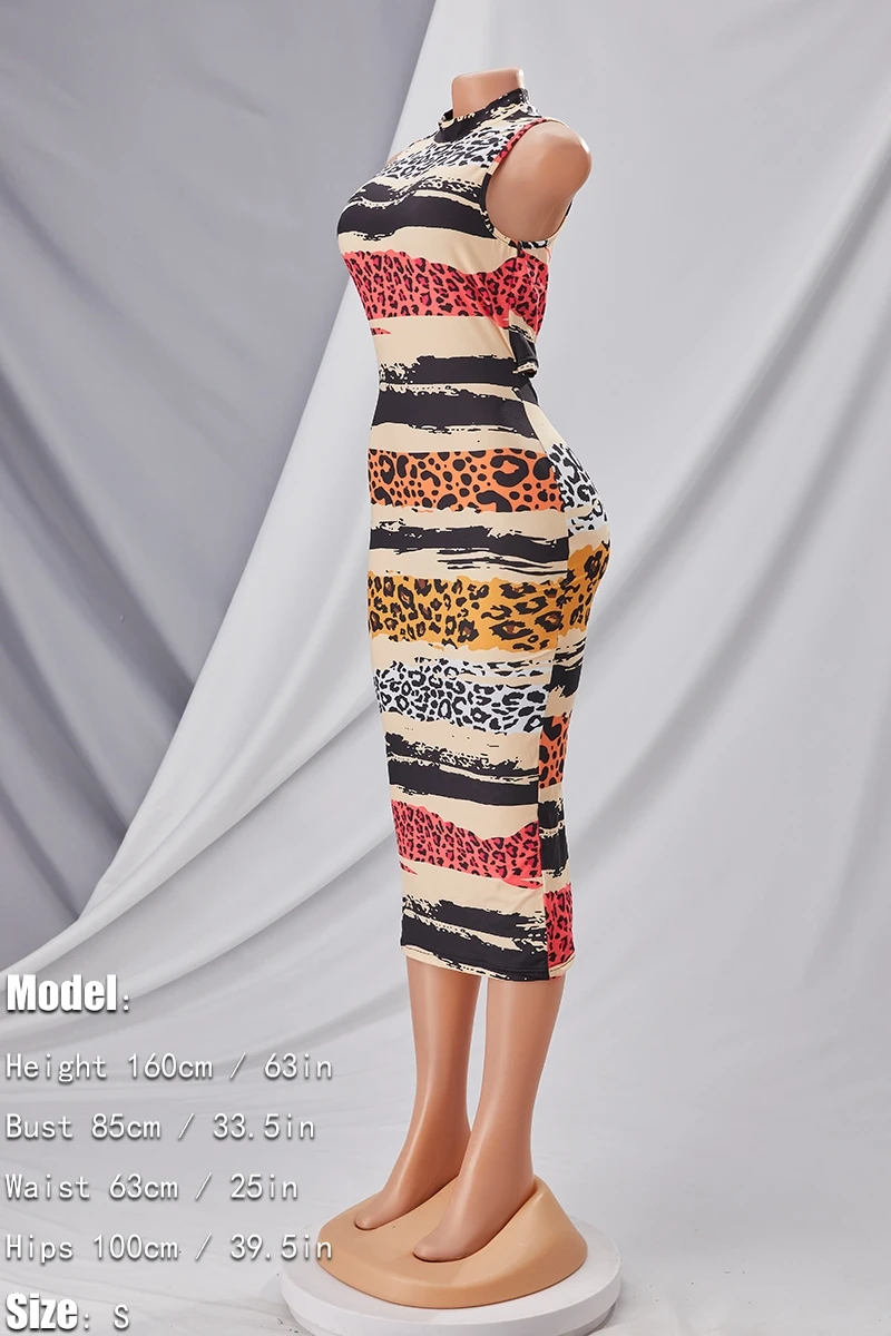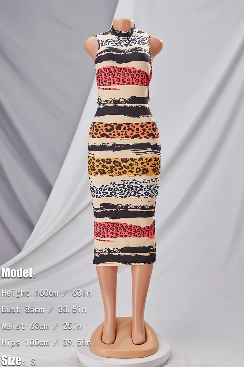 S-2XL summer new plus size 4 colors leopard batch printing stretch hollow sexy bodycon midi dress